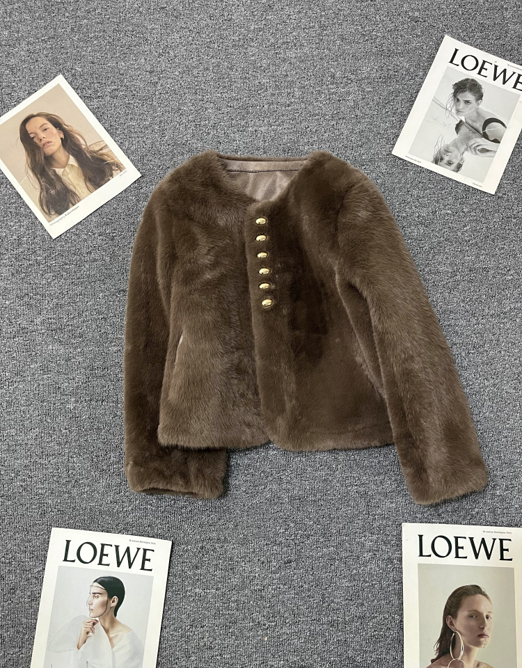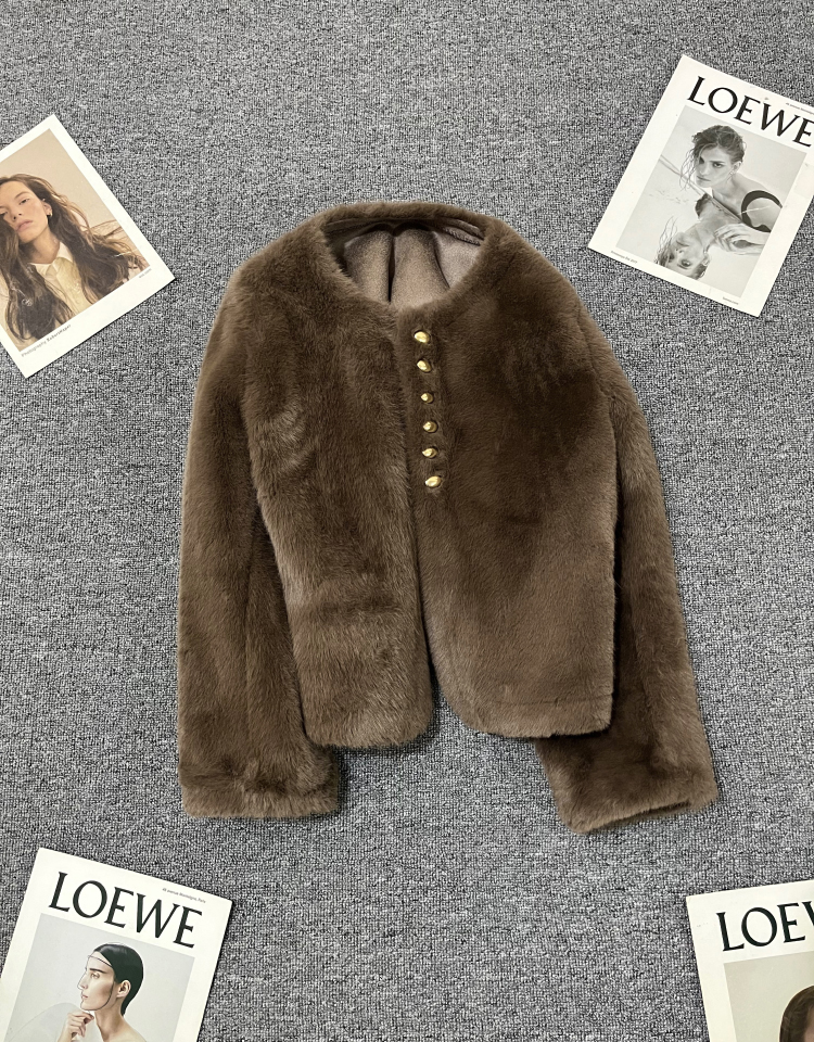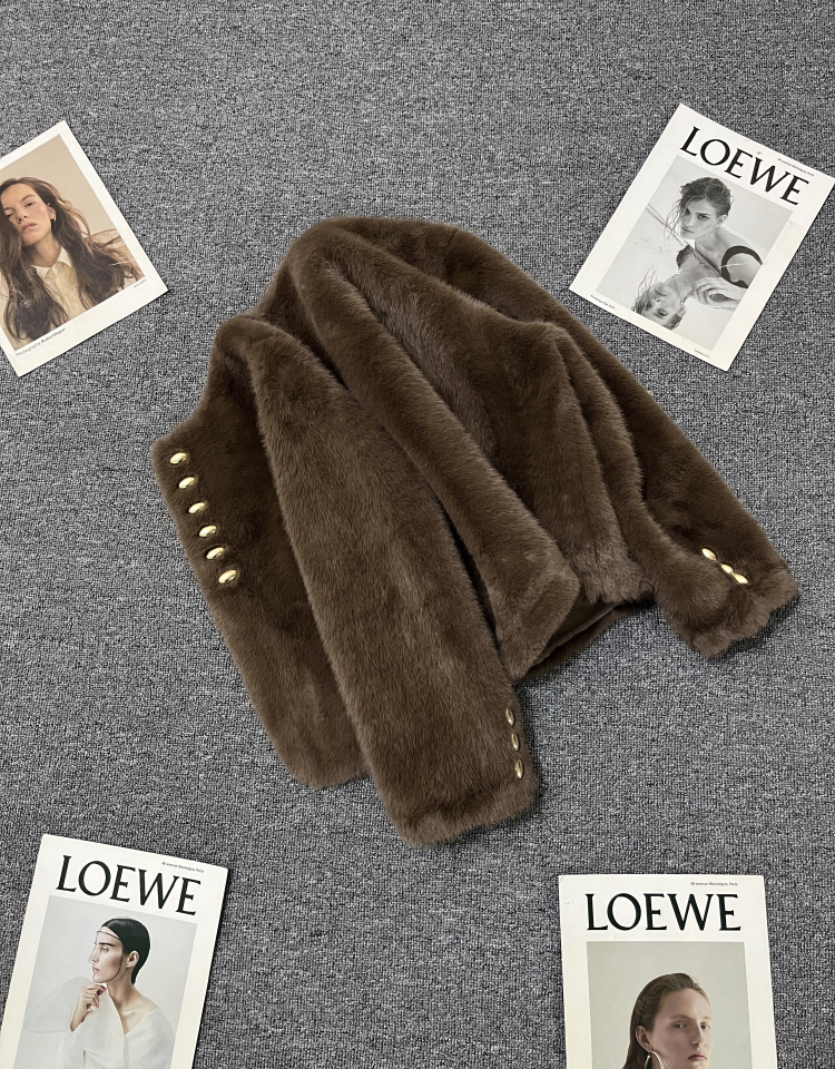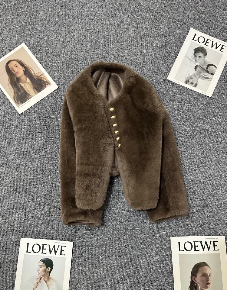 咖色貂絨短外套女2025秋冬新款小個子設計感氣質休閒高級好看上衣