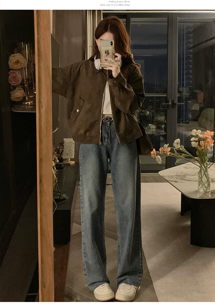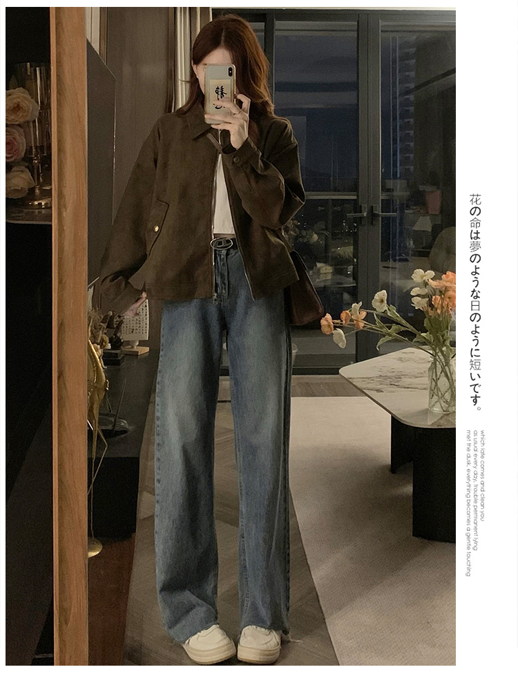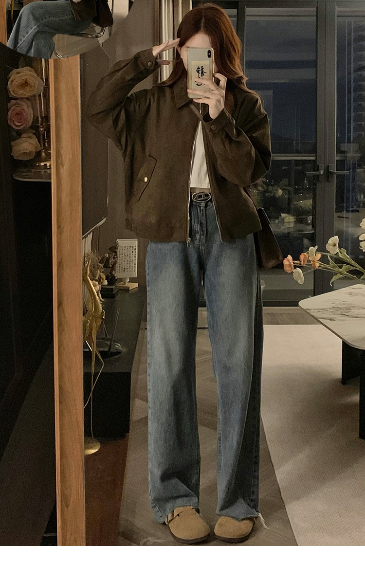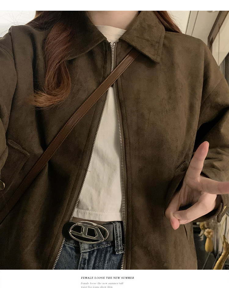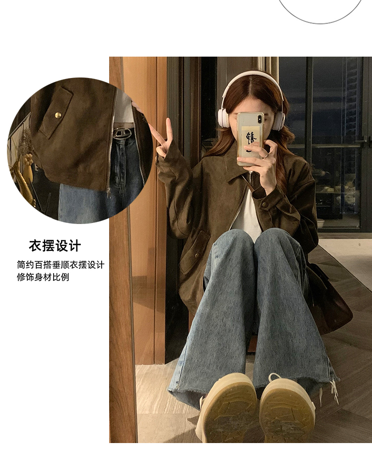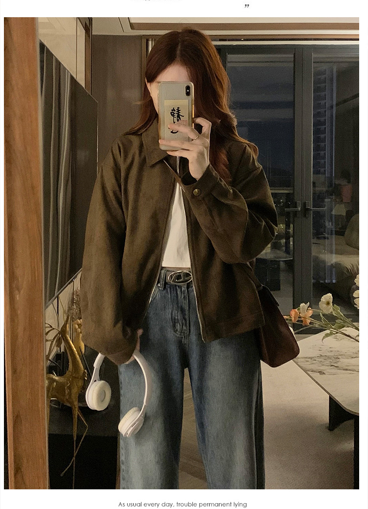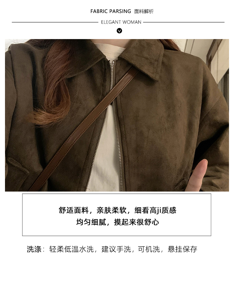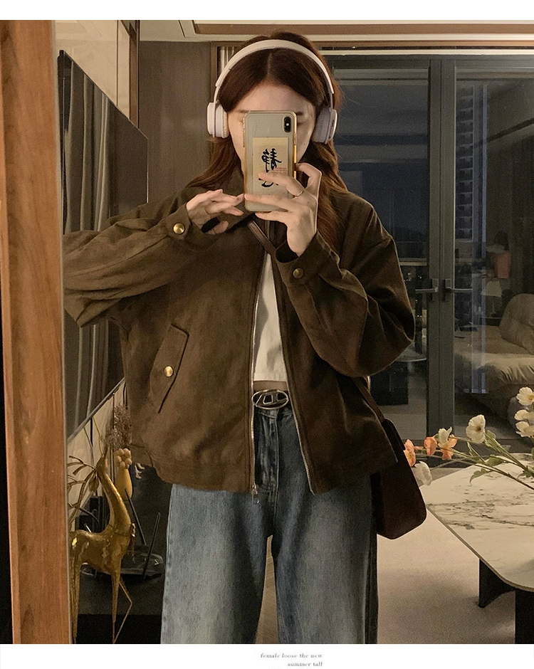 甜酷咖色麂皮絨外套女春秋新款復古小衆短款美拉德上衣夾克小個子