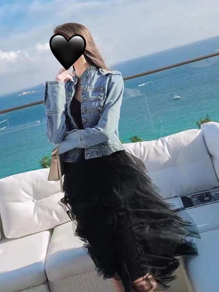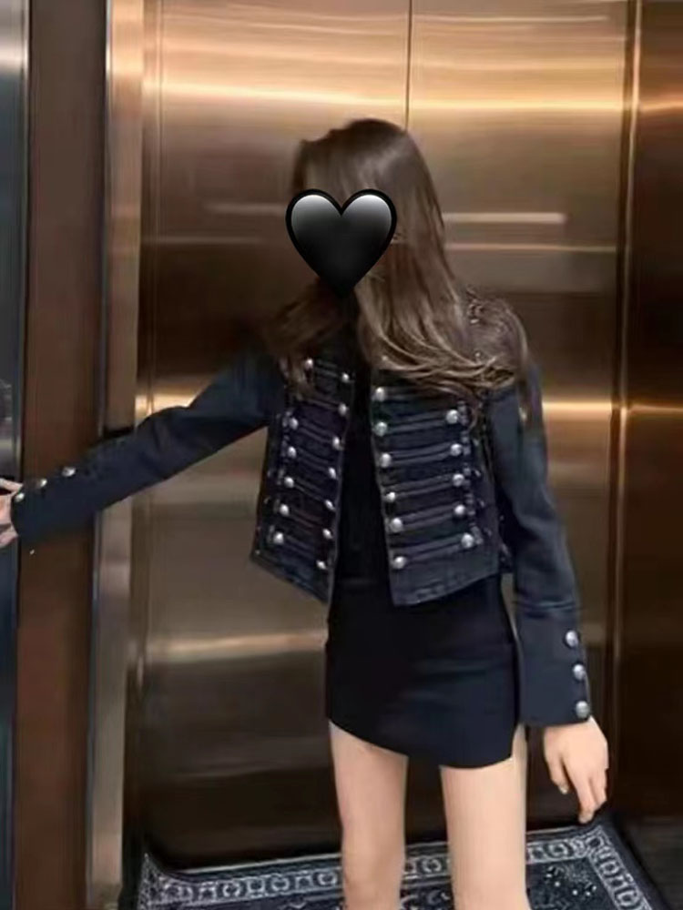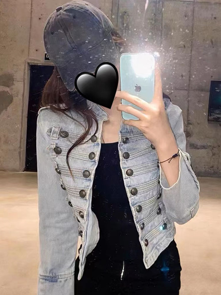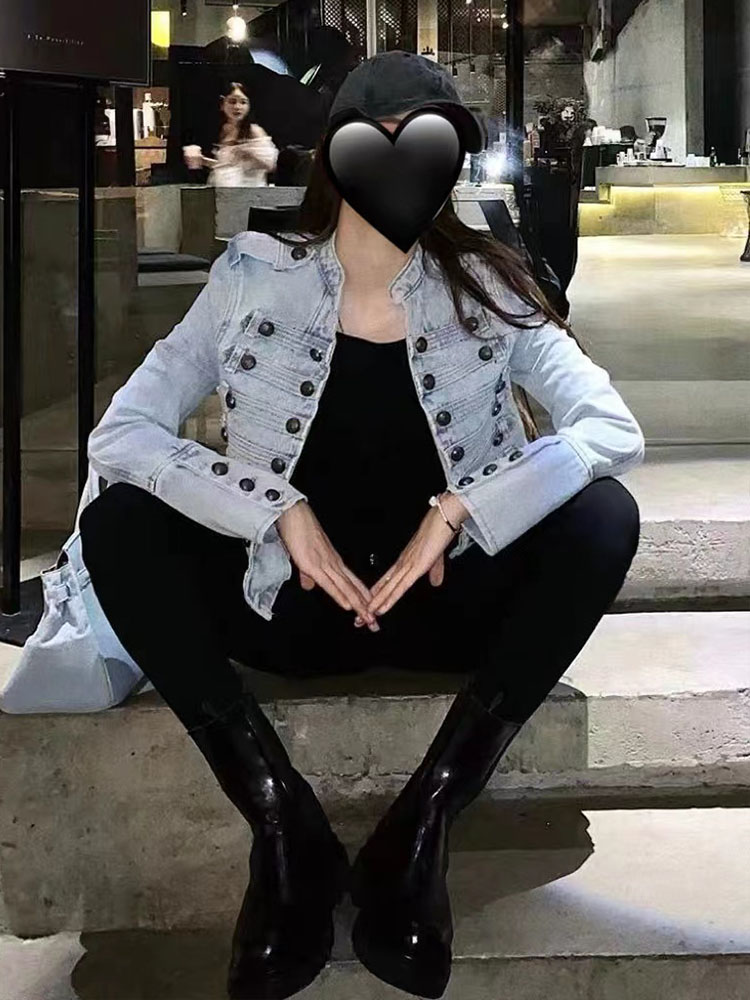 溫婉同款宮廷風黑灰色牛仔外套女2025春秋短款百搭夾克重工上衣潮