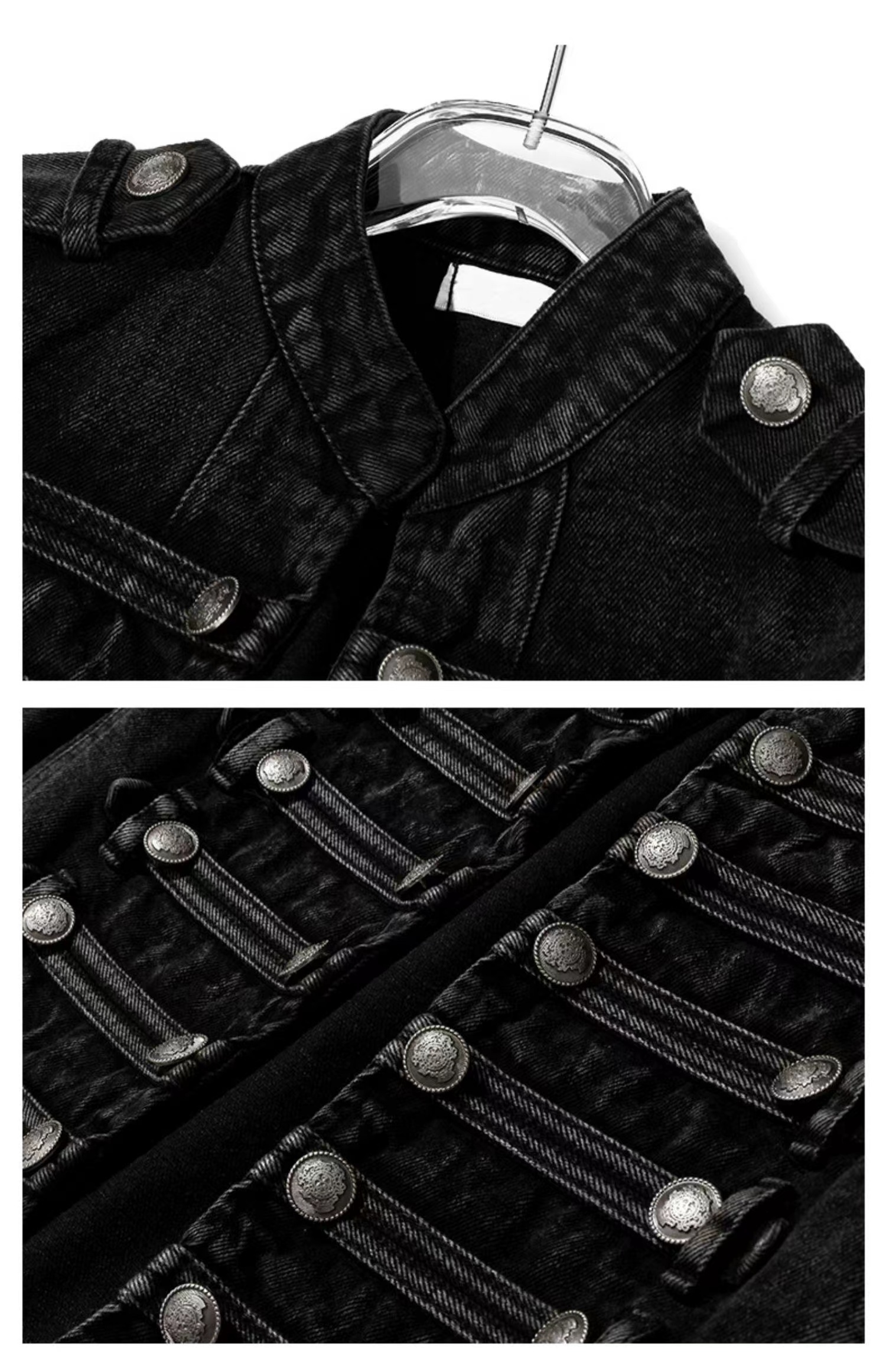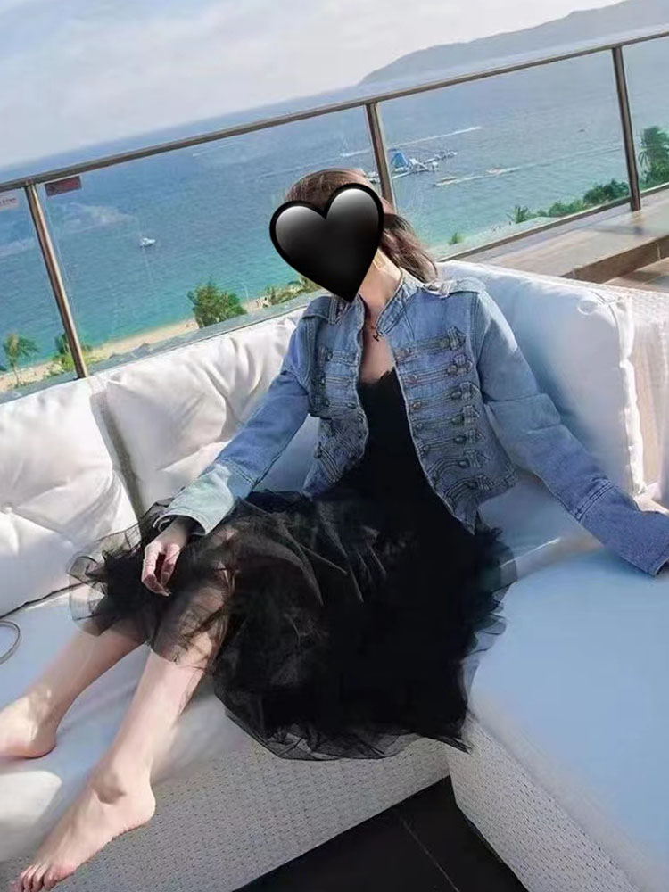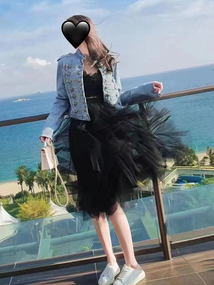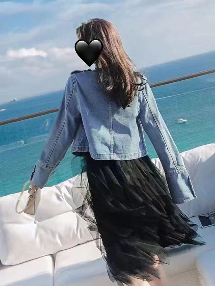 溫婉同款宮廷風黑灰色牛仔外套女2025春秋短款百搭夾克重工上衣潮