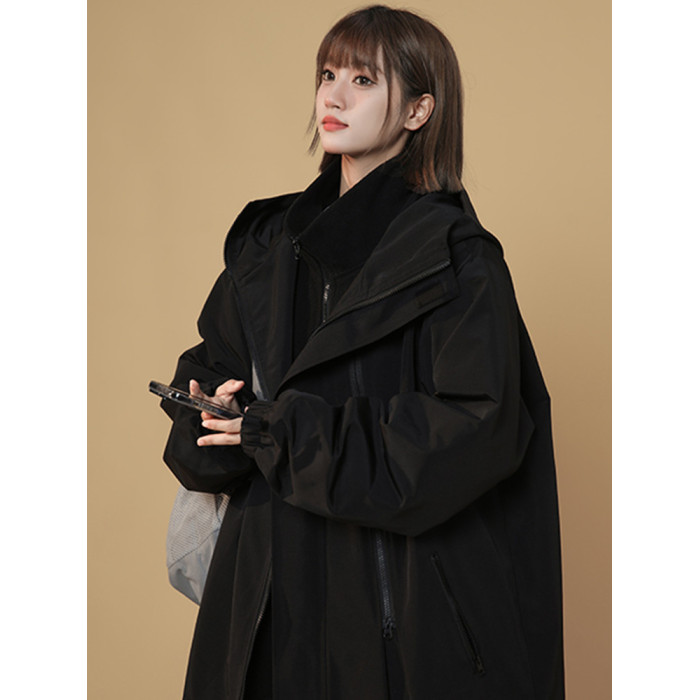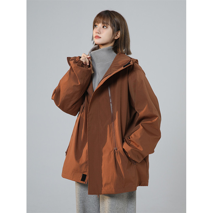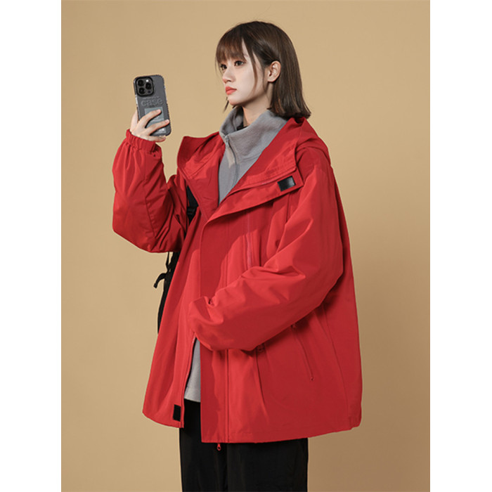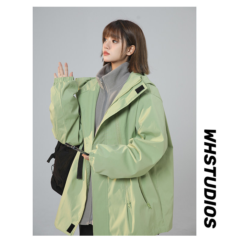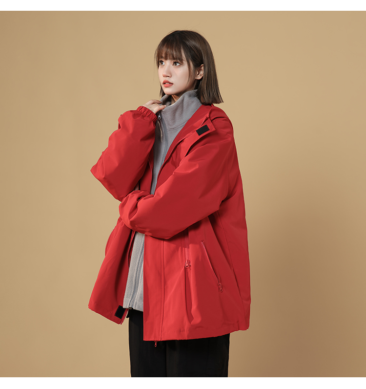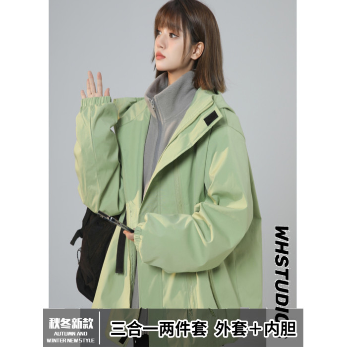 防風防水三合一沖鋒衣女秋冬胖mm大碼寬松加厚保暖二開工裝外套潮