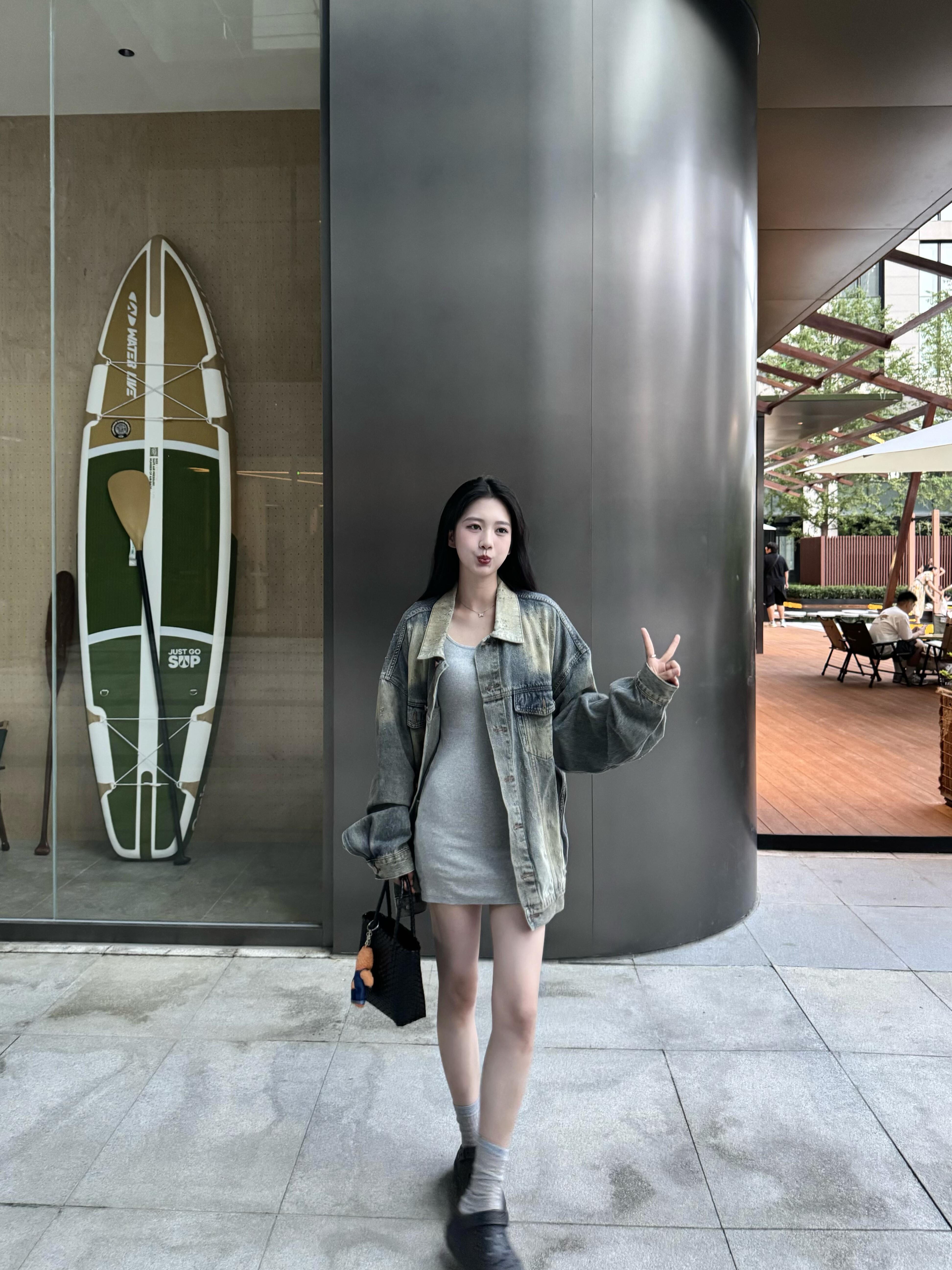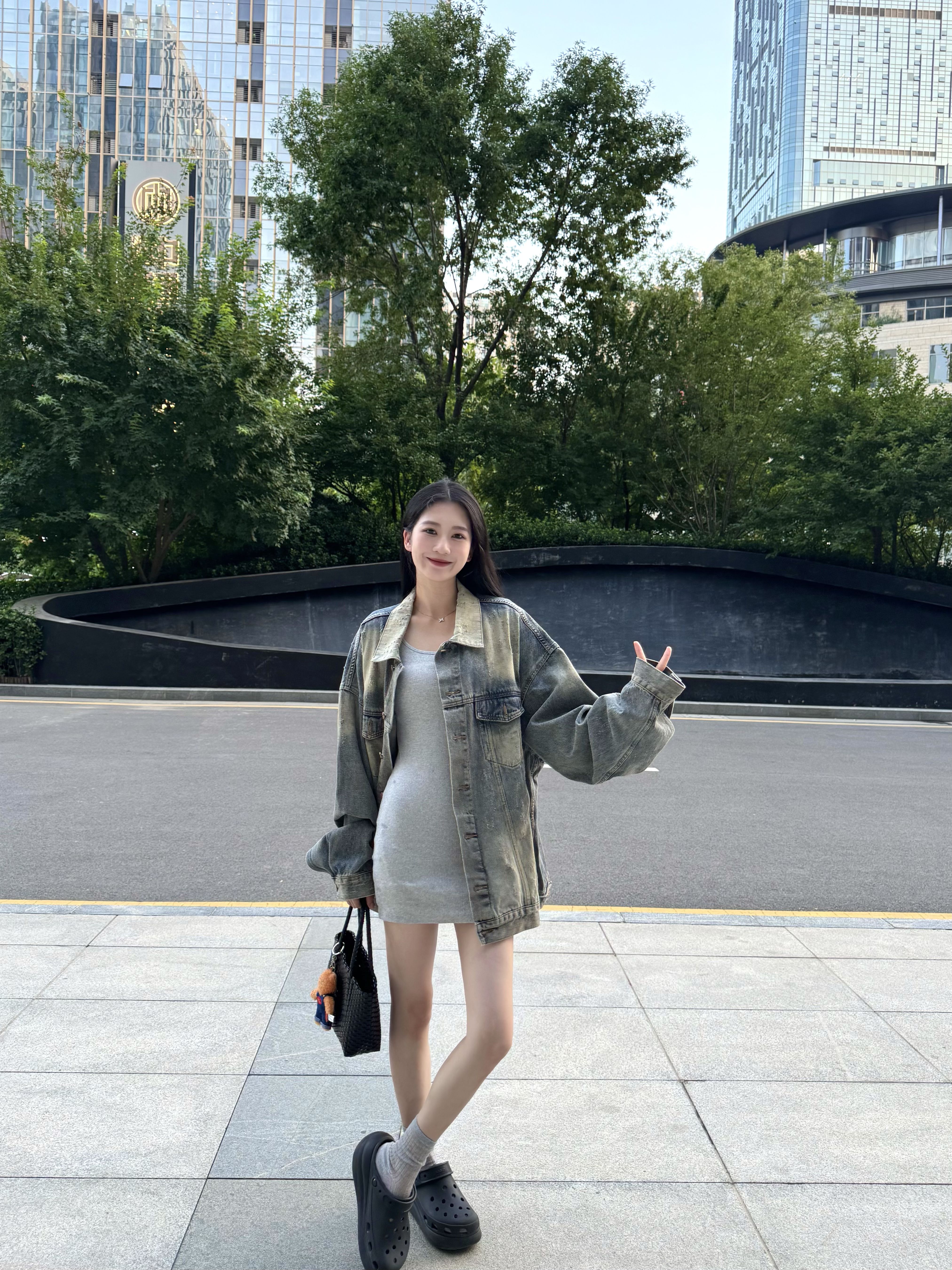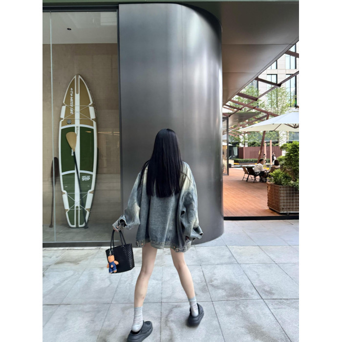 美式復古炸街牛仔外套女秋季新款寬松設計感水洗做舊工藝上衣質感