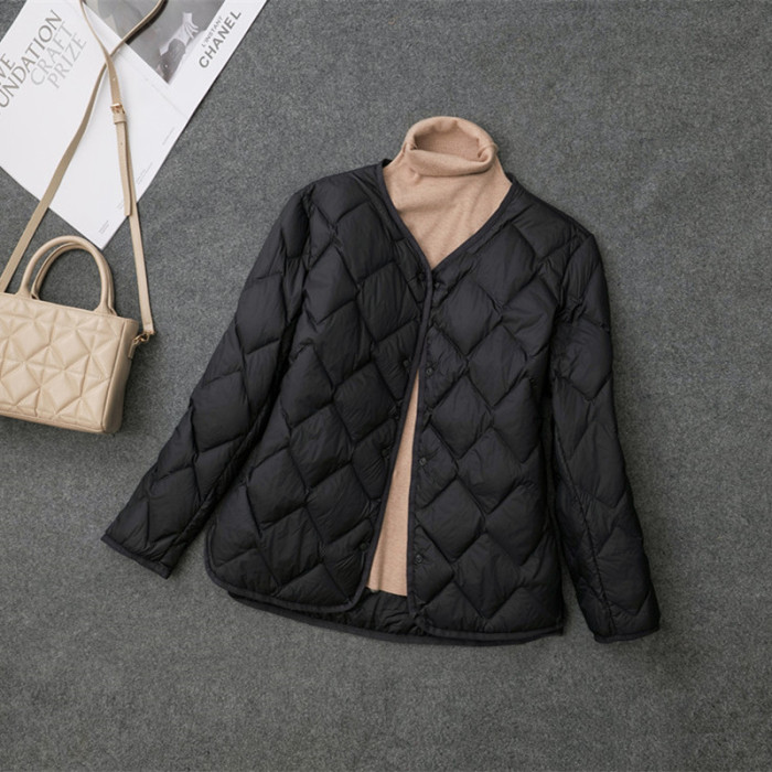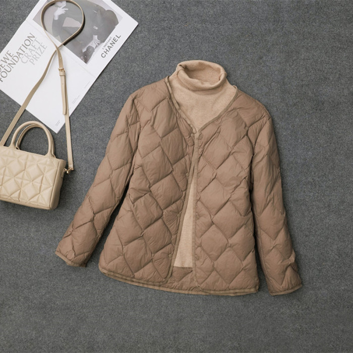 V領輕薄羽絨服女無領菱格200斤媽媽薄款內膽內穿中老年加肥加大碼