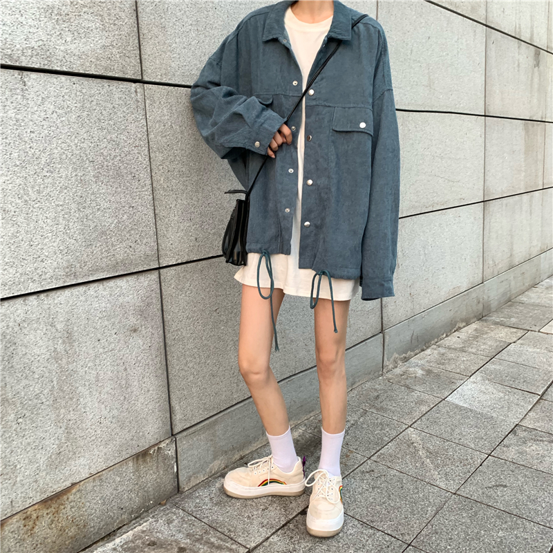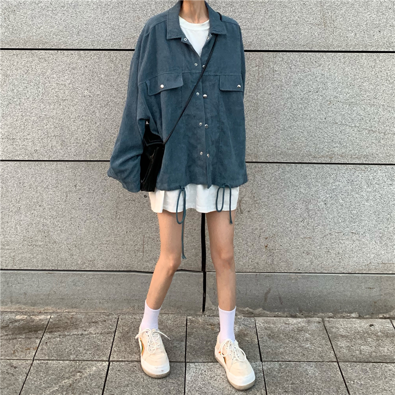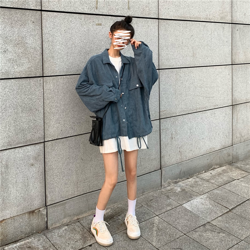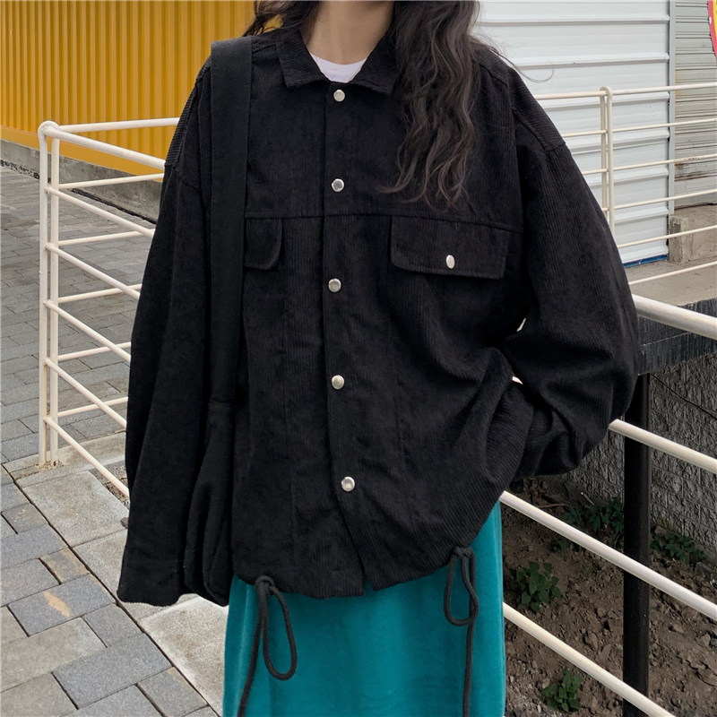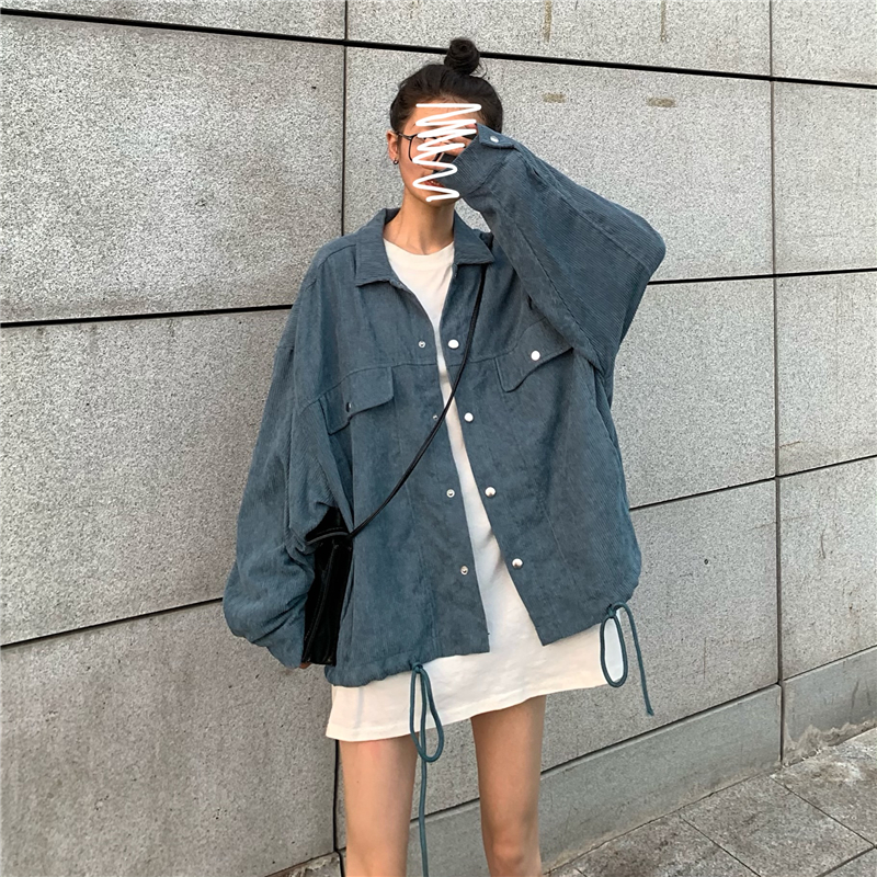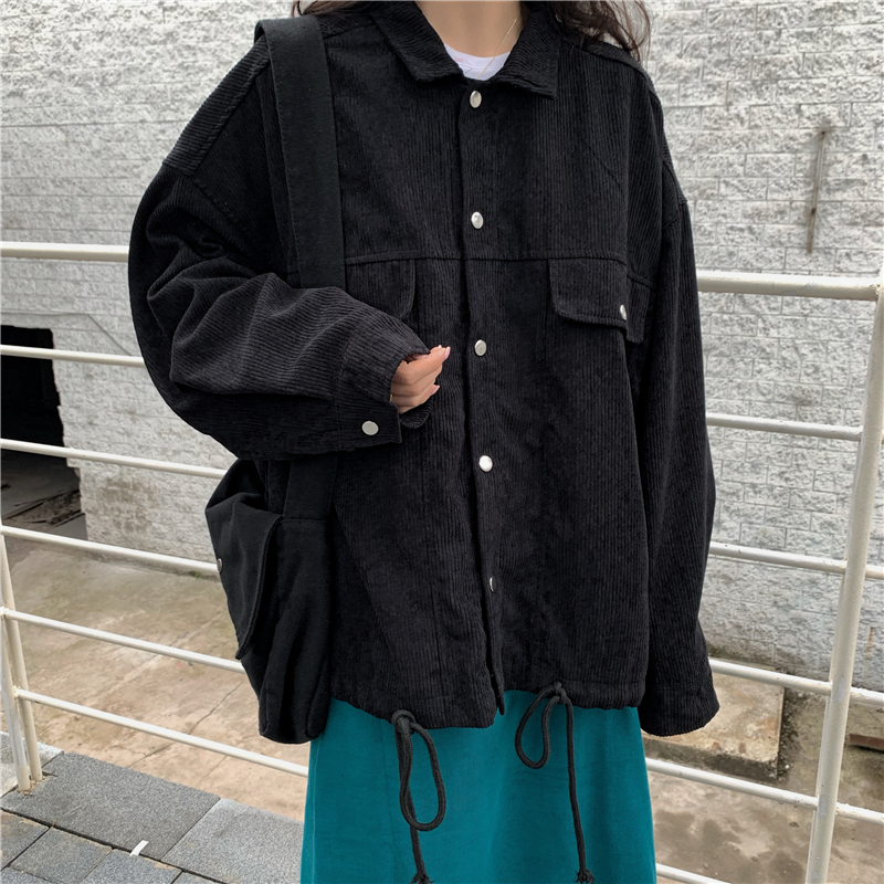 春秋2025新款bf風工裝外套女大碼胖mm寬松百搭燈芯絨長袖夾克上衣