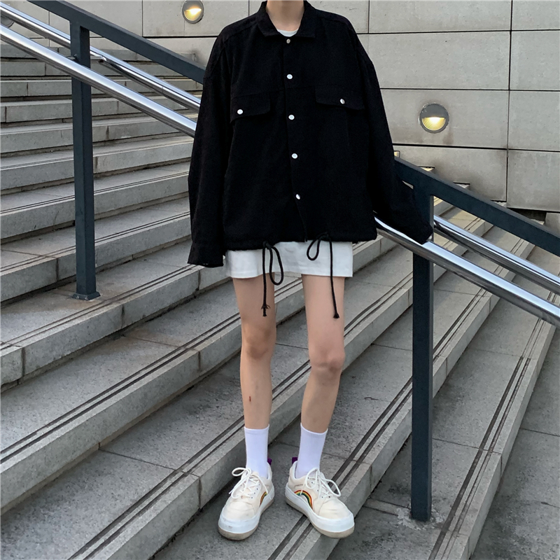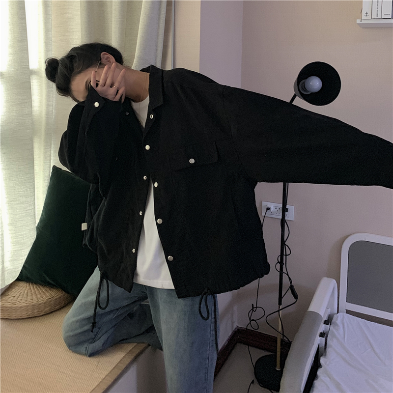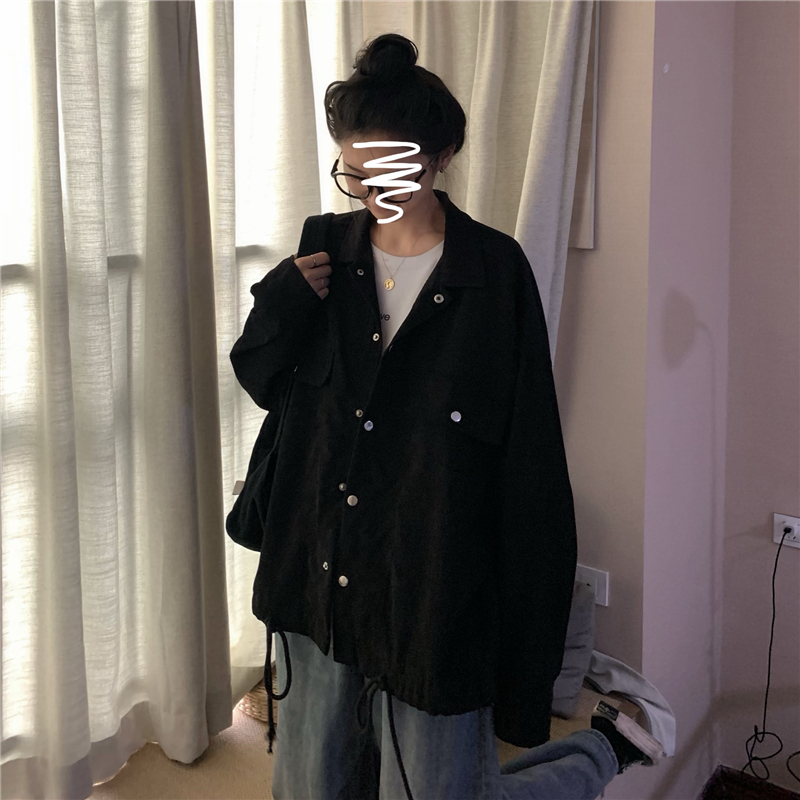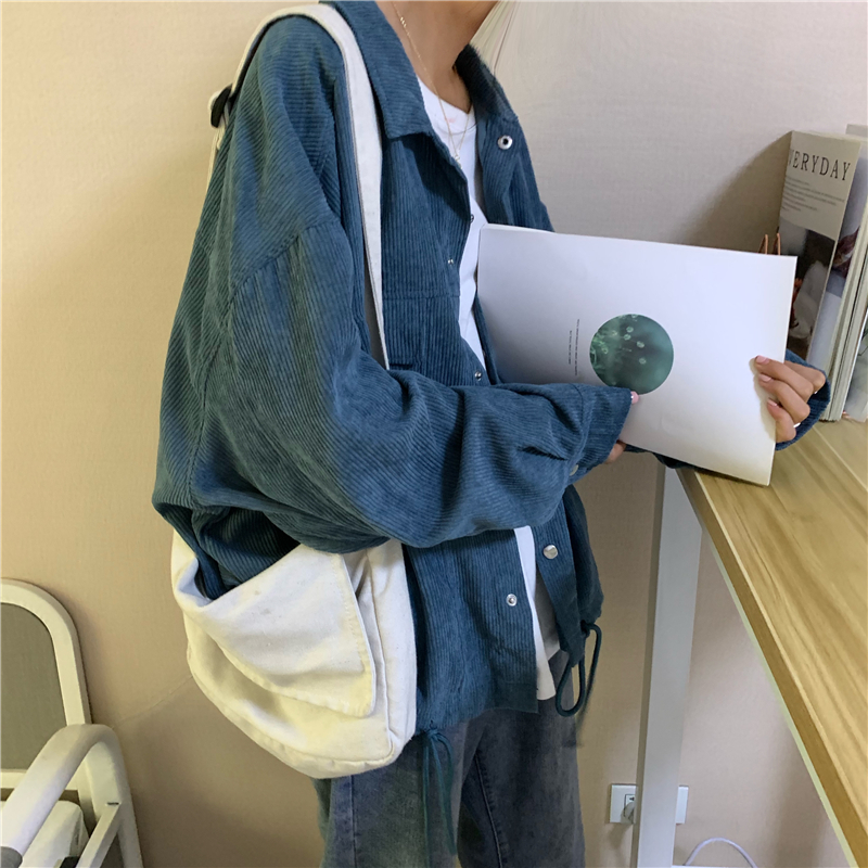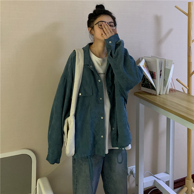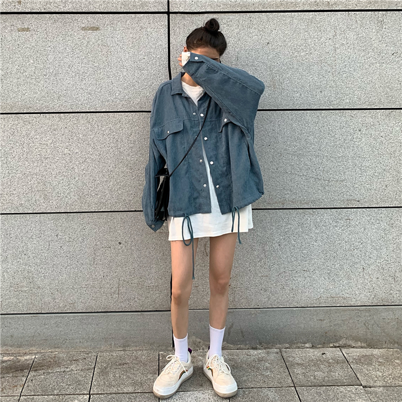 春秋2025新款bf風工裝外套女大碼胖mm寬松百搭燈芯絨長袖夾克上衣