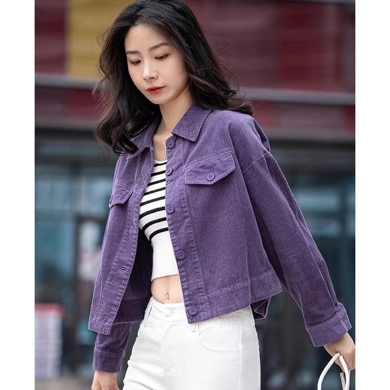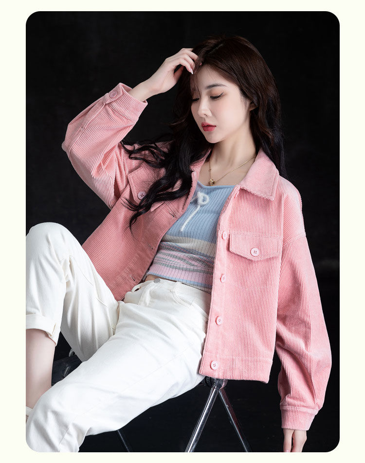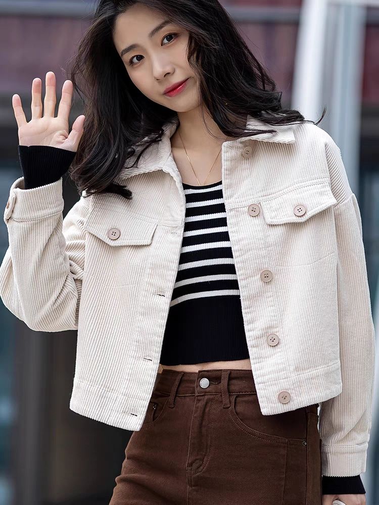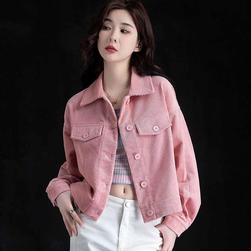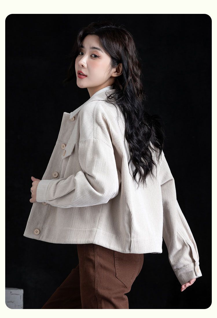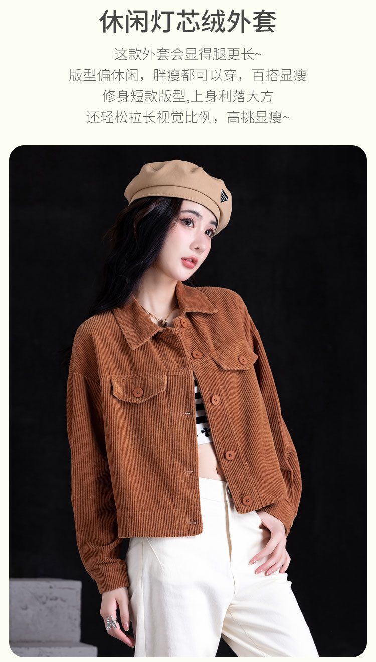 燈芯絨短外套休閒襯衫女裝秋冬款條絨上衣長袖小個子氣質開衫百搭