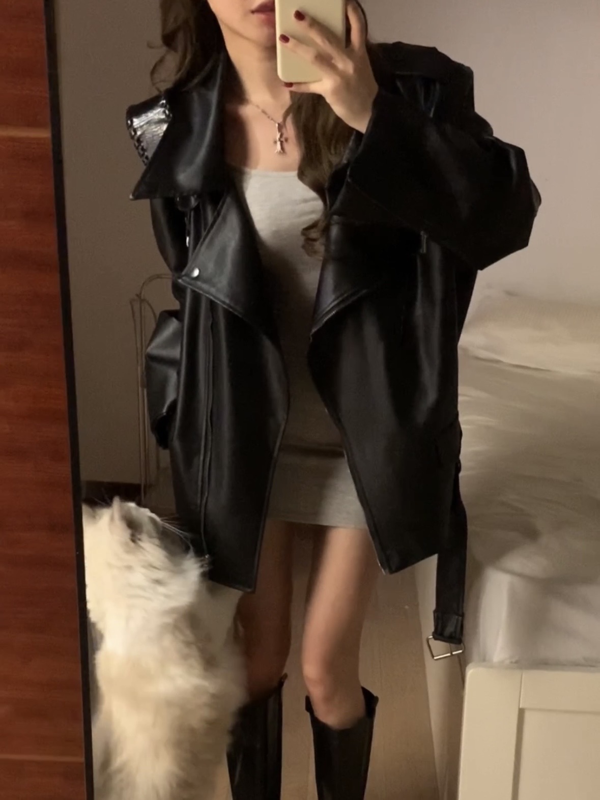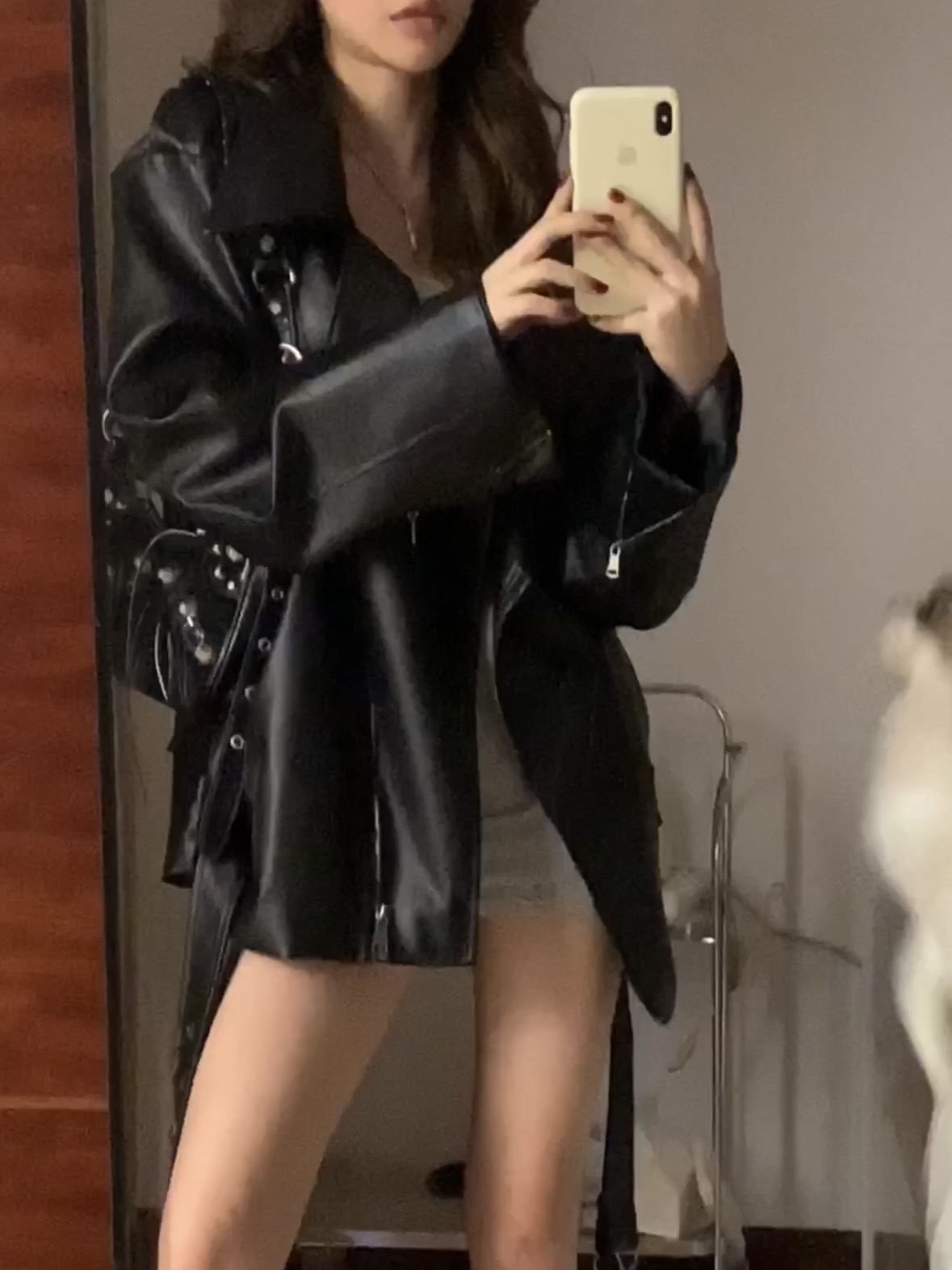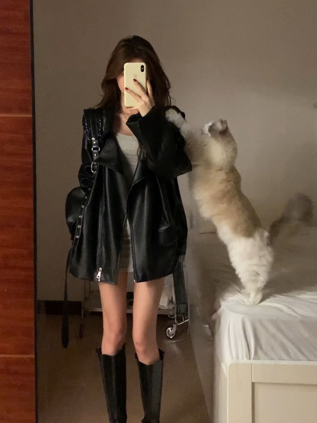 黑色西裝領pu皮衣外套女秋冬小衆設計感韓系穿搭痞帥機車夾克上衣