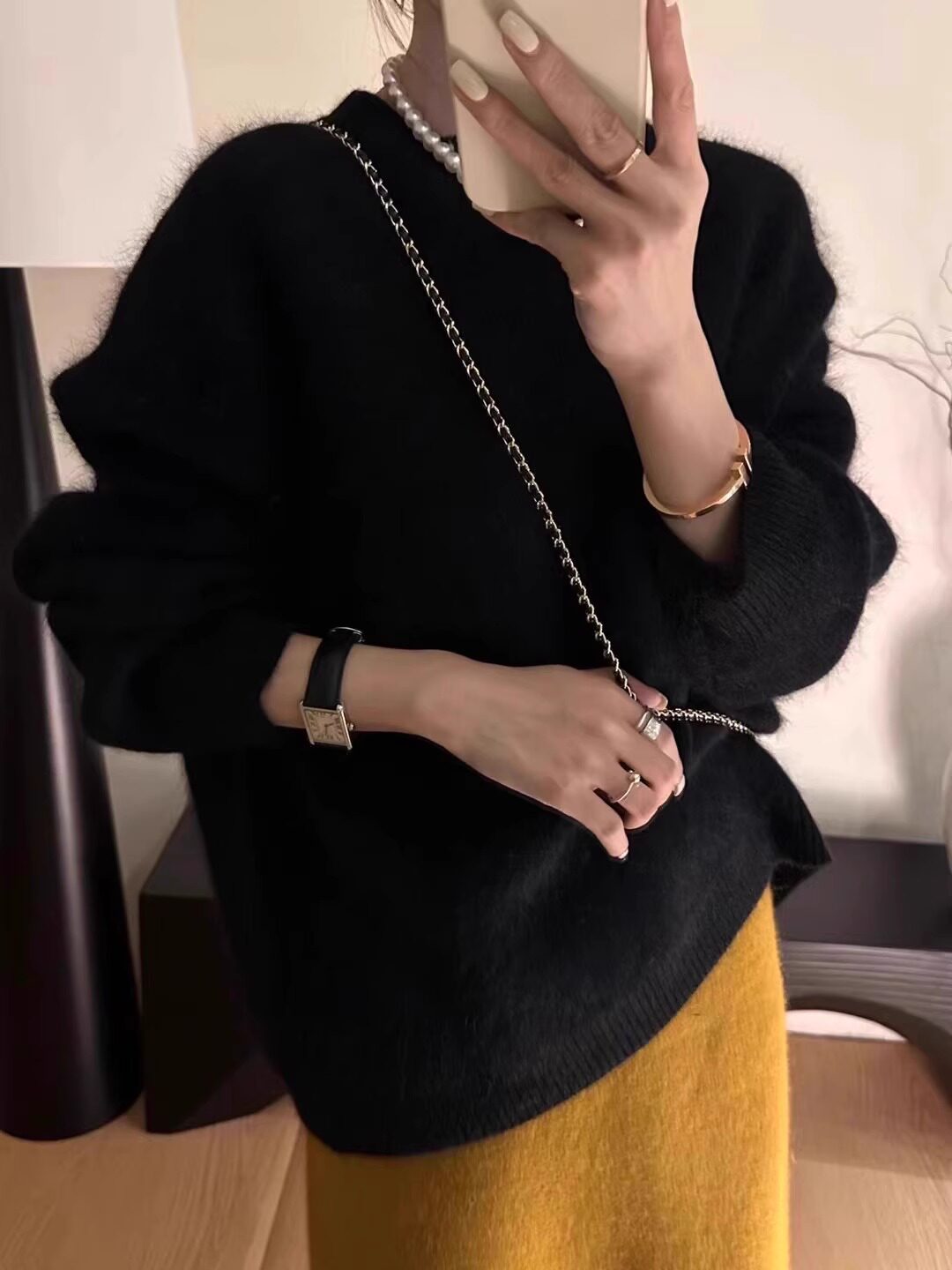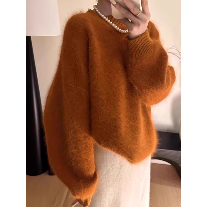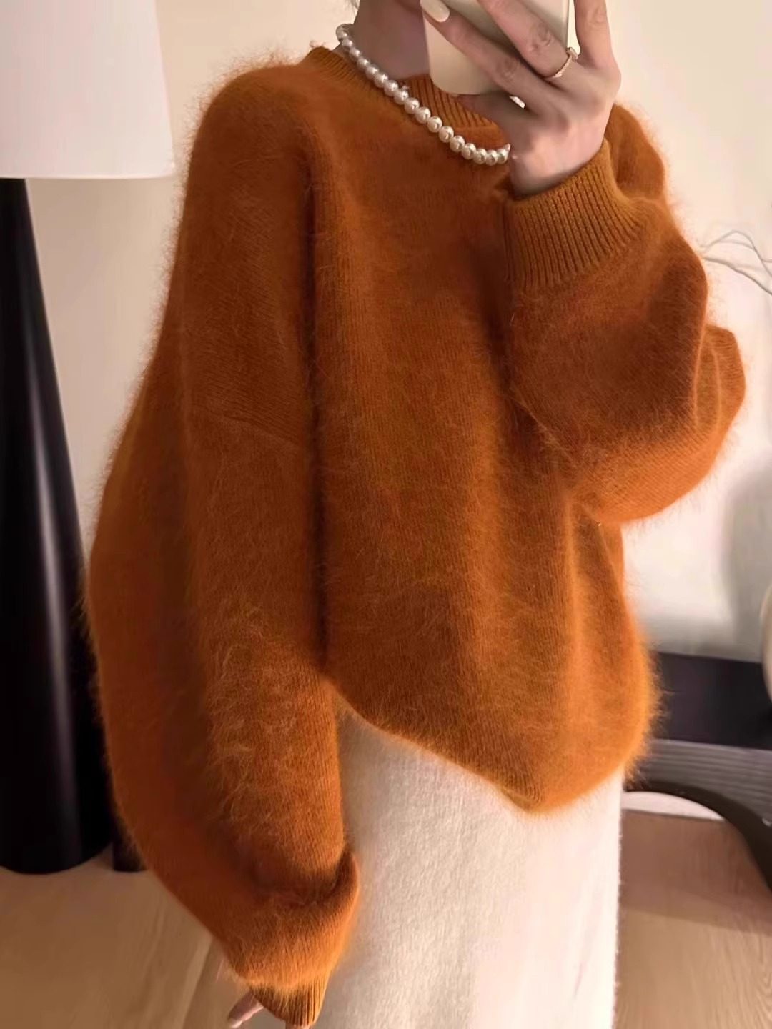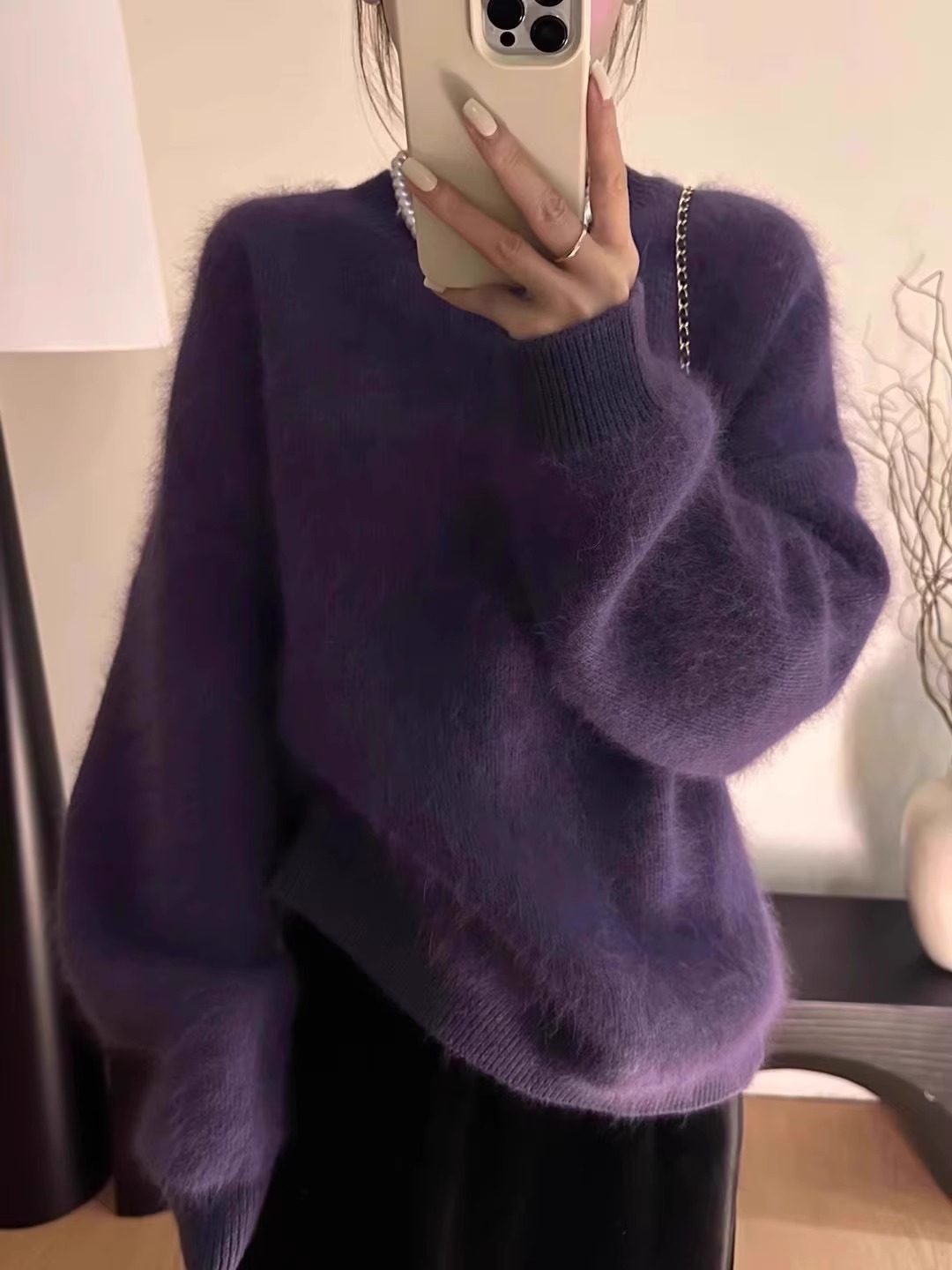 歐貨高級感葡萄紫色水貂絨毛衣女秋冬軟糯慵嬾風內搭浣熊絨針織衫