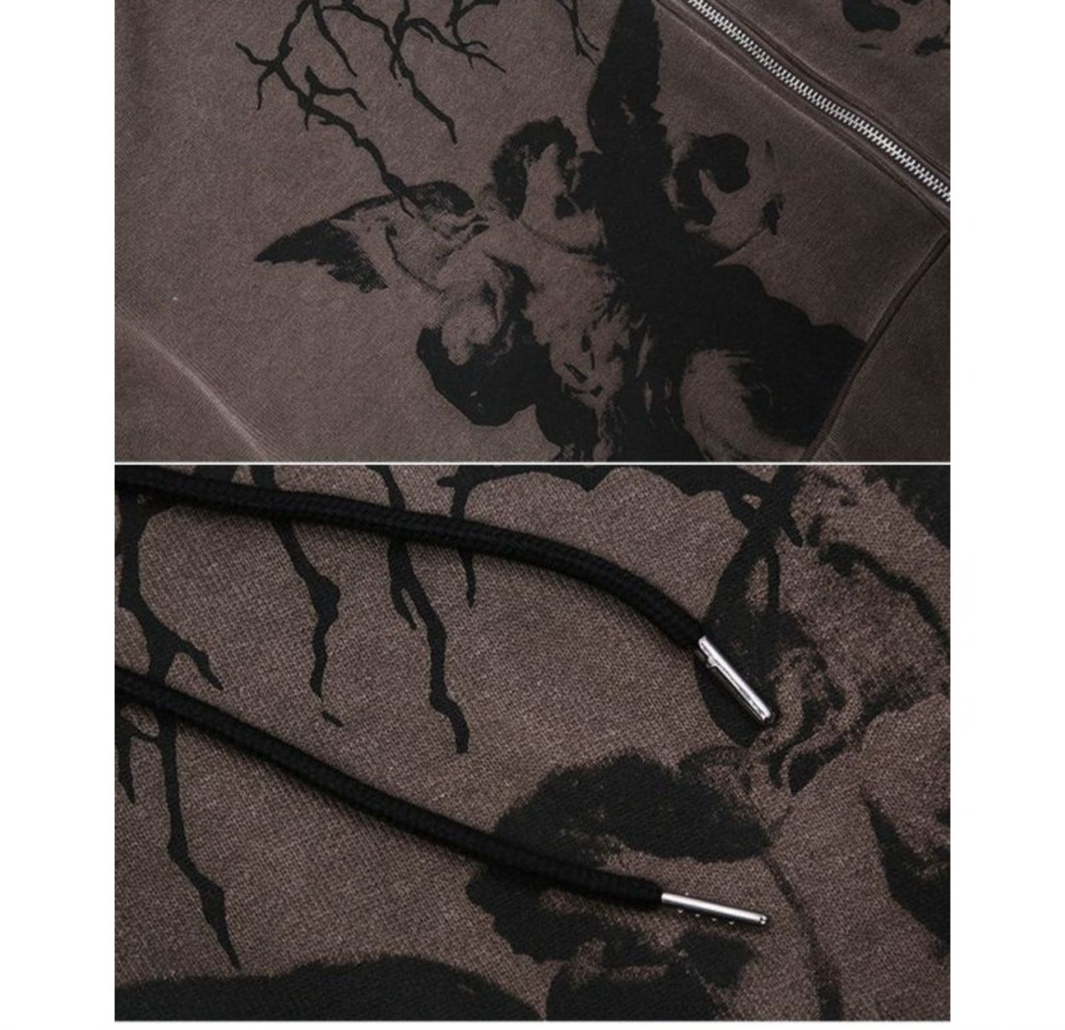 外套女秋冬2025年新款加絨加厚寬松開衫復古連帽日系上衣服潮ins