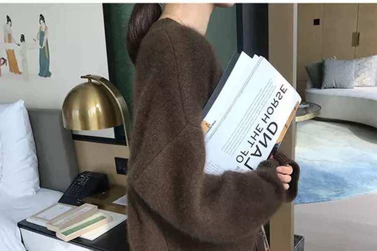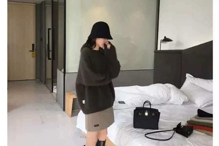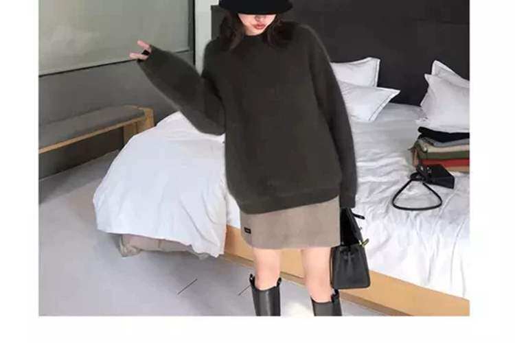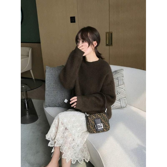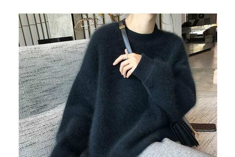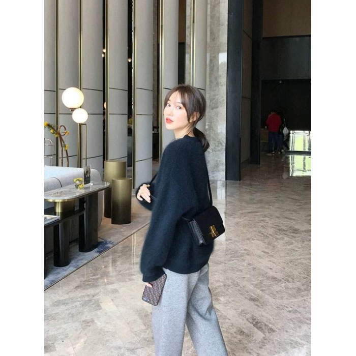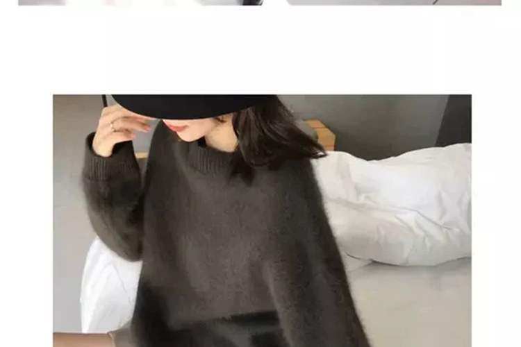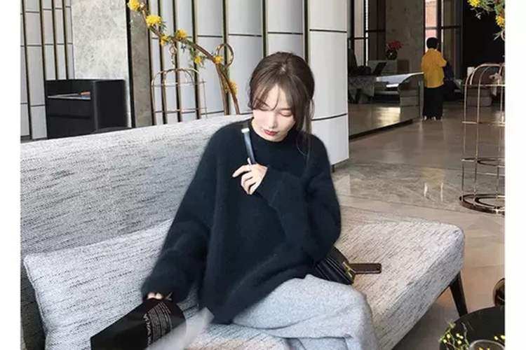 法式軟糯風黑色毛衣女秋冬加厚寬鬆慵嬾外穿高級感水貂絨針織上衣