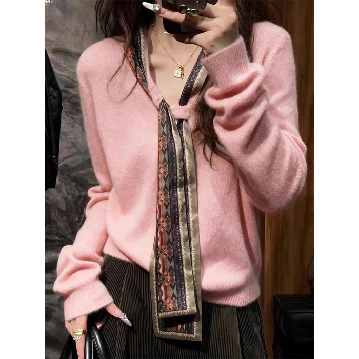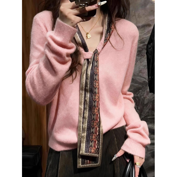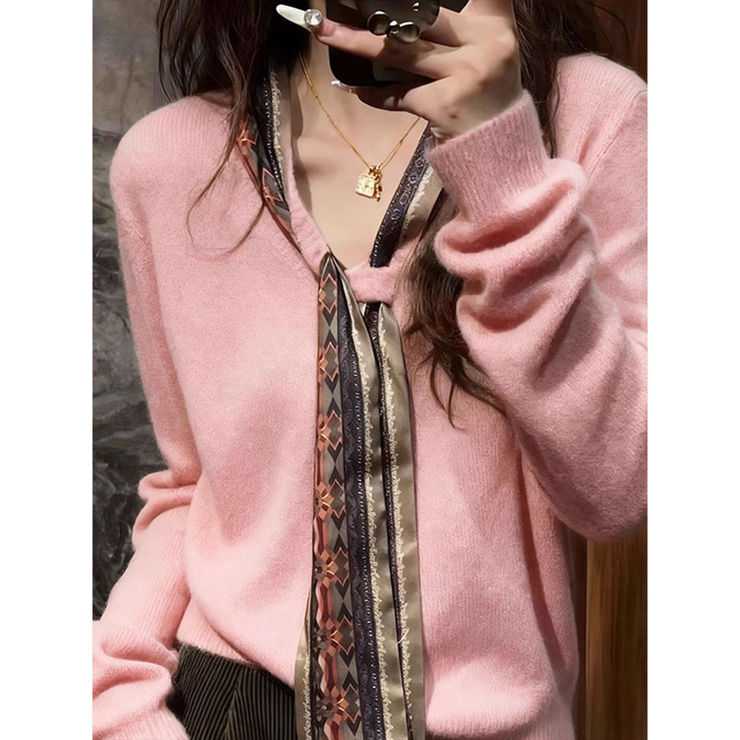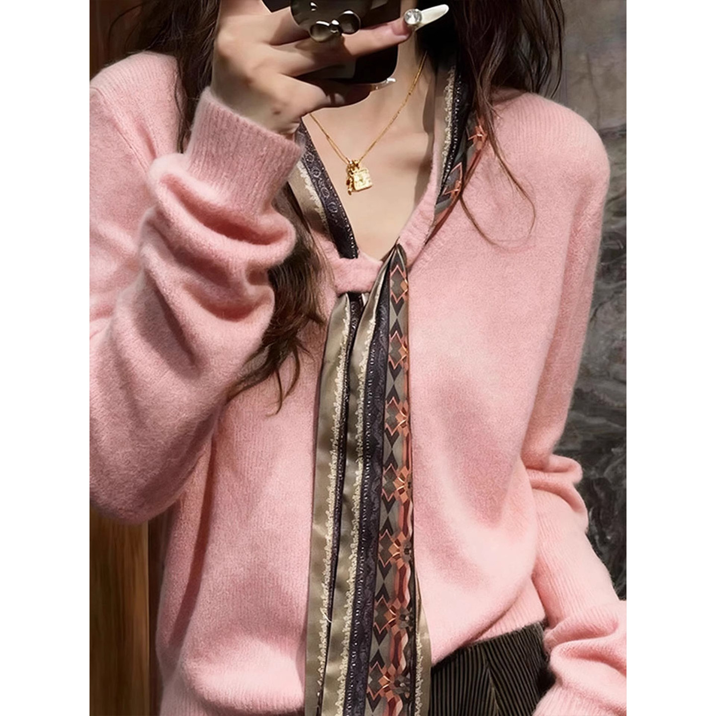 慵嬾粉色毛衣女2025新款今年流行爆款長袖針織衫獨特漂亮早秋上衣