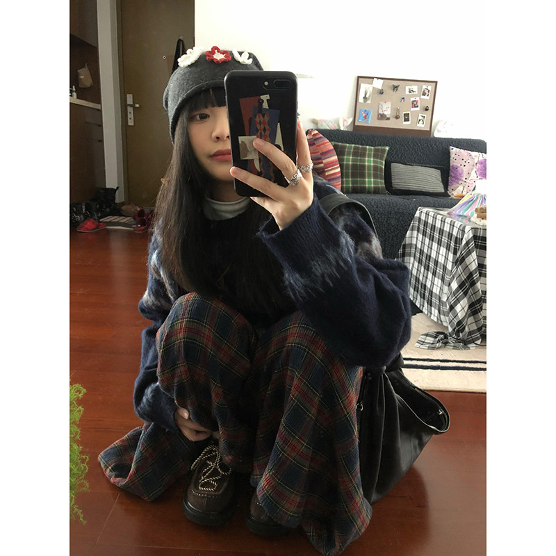 美式復古北歐費爾島潮牌圓領毛衣女秋冬季寬鬆設計感針織衫外套潮