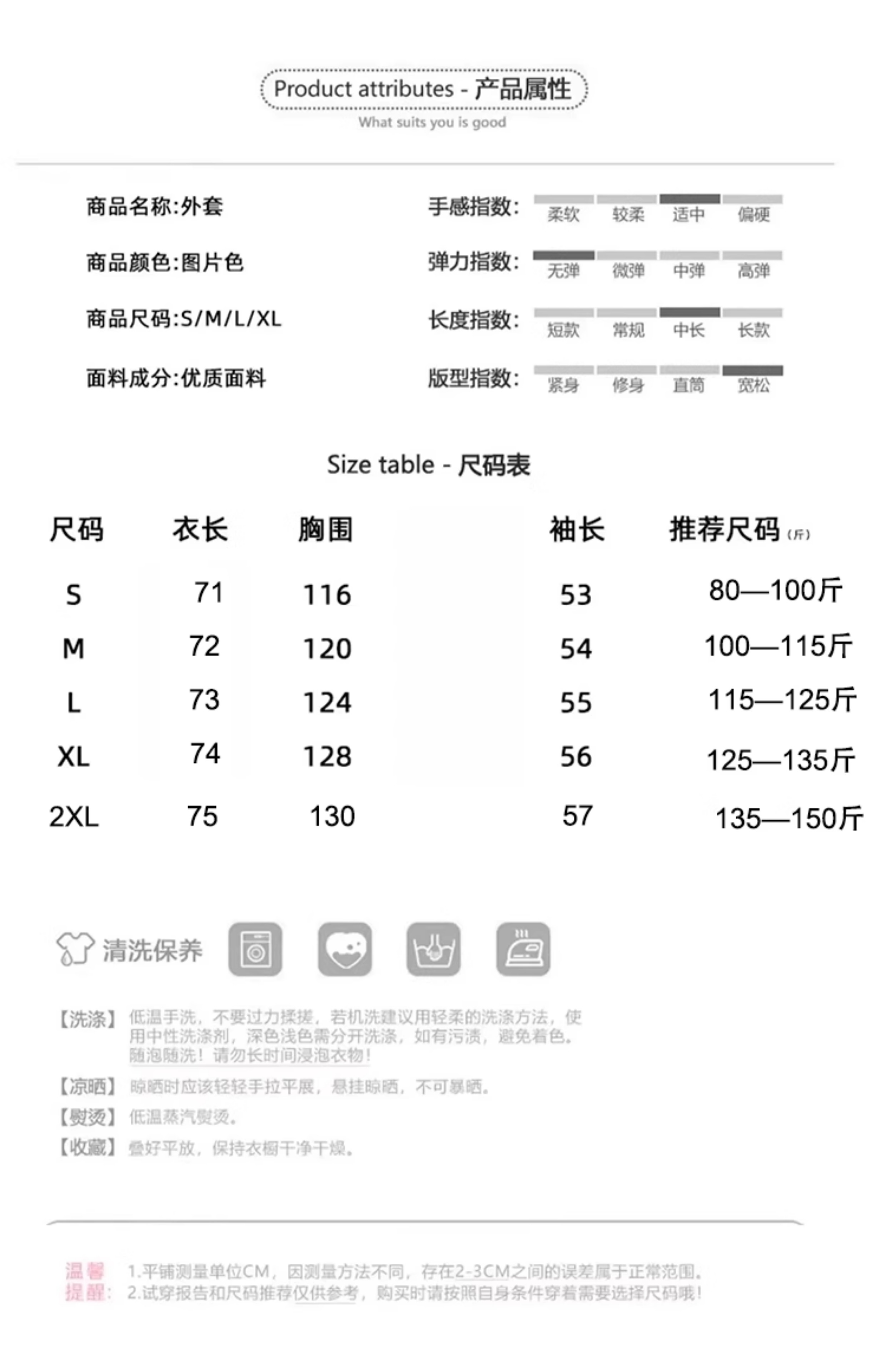 | 衣長 | 中長款 |