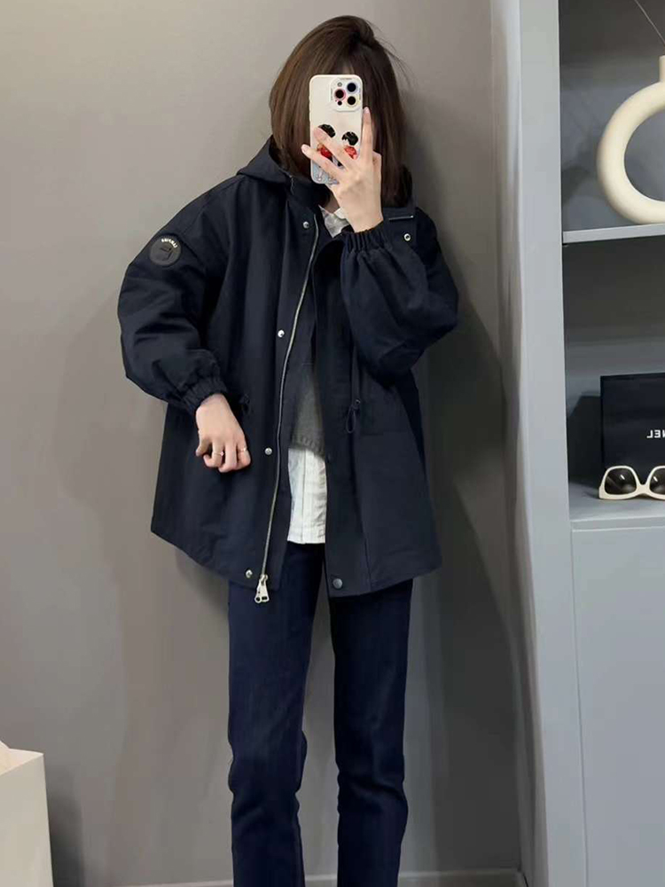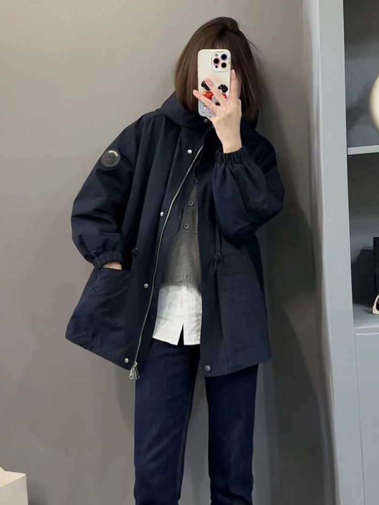 連帽沖鋒衣外套女加棉加厚中長款秋冬裝新款2025爆款顯瘦棉服上衣