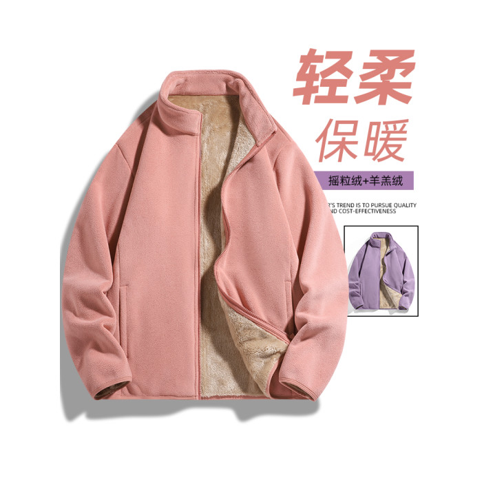 暖暖的仿羊羔絨厚外套女秋冬奧利絨抓絨衣加絨粉色夾克搖粒絨衛衣