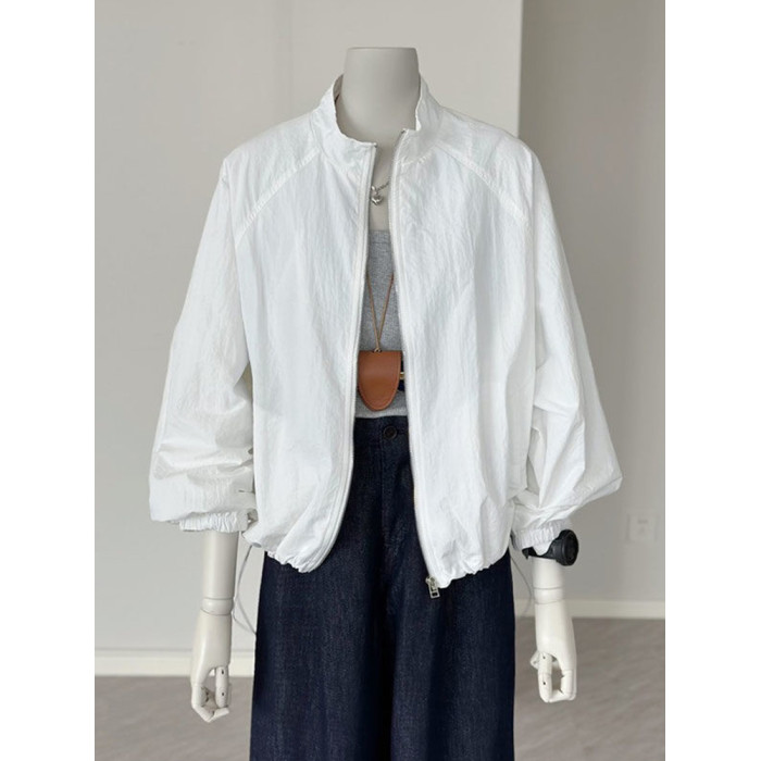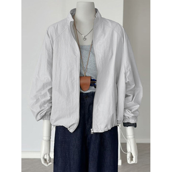 時髦小立領寬松防曬衣薄款外套休閒沖鋒衣夏秋戶外休閒運動夾克女