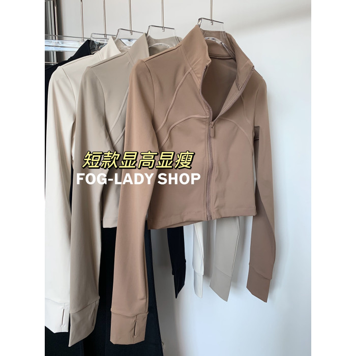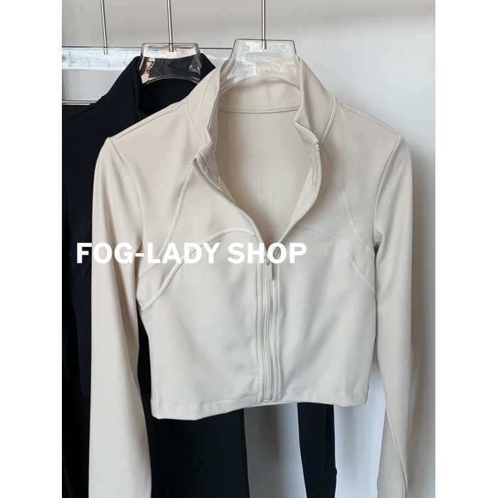 【春秋】顯高顯瘦-美式立領長袖拉鍊運動外套跑步防風衣短款修身