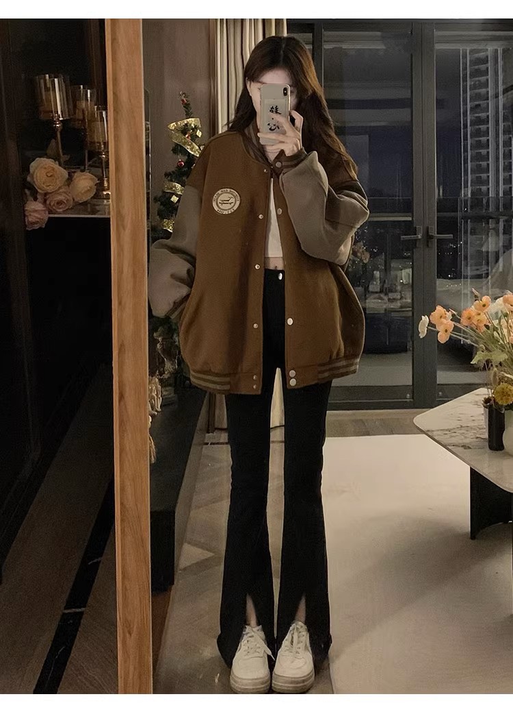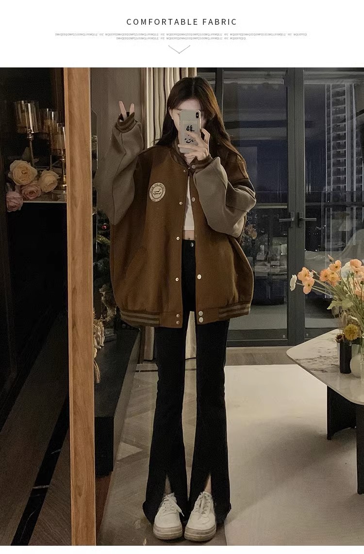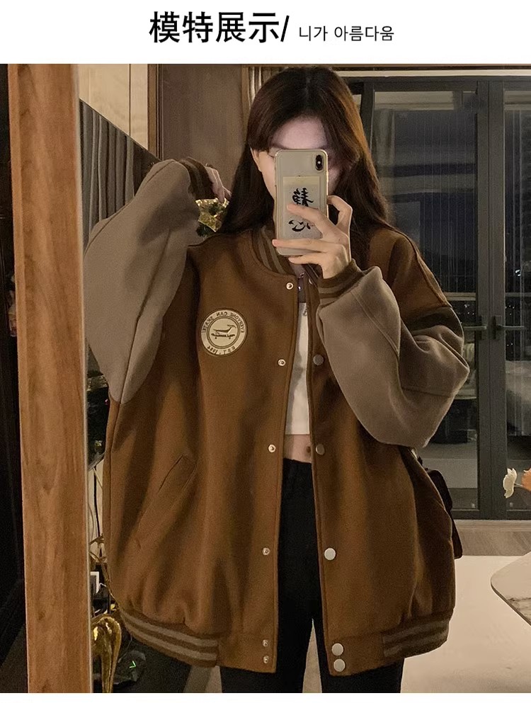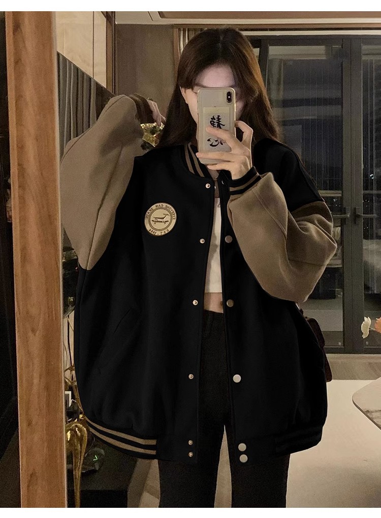 美式學院風棒球服外套女春秋季新款復古拼色炸街chic港風夾克上衣