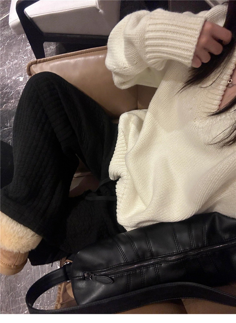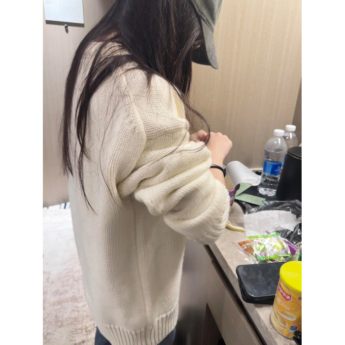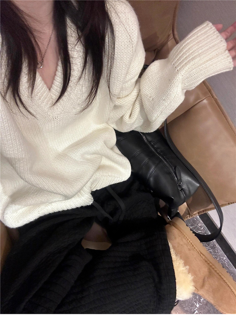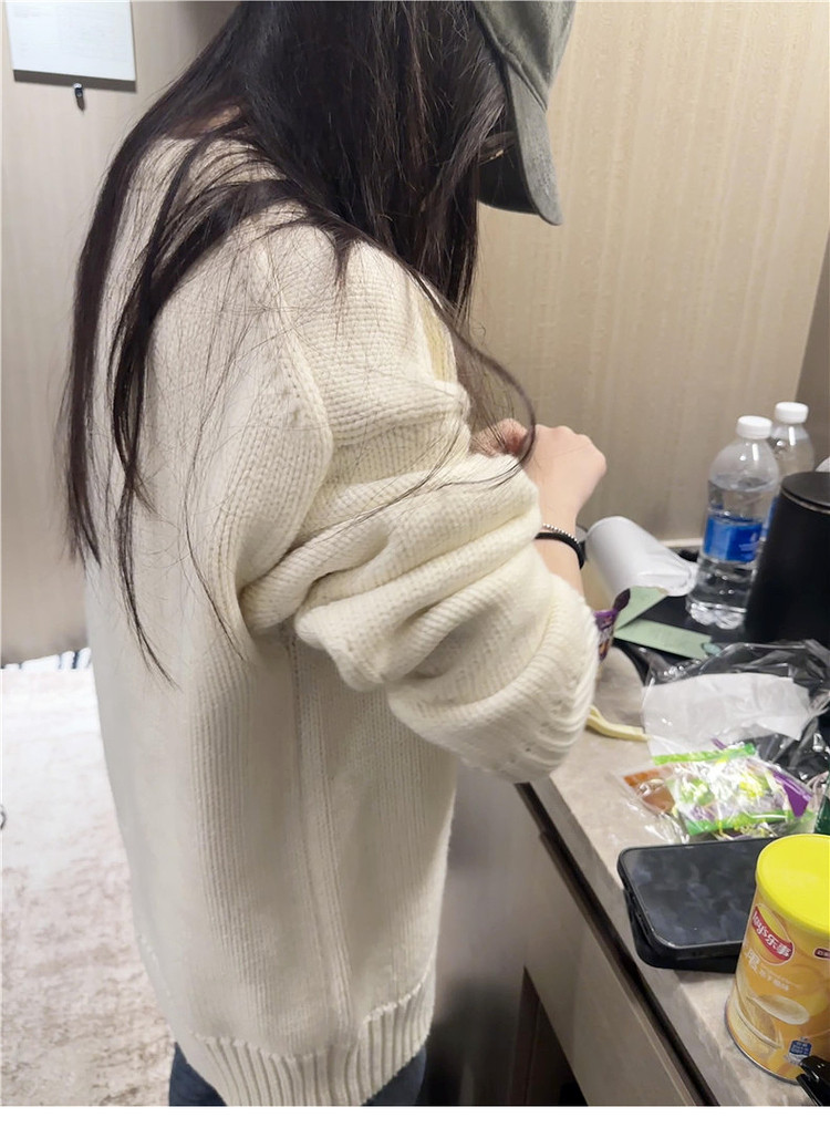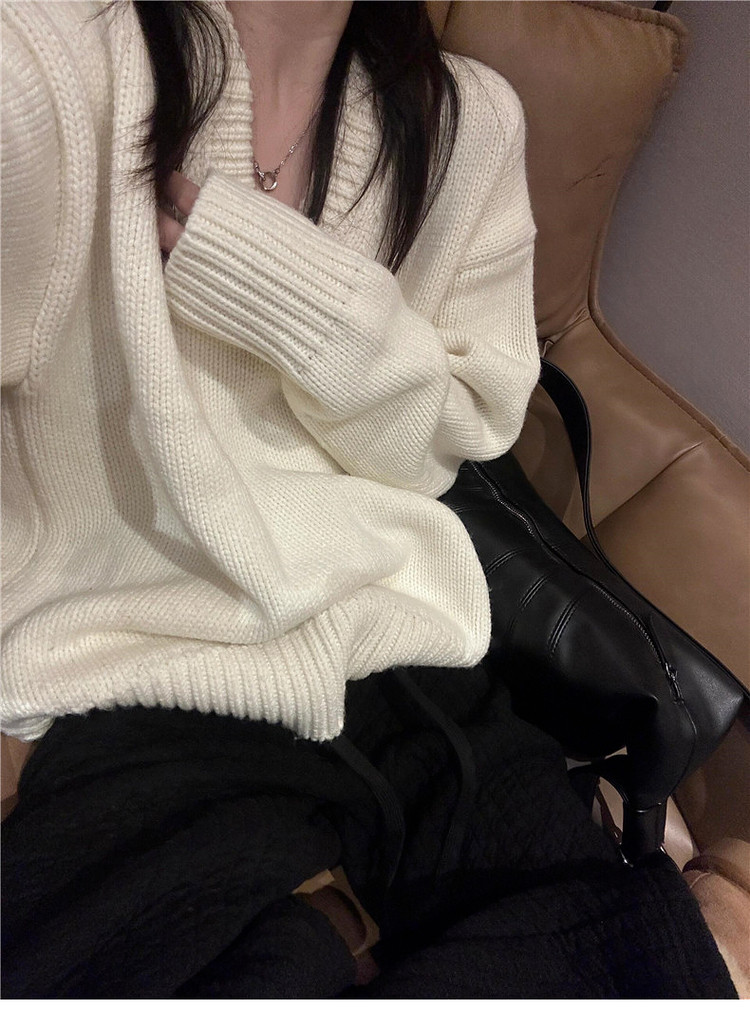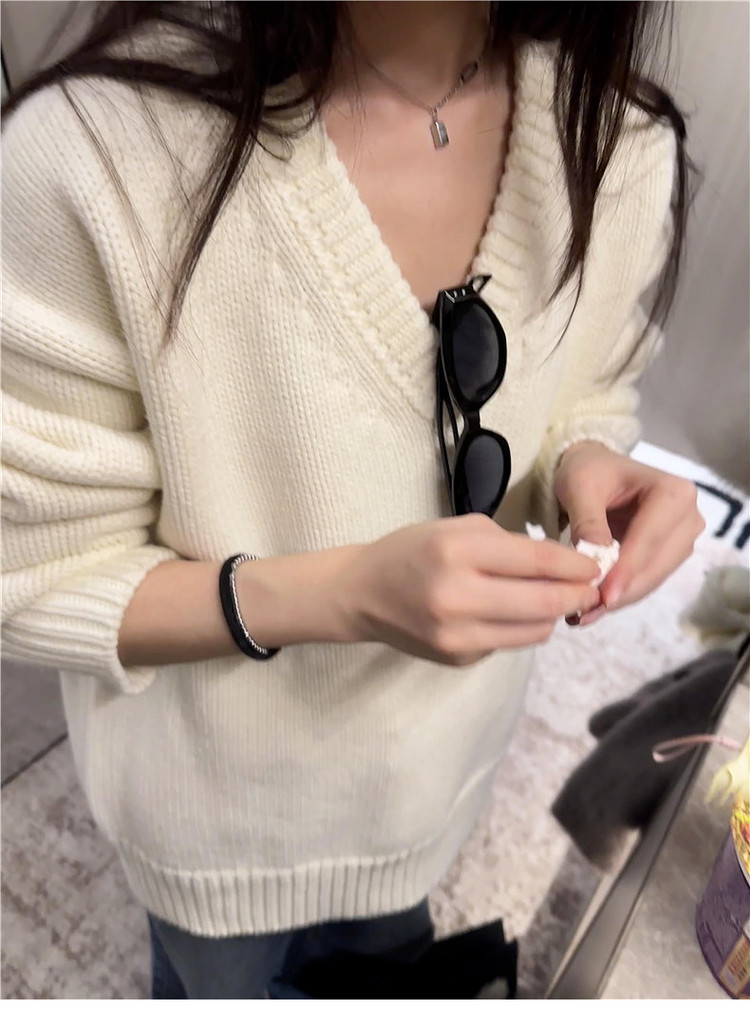 美式復古白色v領毛衣女初秋季高級感寬鬆軟糯溫柔休閒百搭針織衫