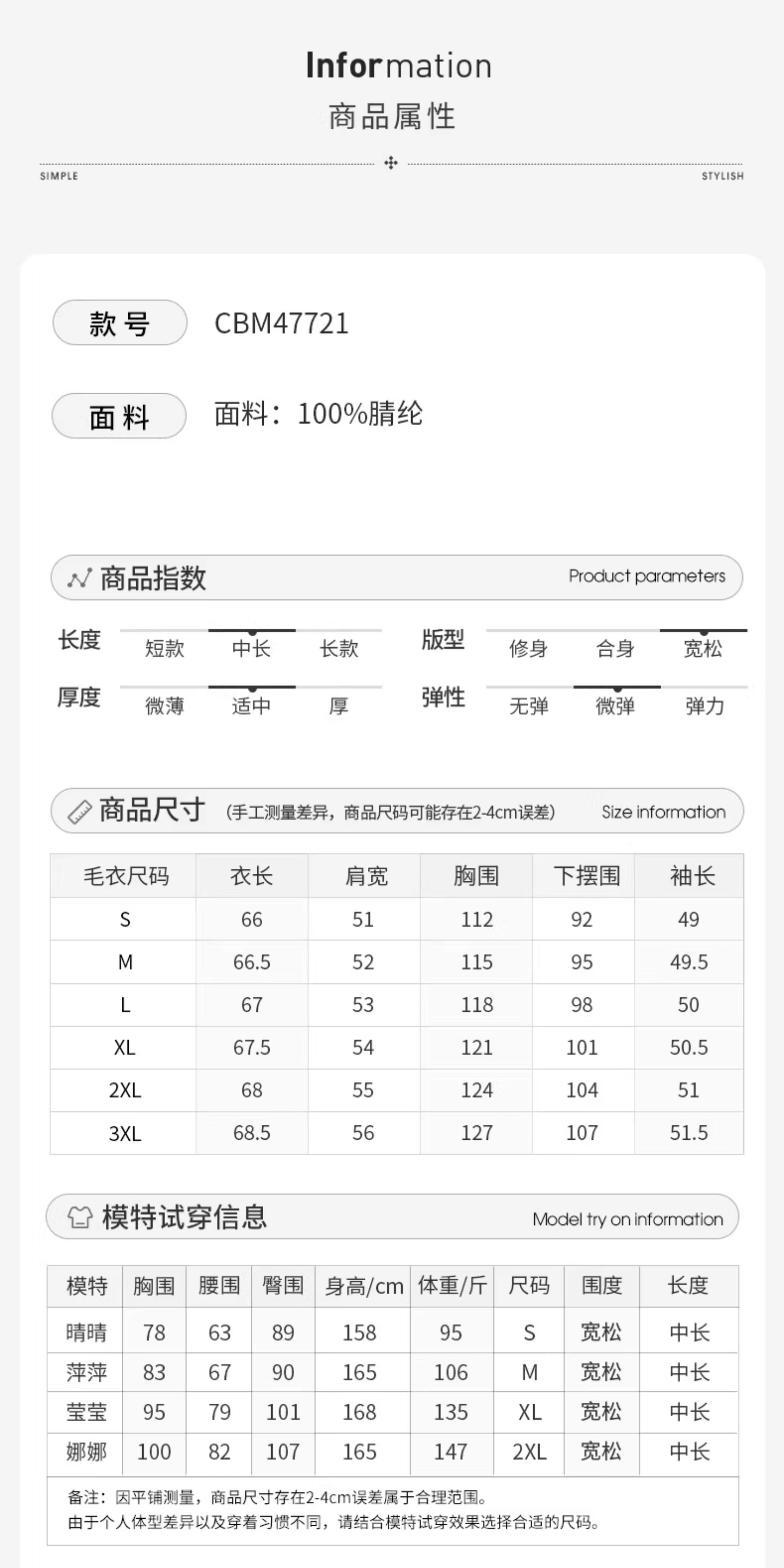 | 版型分類 | 寬松型 |