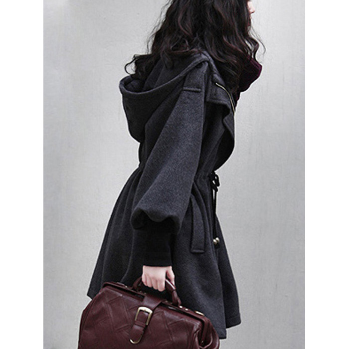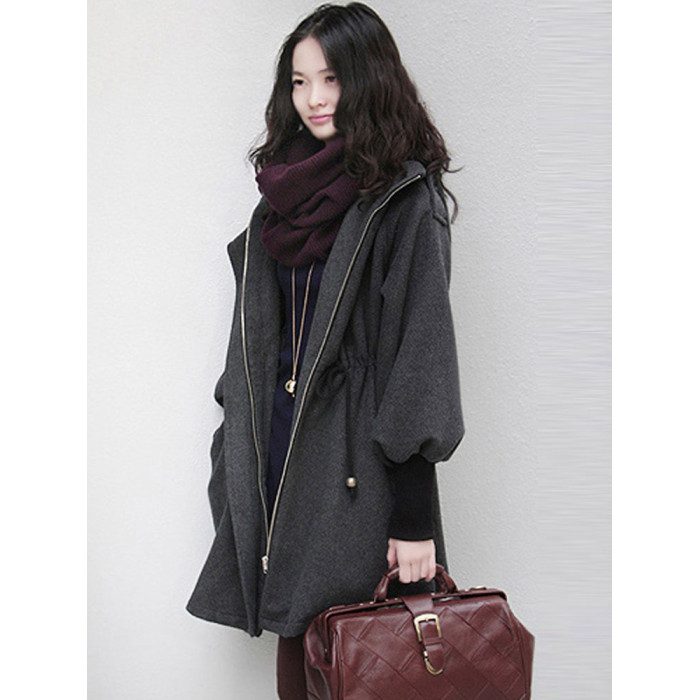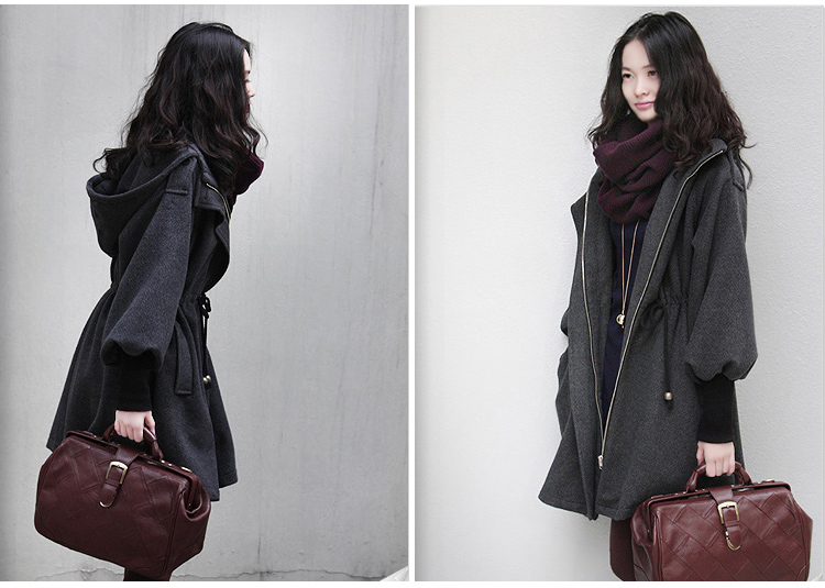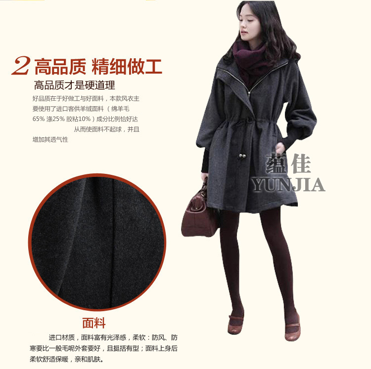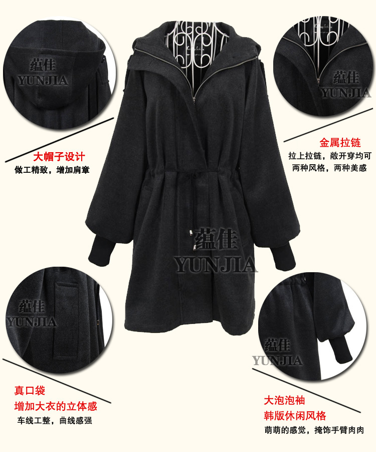 呢子大衣女中長款韓版加大碼女裝秋冬赫本風連帽厚綿羊絨毛呢外套