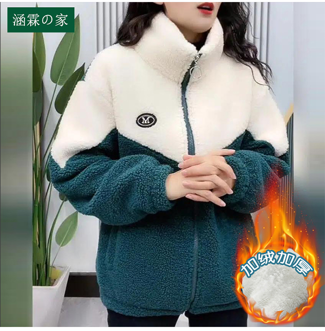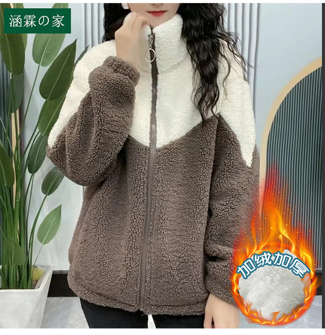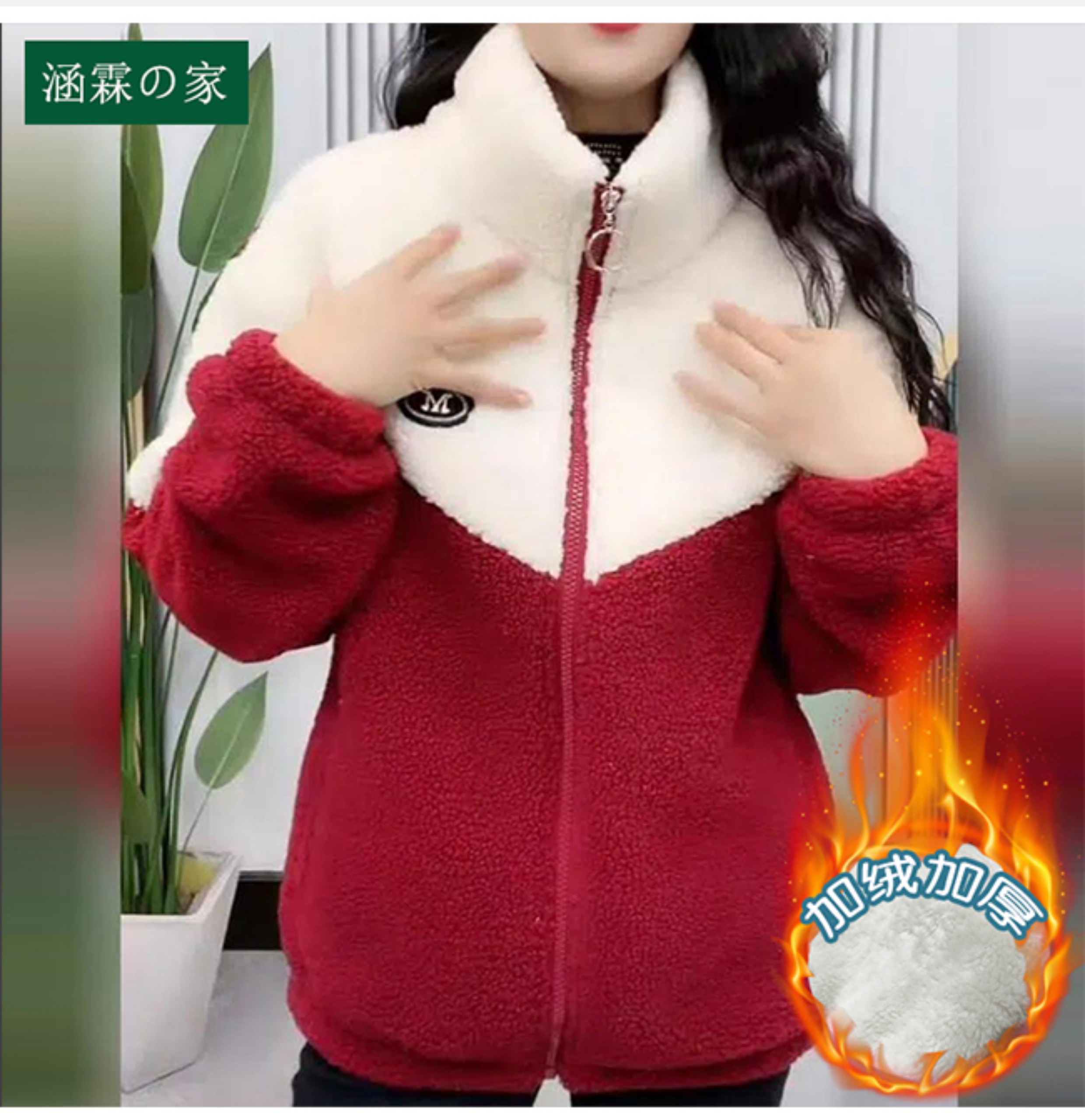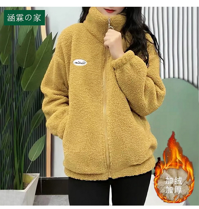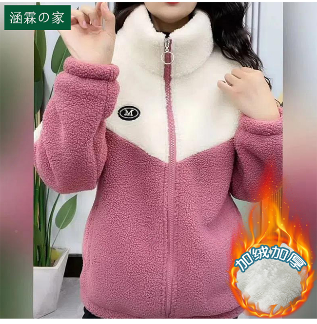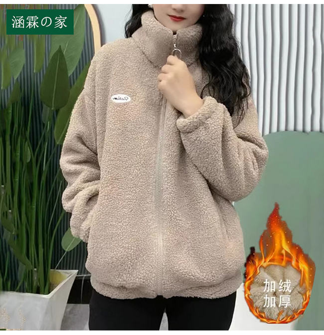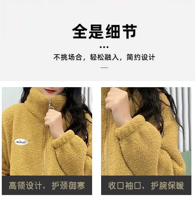 短外套女加厚一體絨秋冬季新款減齡洋氣加絨顆粒絨保暖羊羔毛上衣