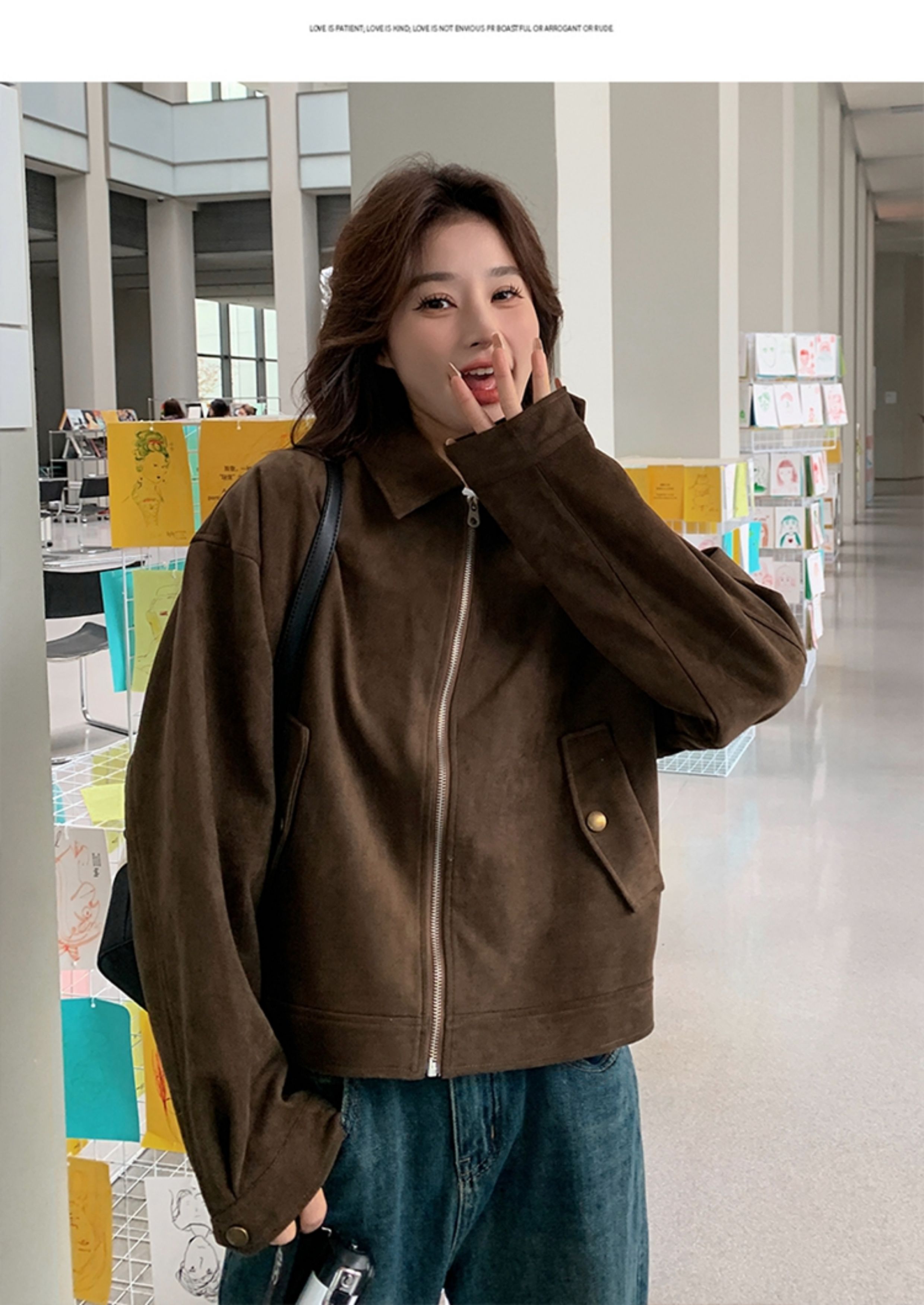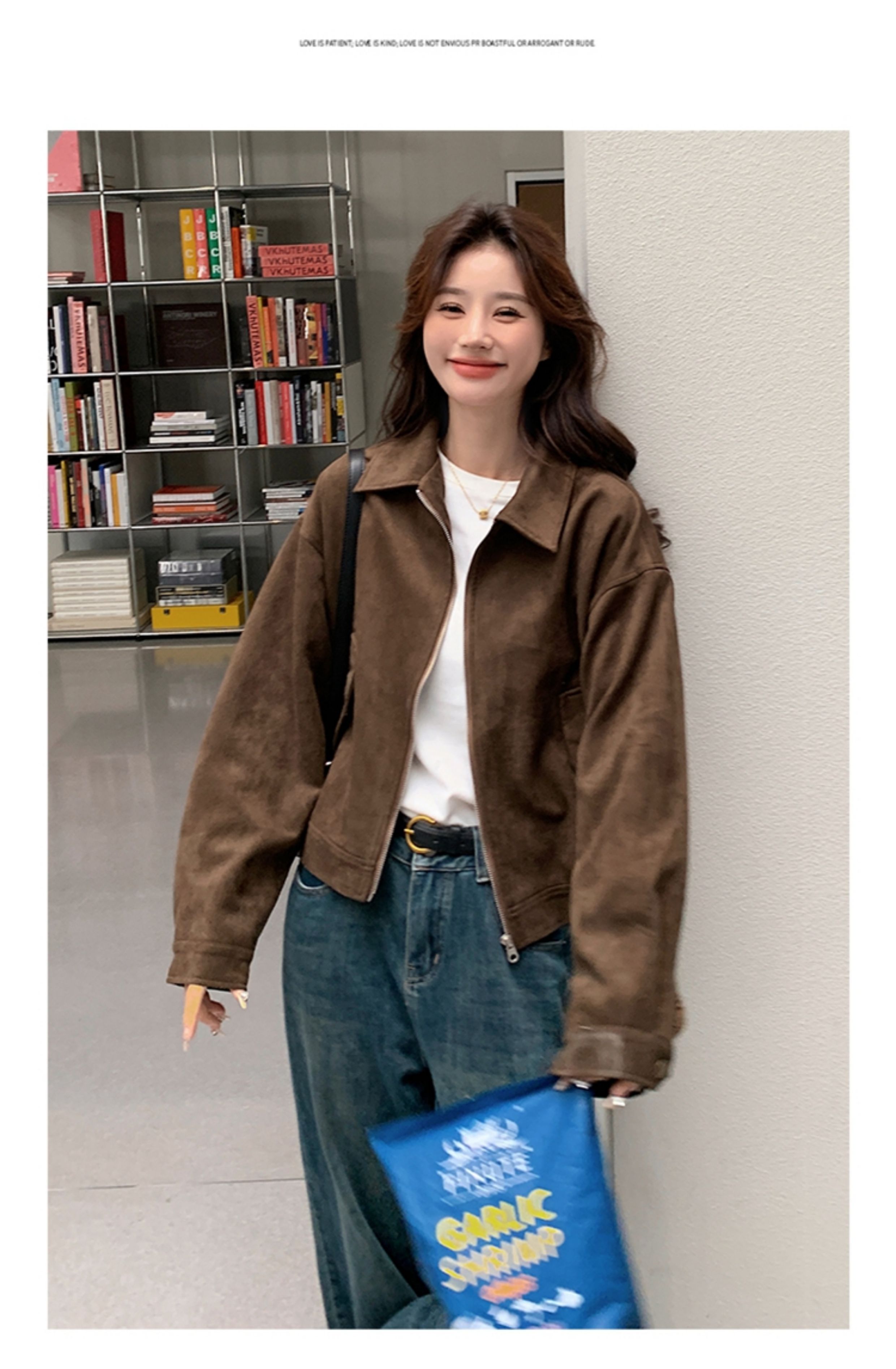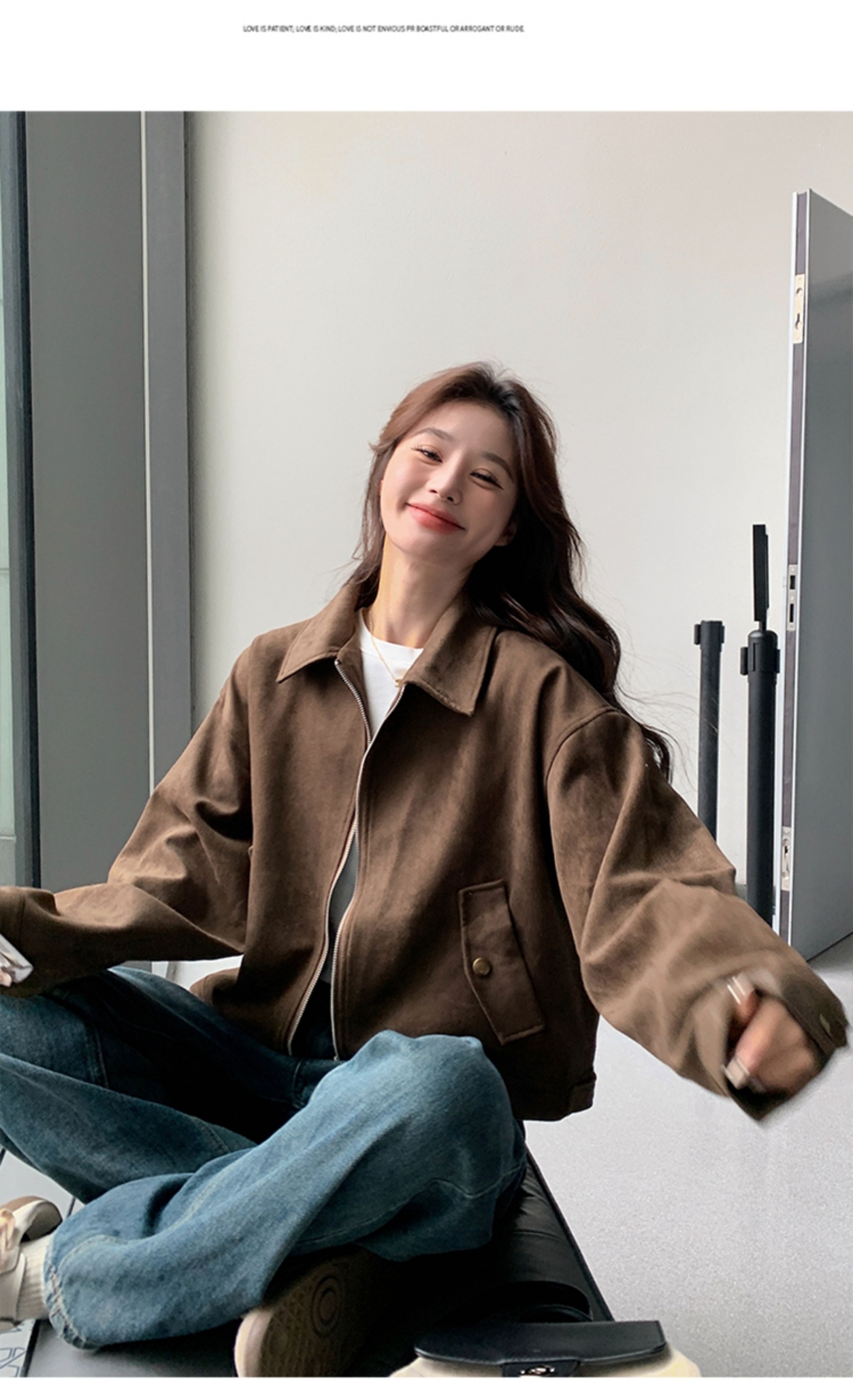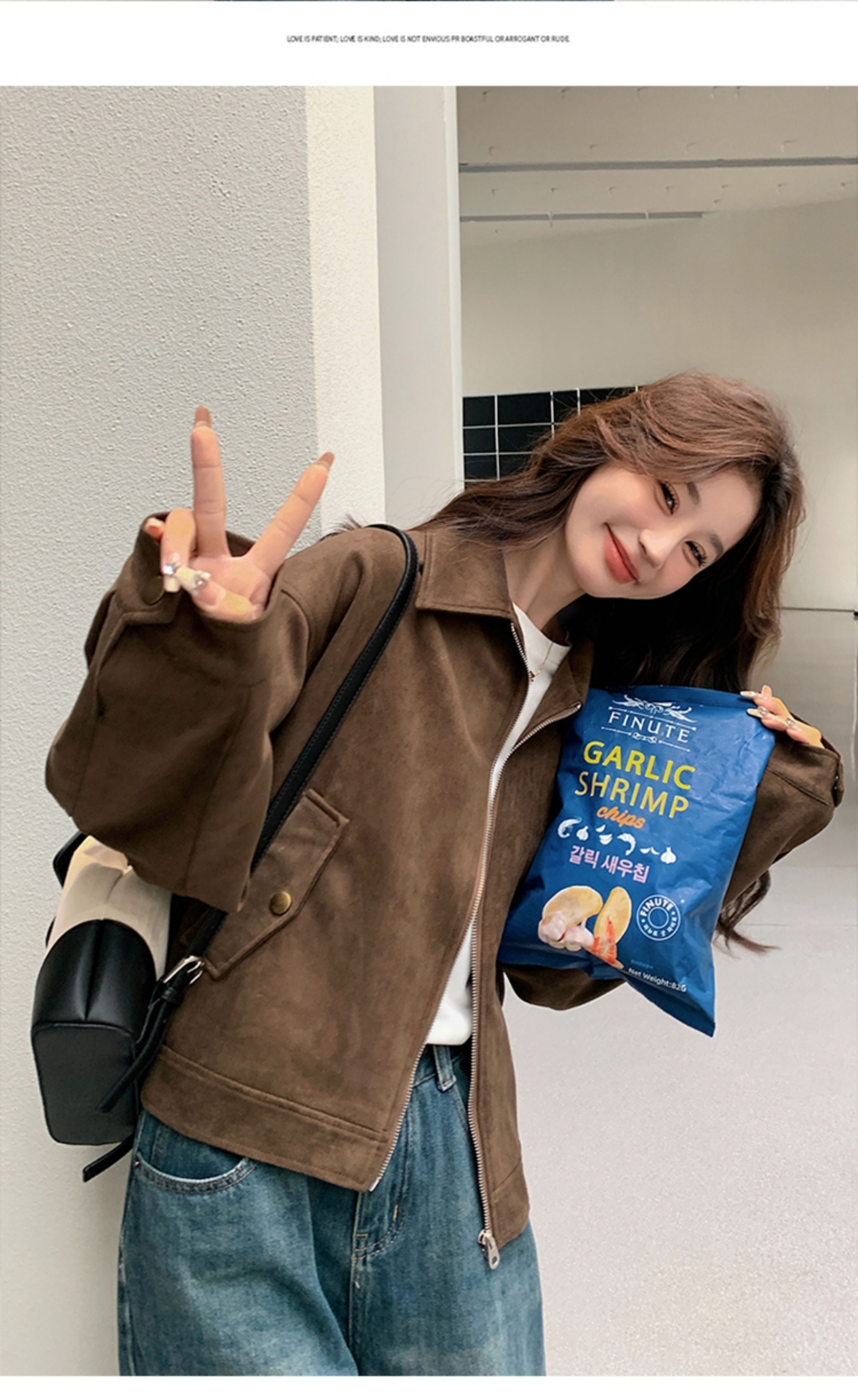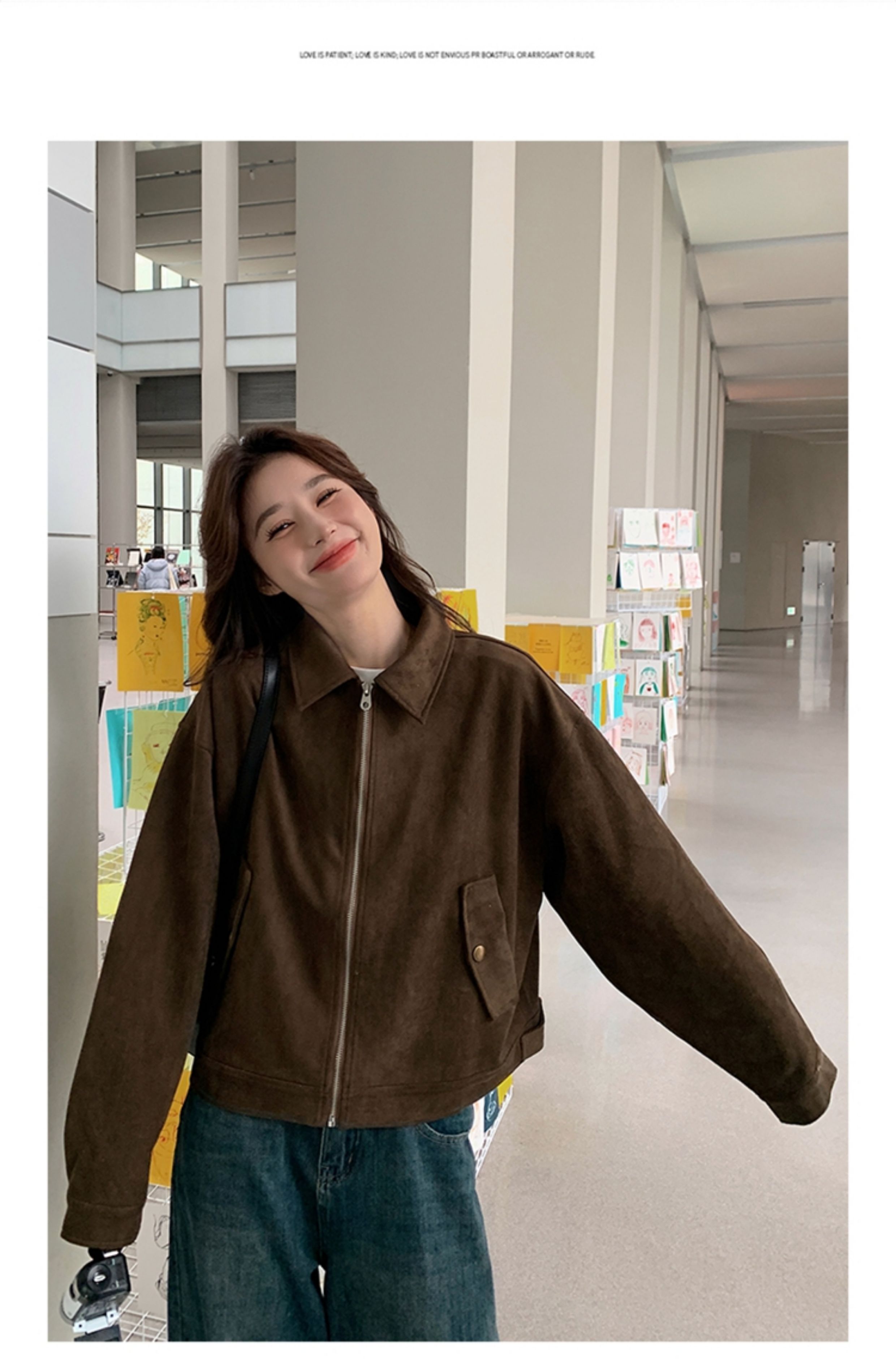 美拉德短款麂皮絨外套女春秋裝美式復古慵懶chic又酷又颯皮衣夾克