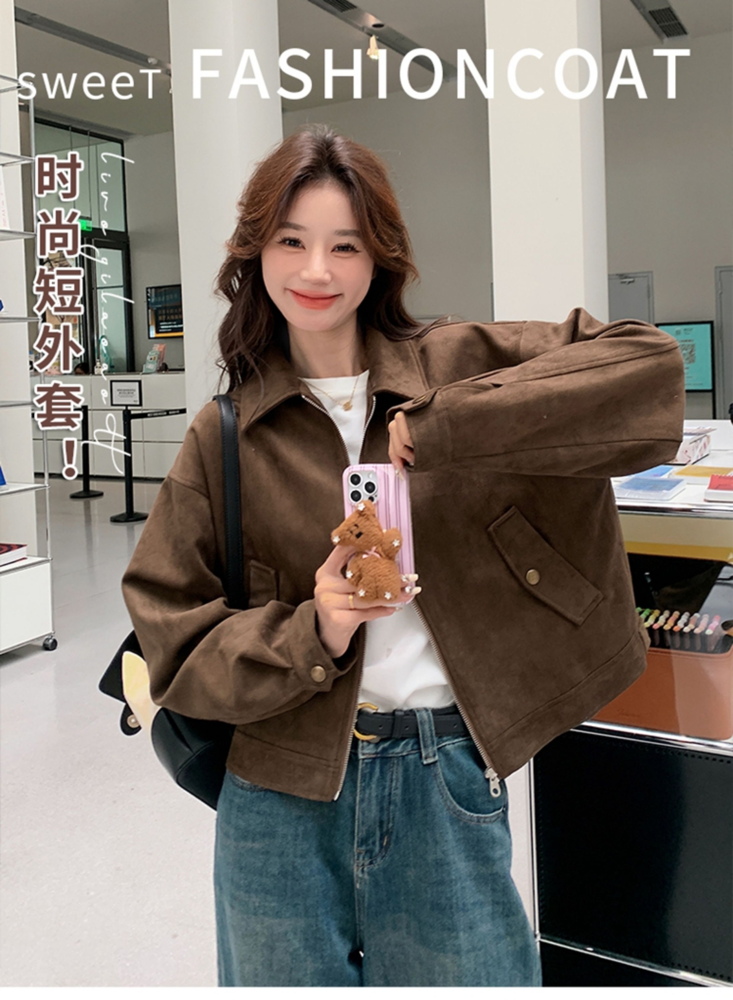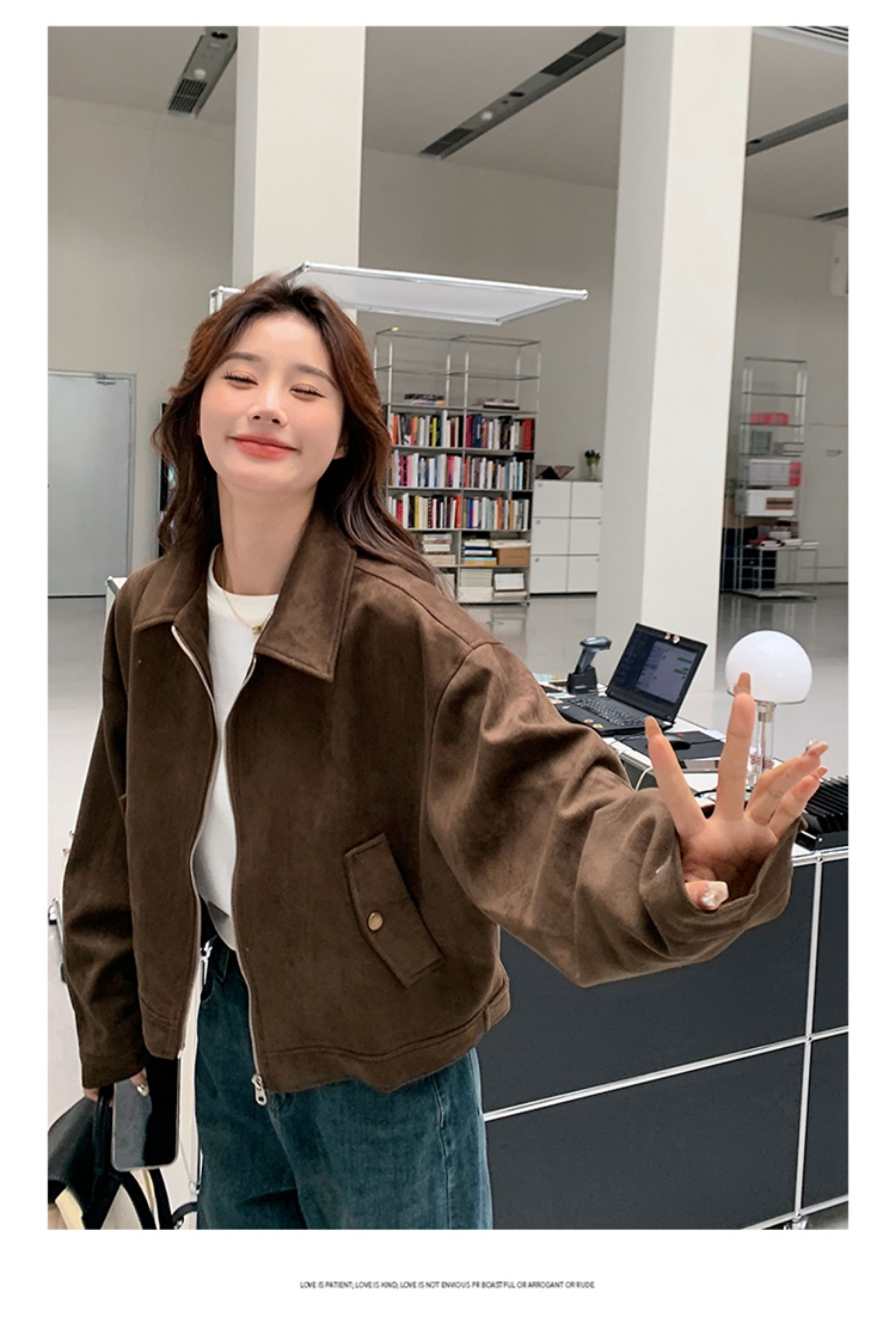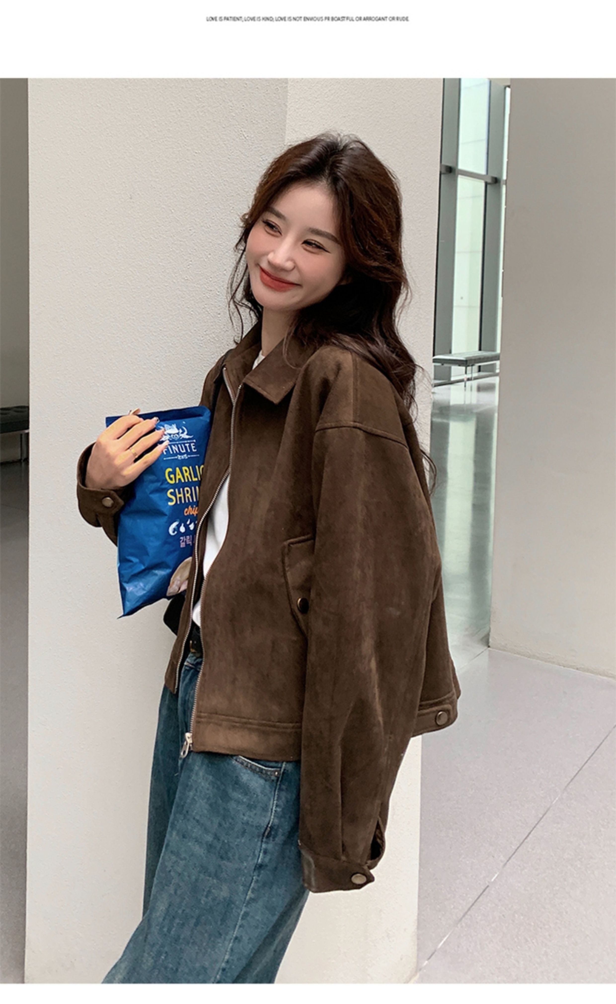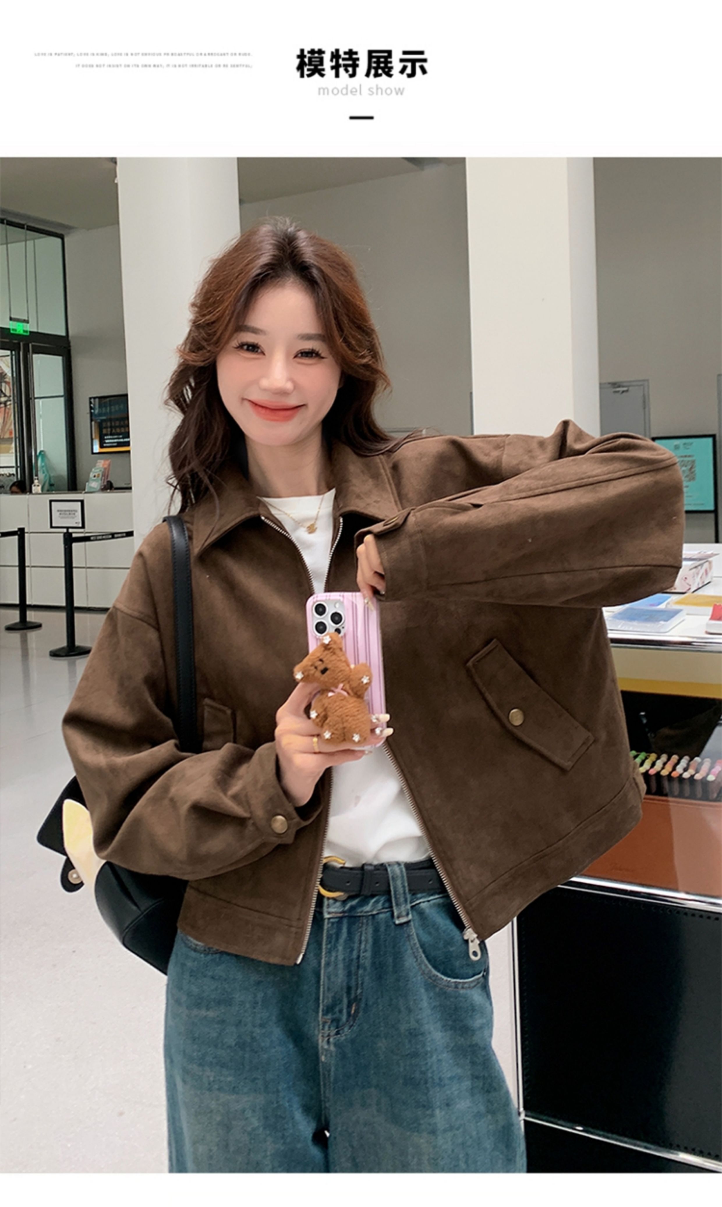 美拉德短款麂皮絨外套女春秋裝美式復古慵懶chic又酷又颯皮衣夾克
