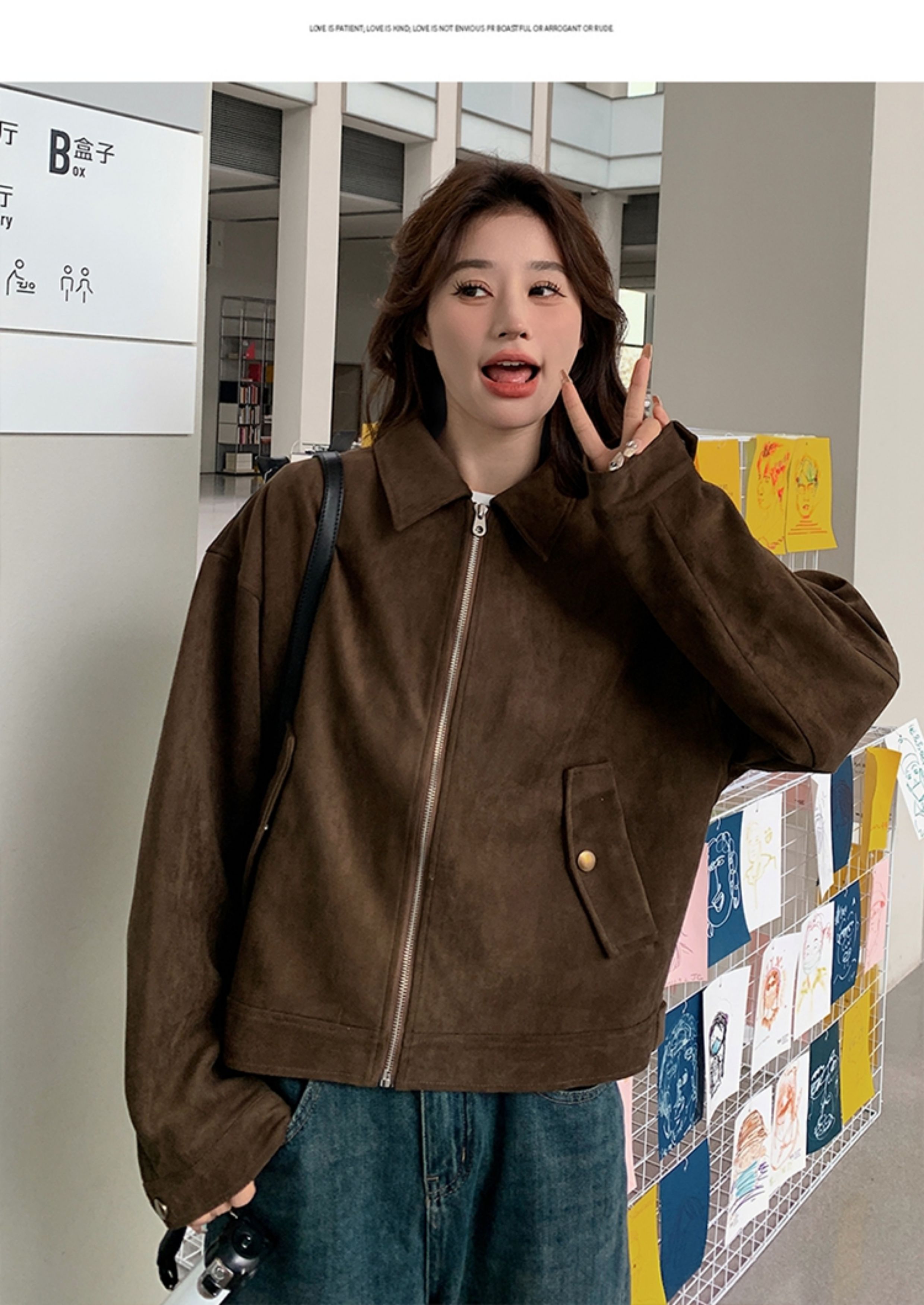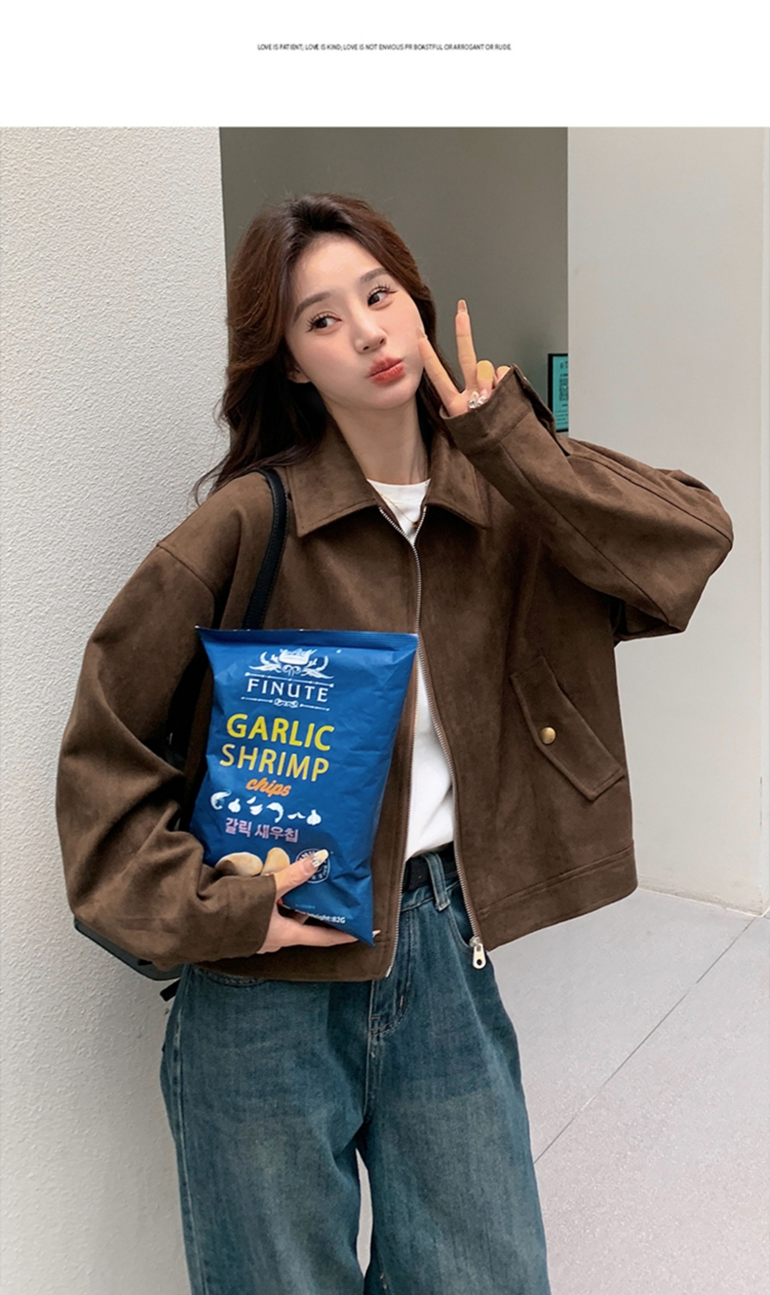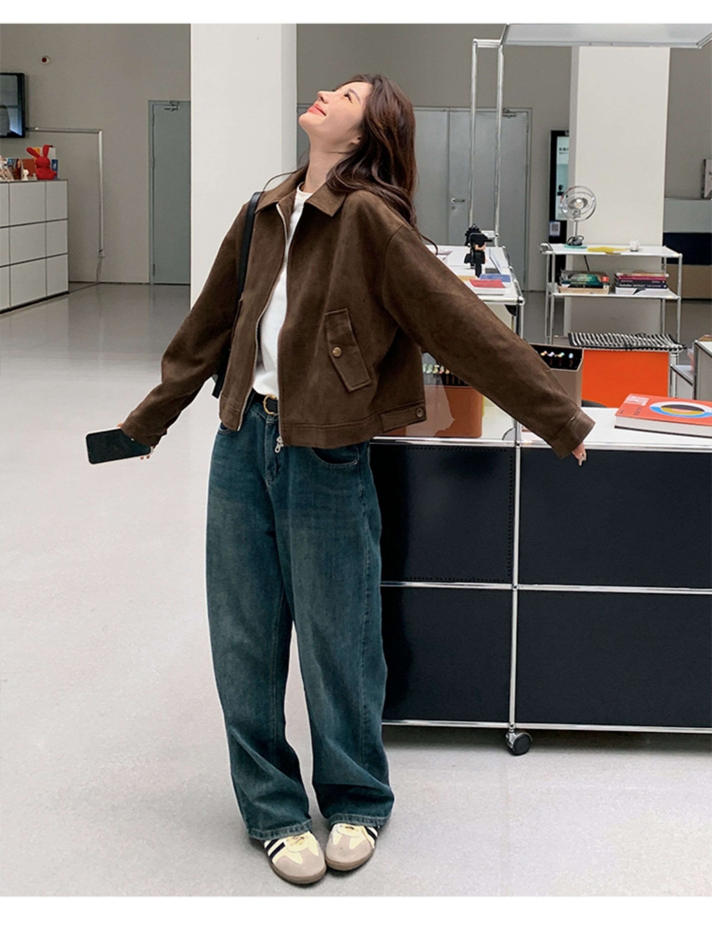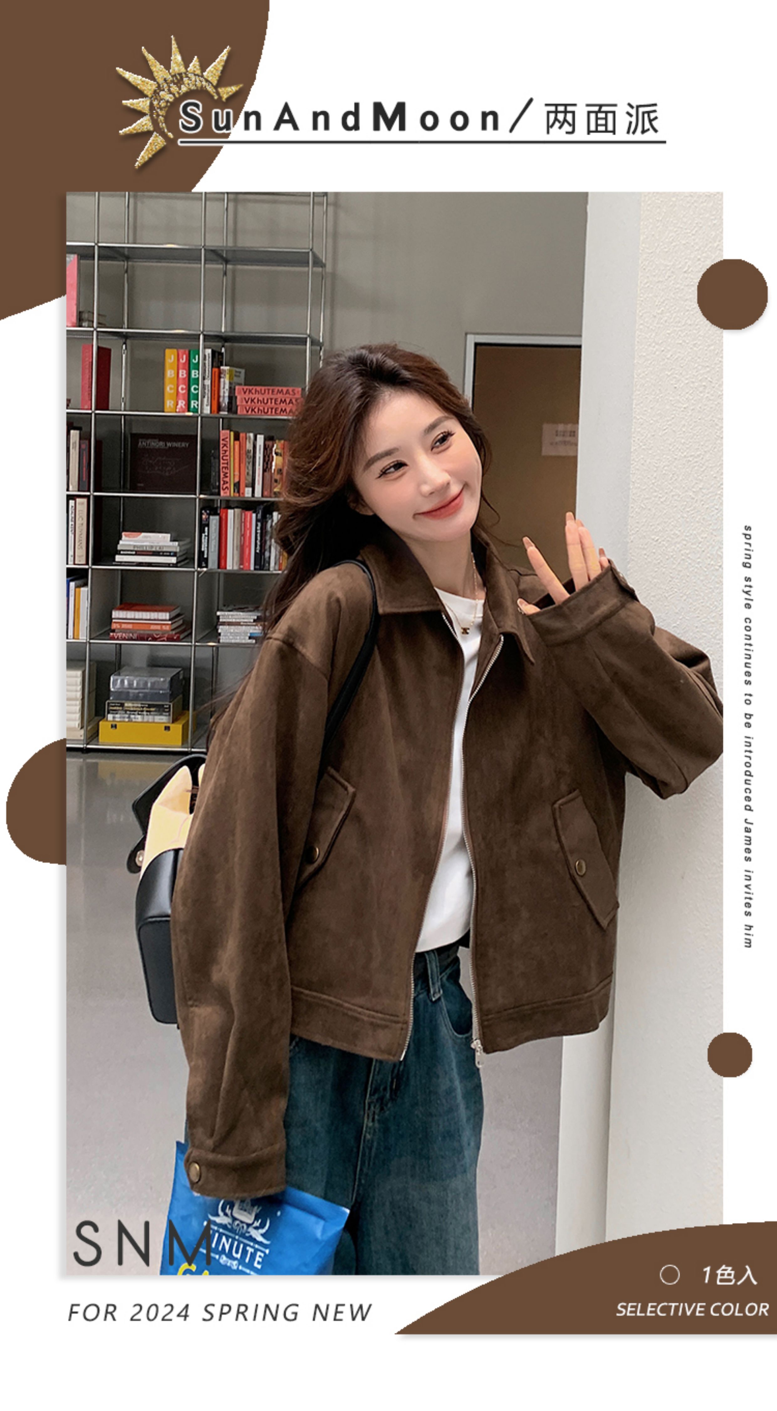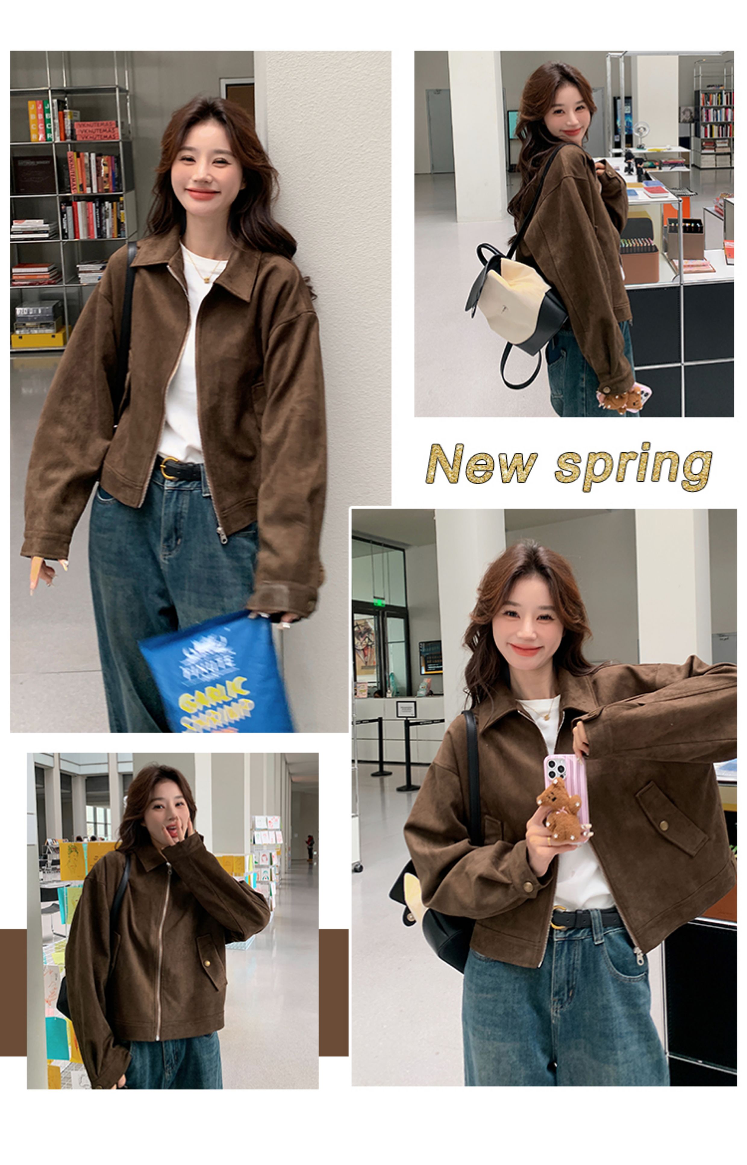 美拉德短款麂皮絨外套女春秋裝美式復古慵懶chic又酷又颯皮衣夾克