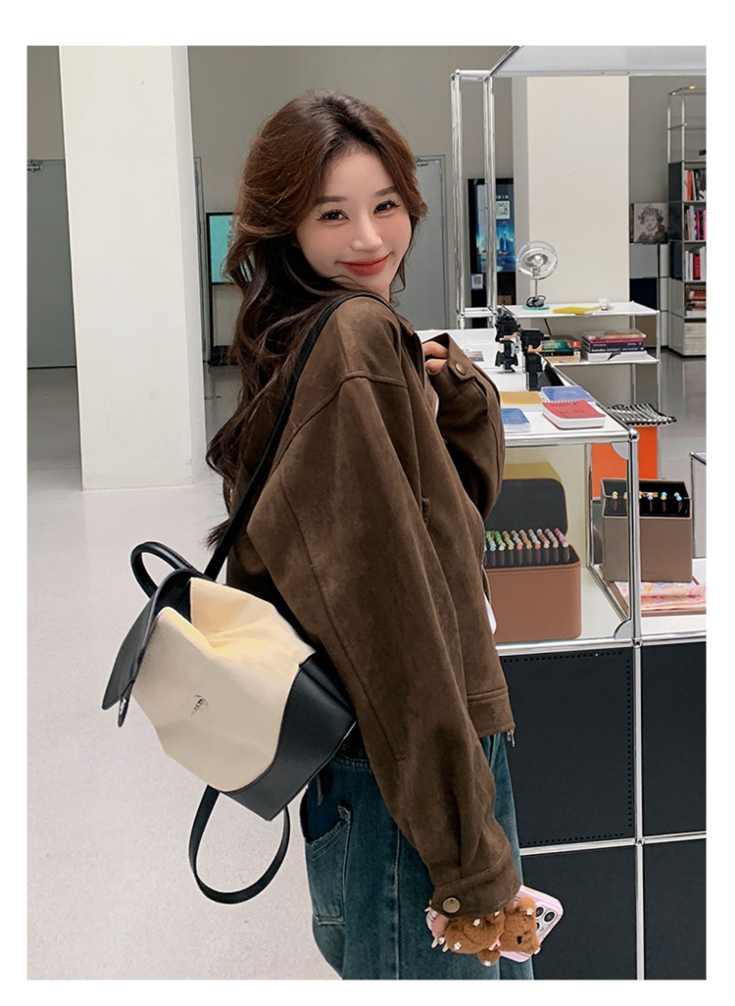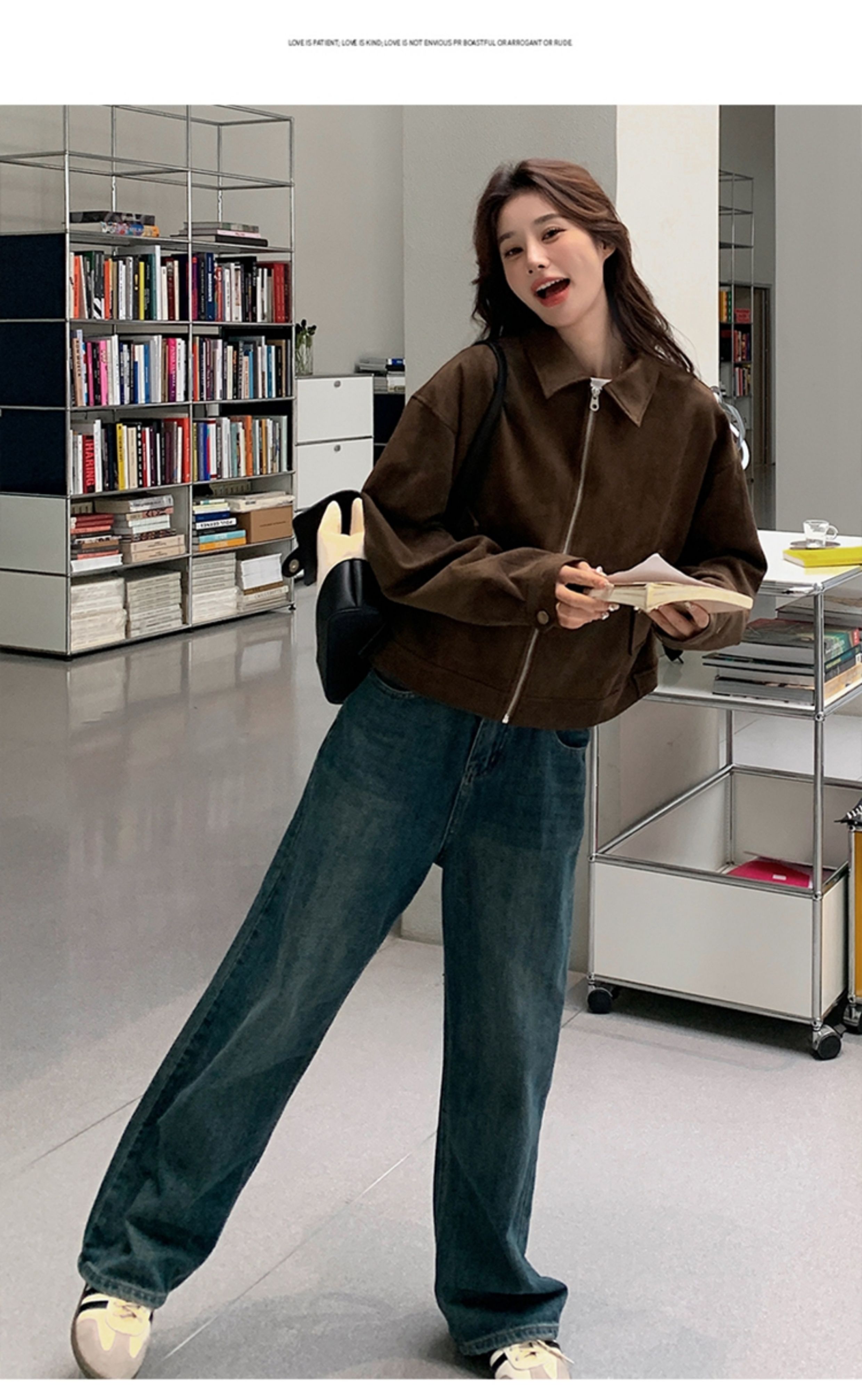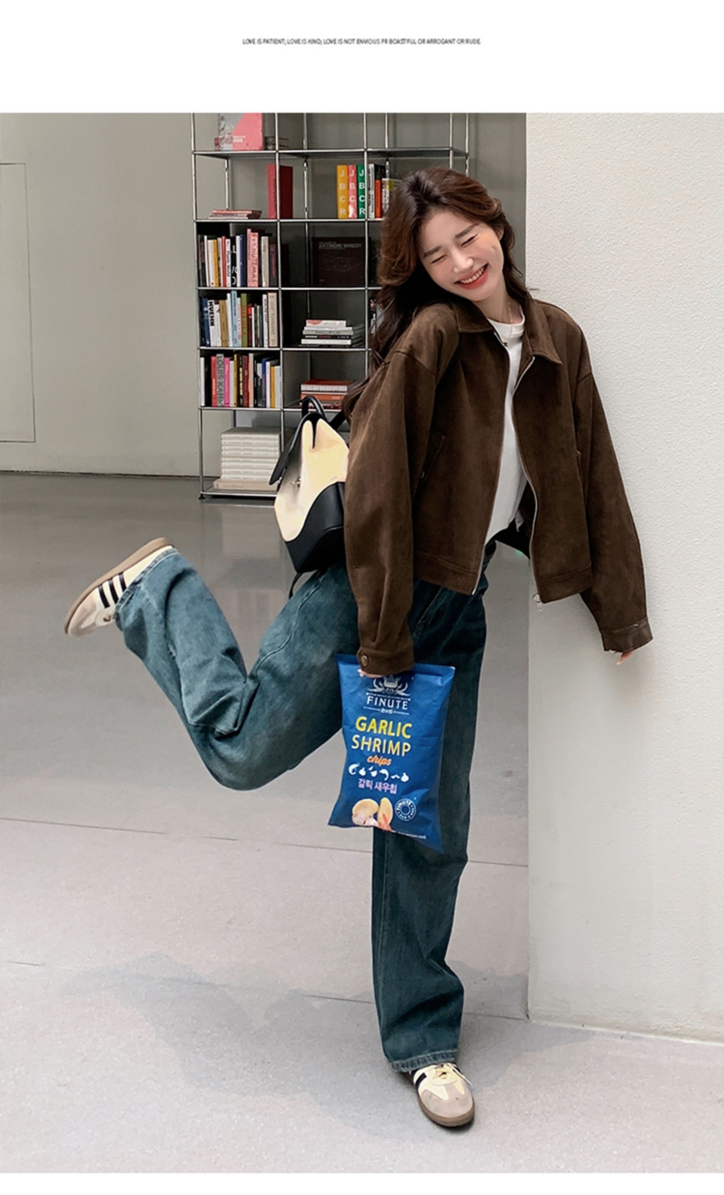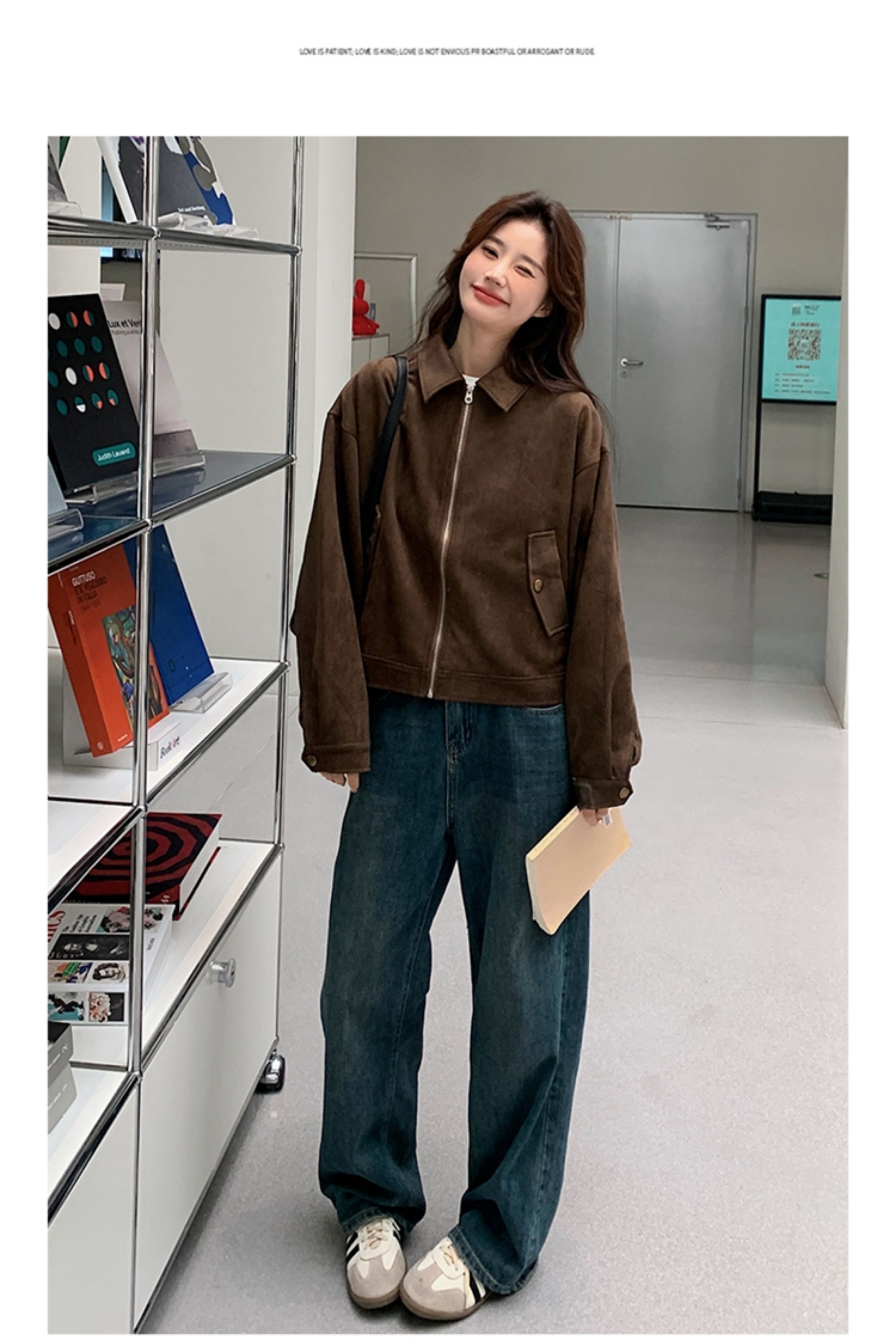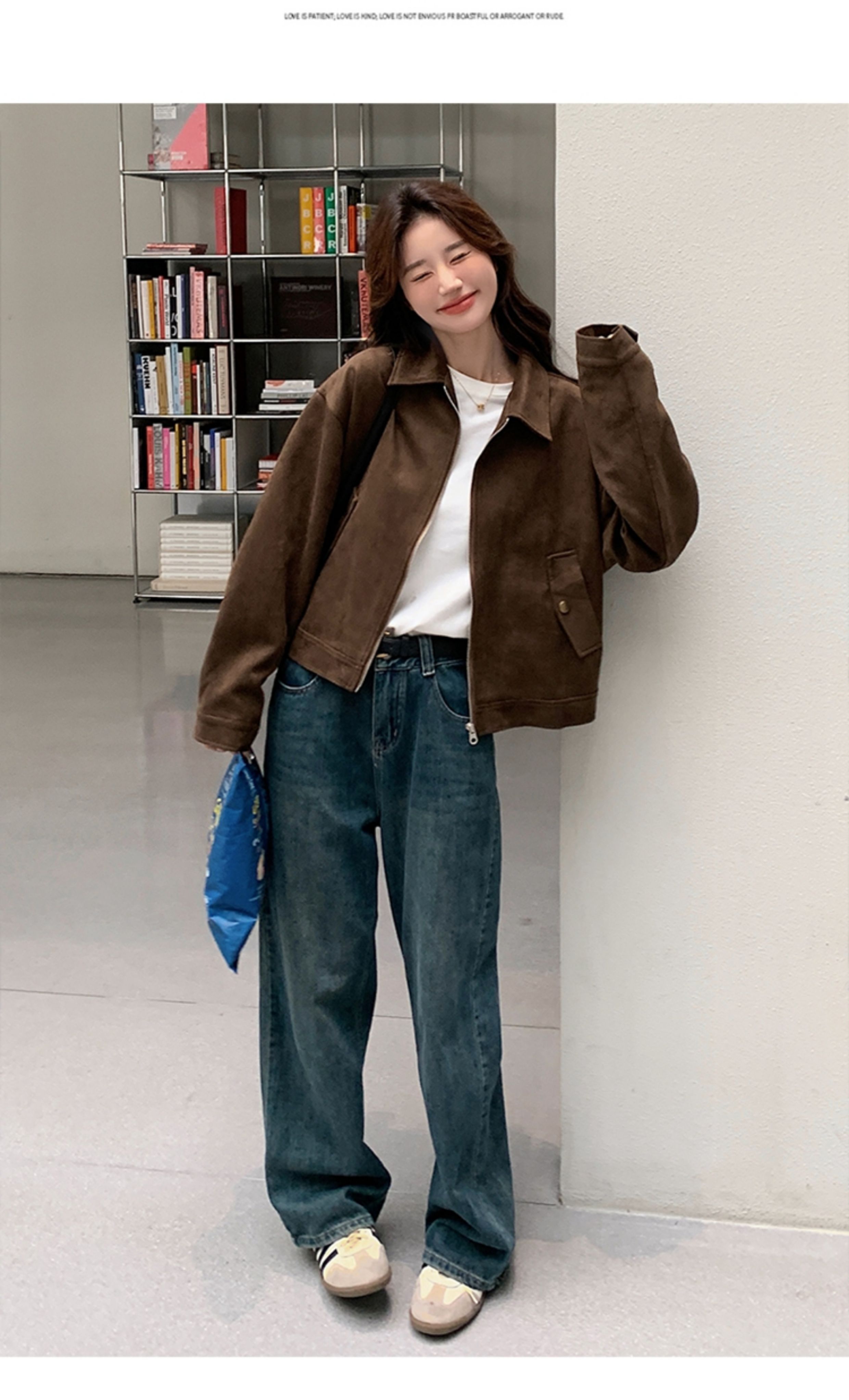 美拉德短款麂皮絨外套女春秋裝美式復古慵懶chic又酷又颯皮衣夾克