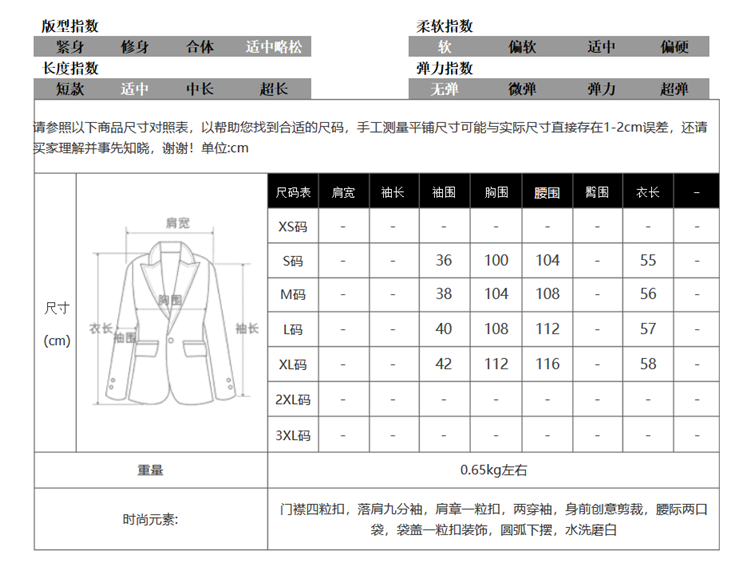 | 領口設計 | 西裝領 |