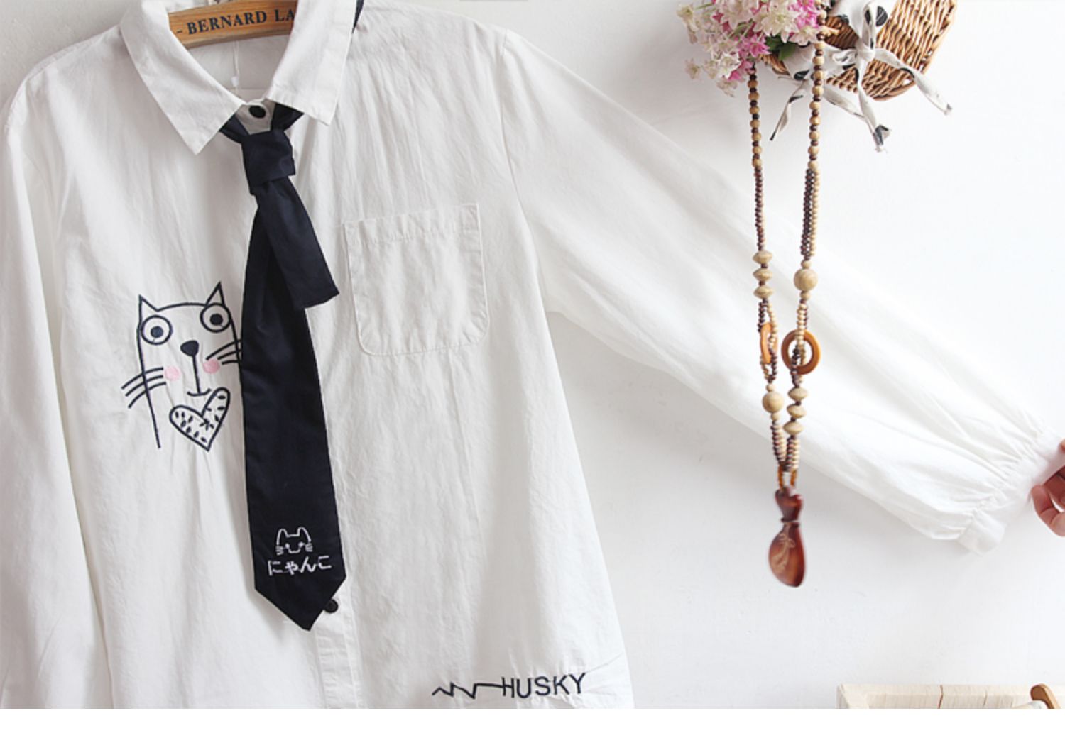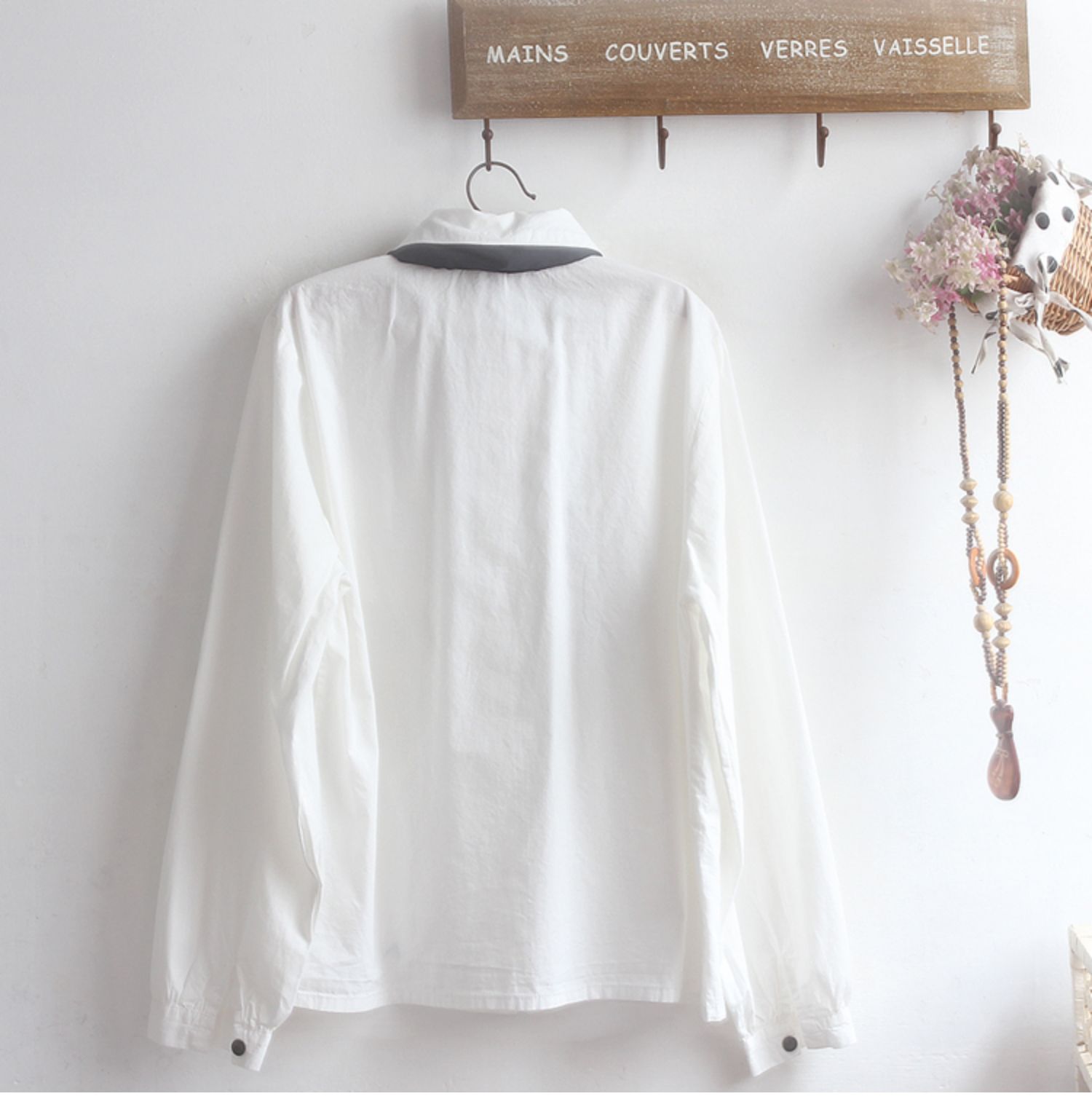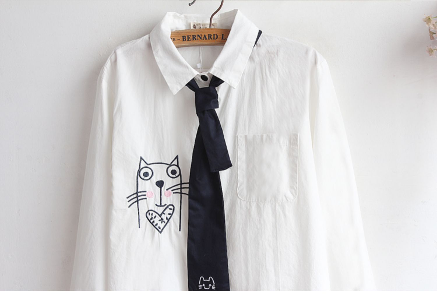 男女同款可愛拼色喇叭袖鬭篷春秋外套表情貓口袋印花寬松減齡開衫