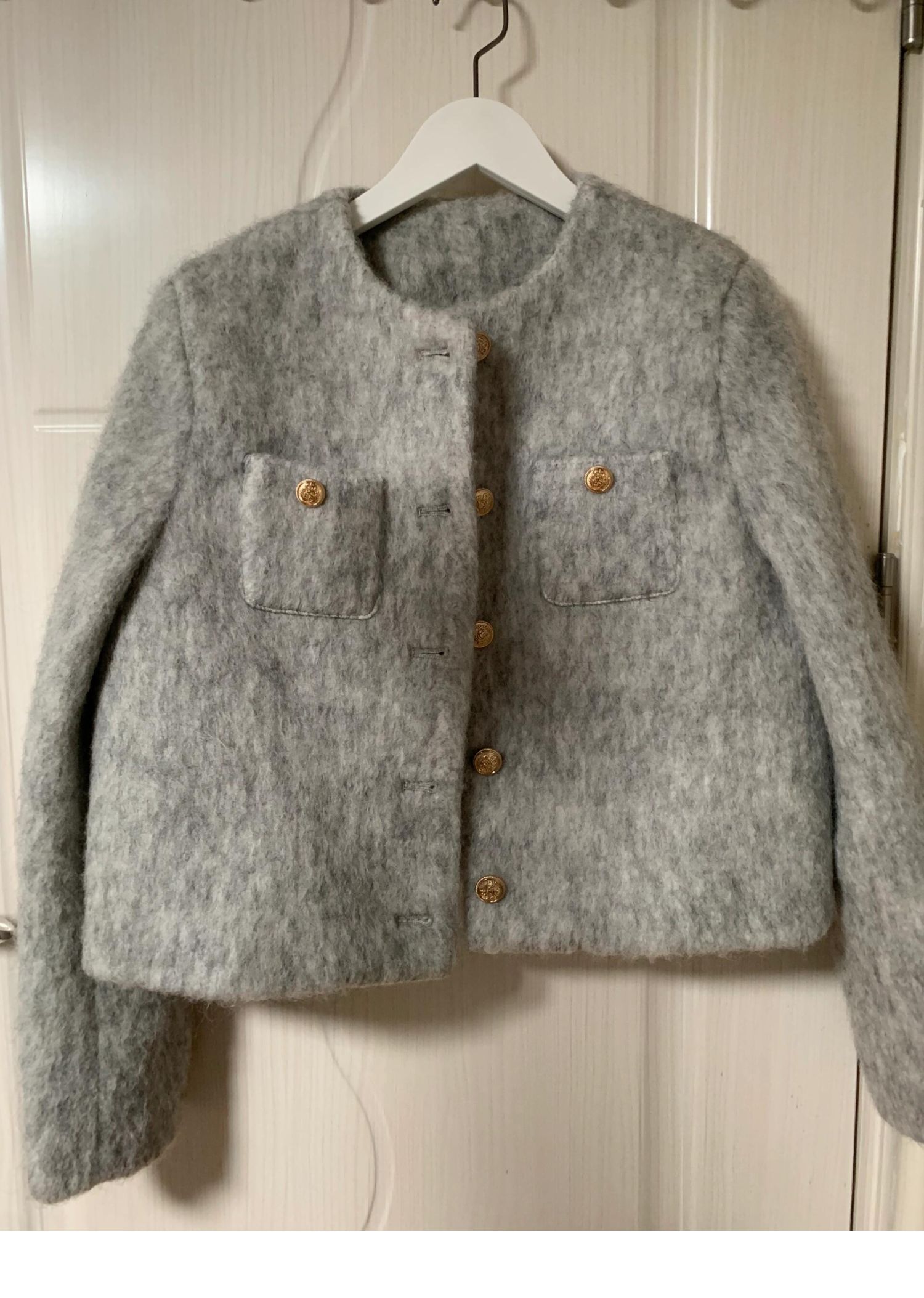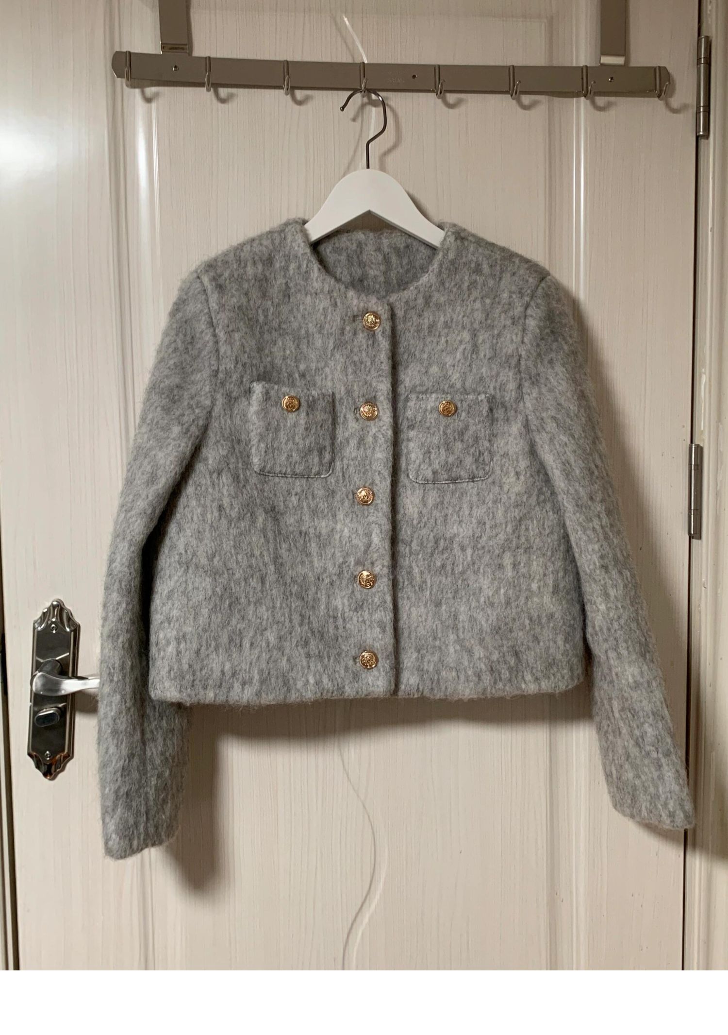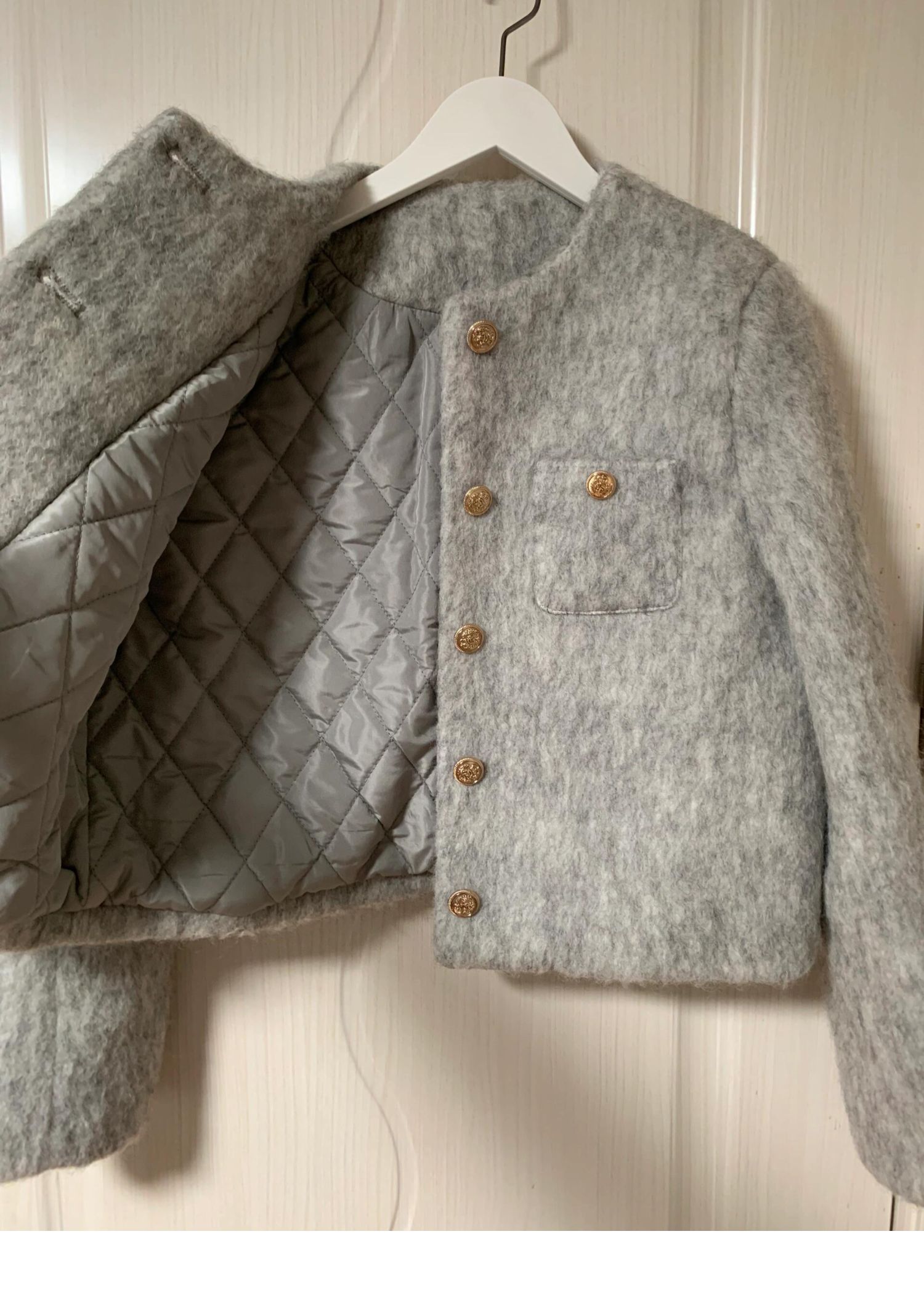 灰色夾棉加厚小香風毛呢外套女2025新款秋冬小個子呢子短款羽絨服