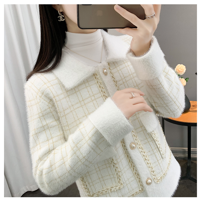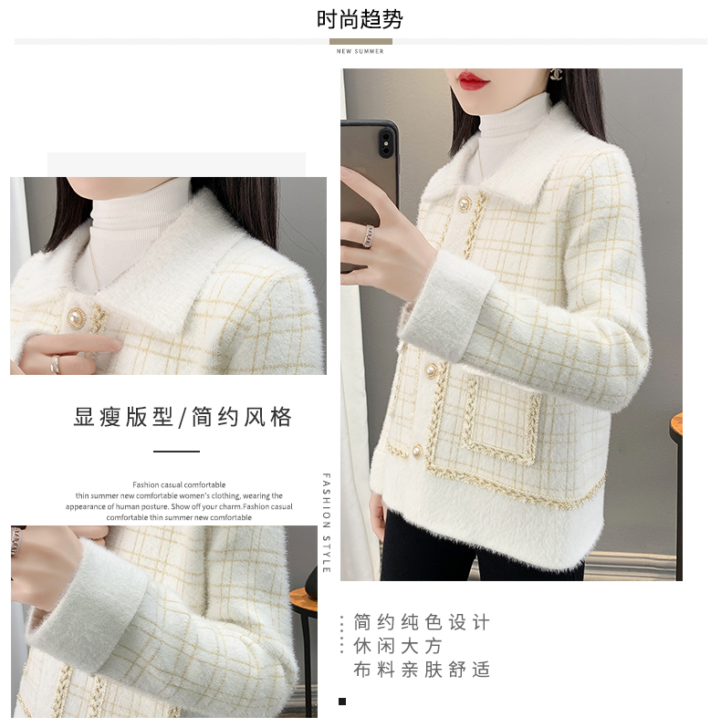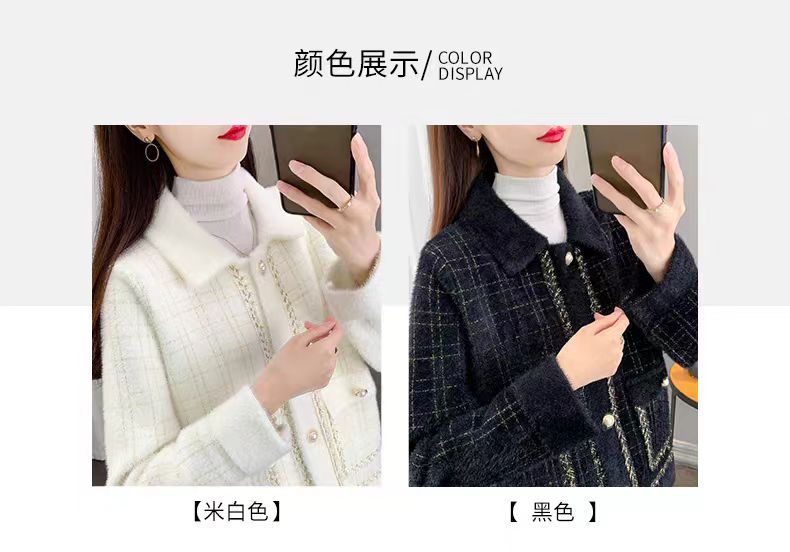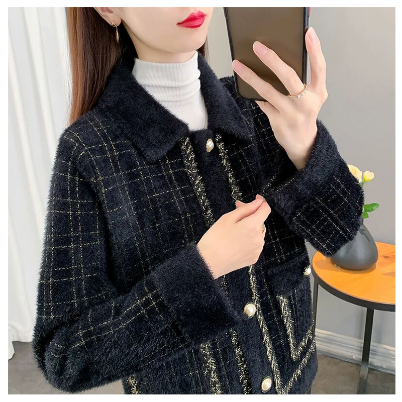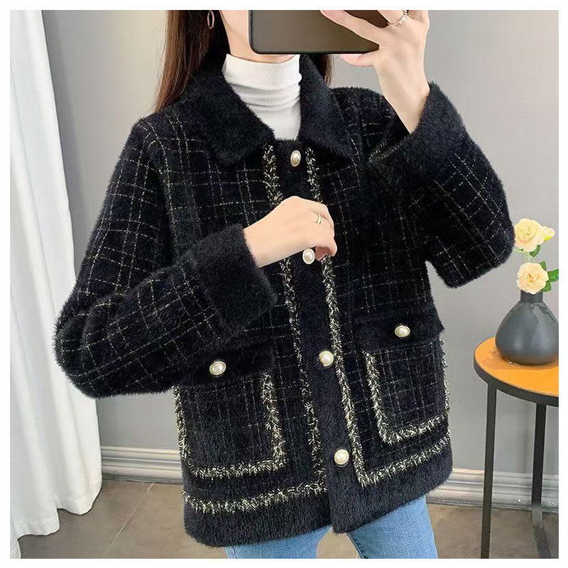 秋冬季水貂絨外套2025新款女裝春秋韓版寬松翻領小衫毛絨格子開衫