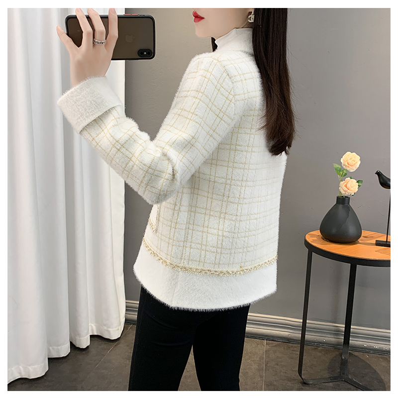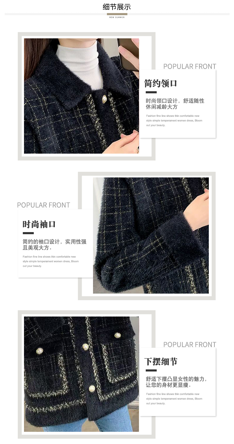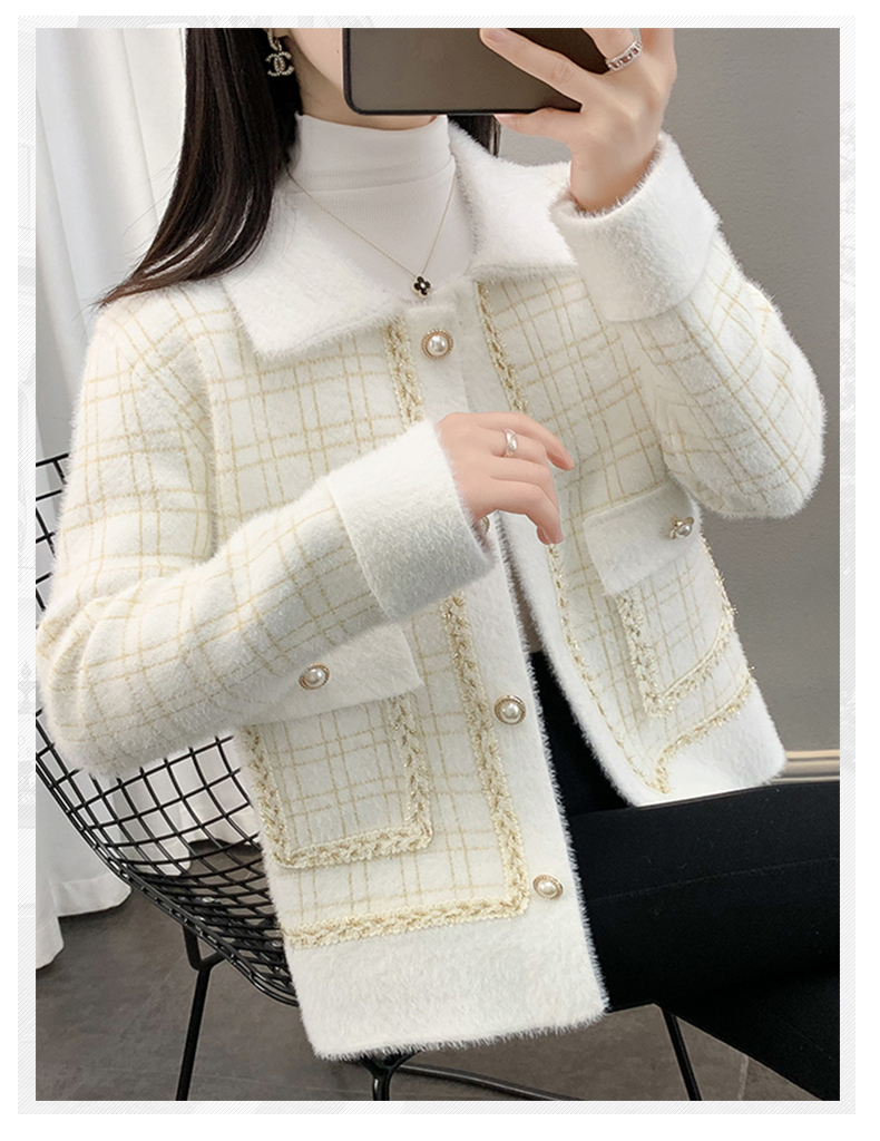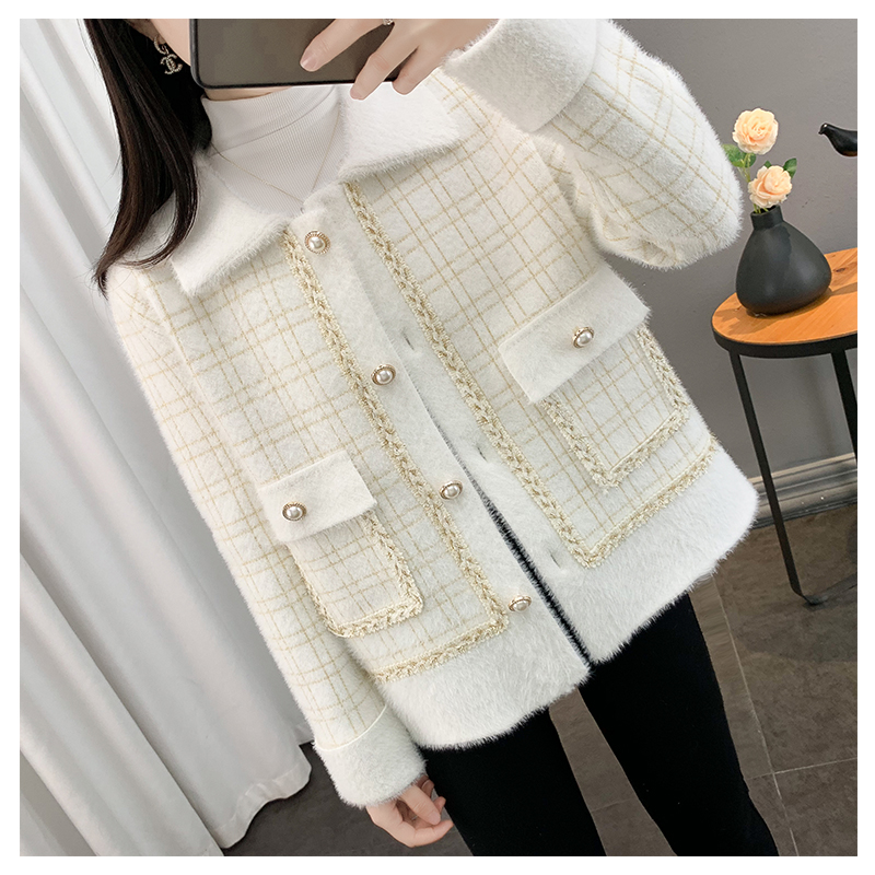 秋冬季水貂絨外套2025新款女裝春秋韓版寬松翻領小衫毛絨格子開衫