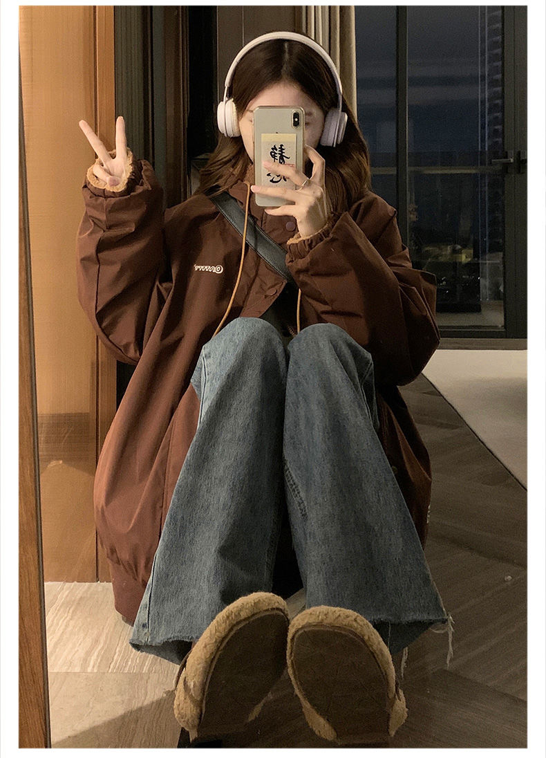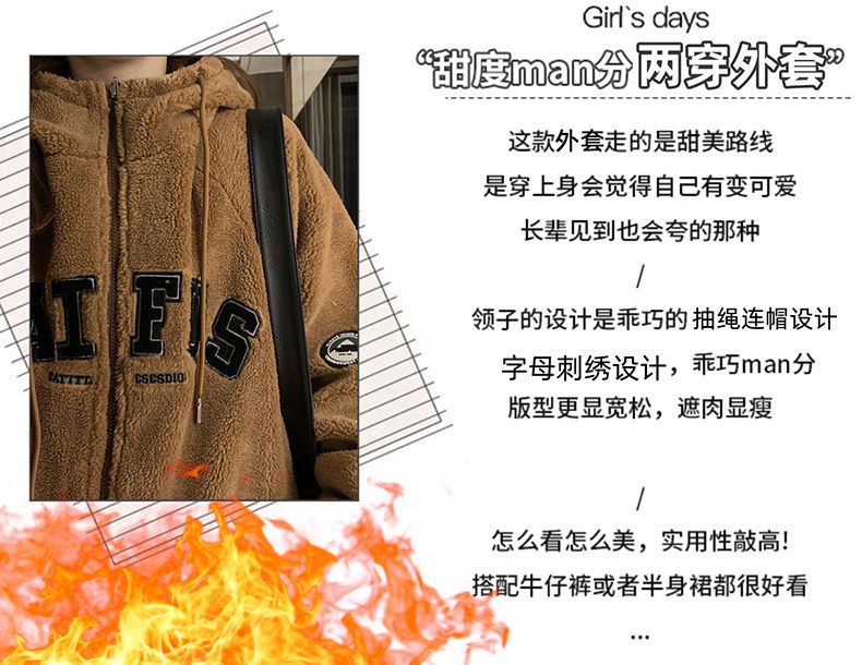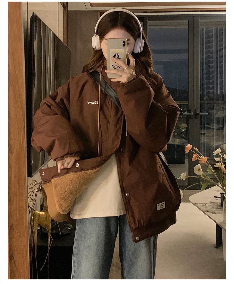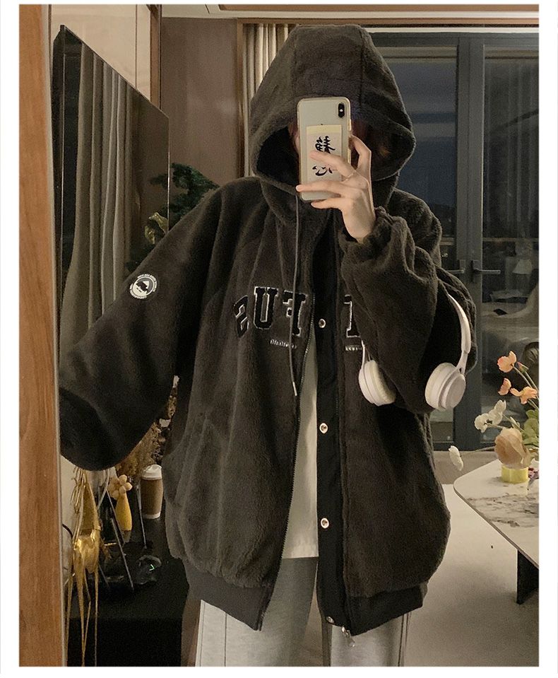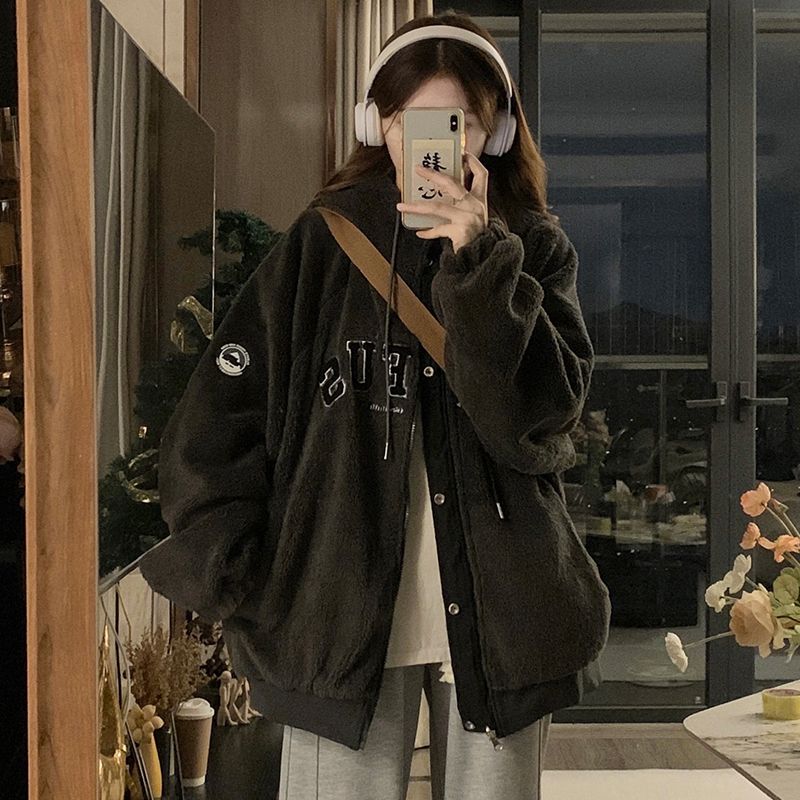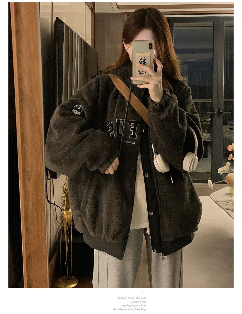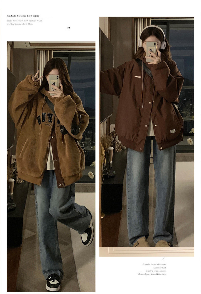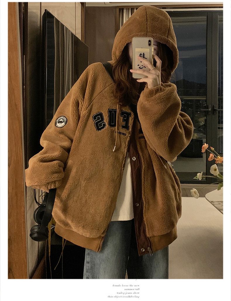 雙面穿棒球服羊羔毛外套女2025冬季新款加絨美式復古連帽夾克外套