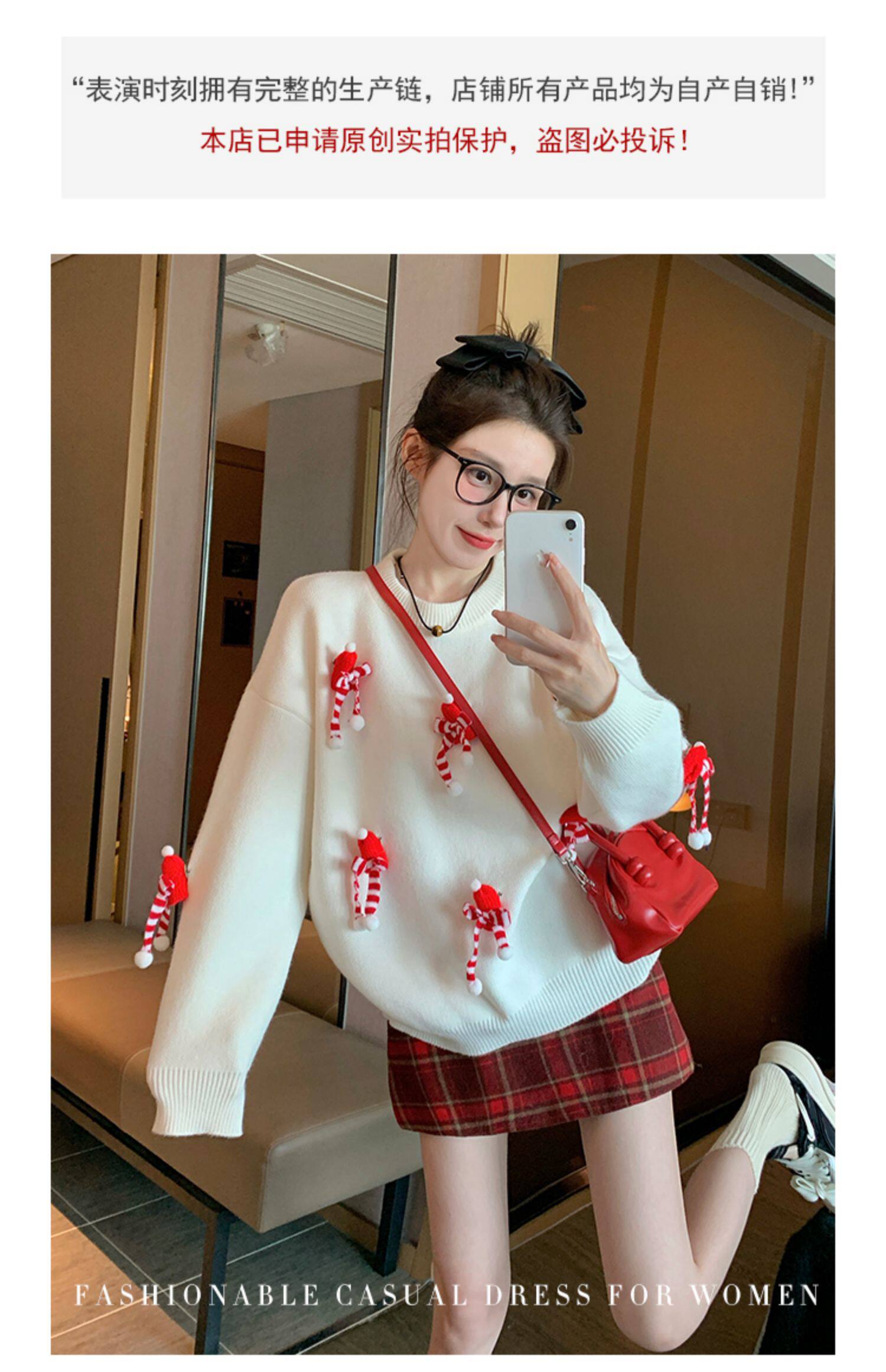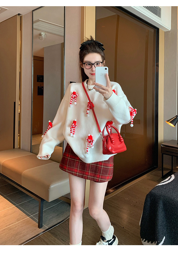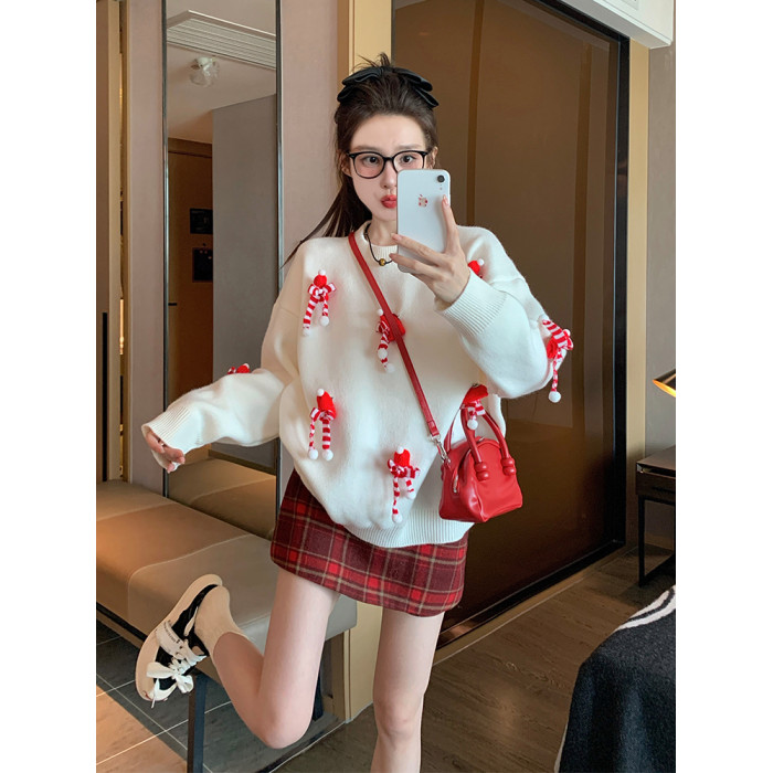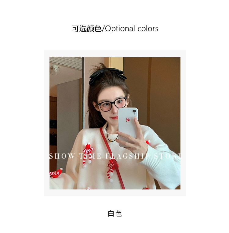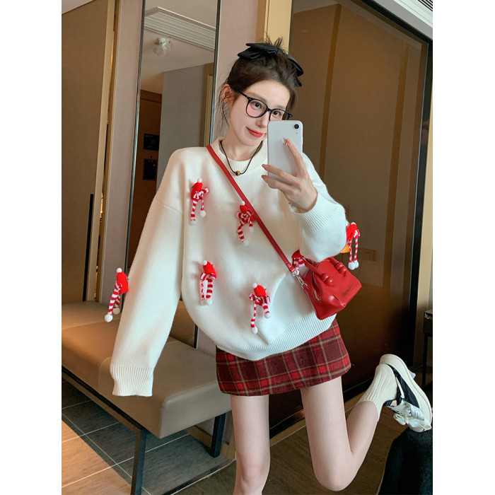 白色套頭毛衣女2025新款秋冬季慵嬾高級感加厚打底立體聖誕針織衫