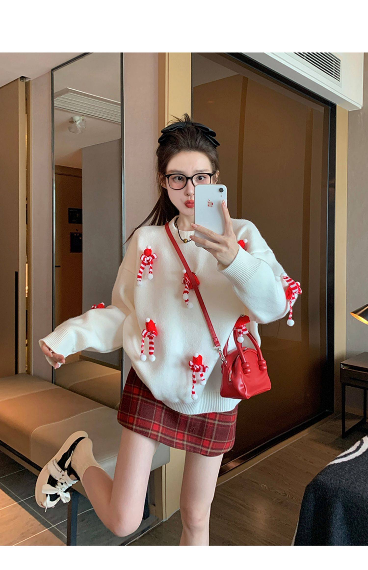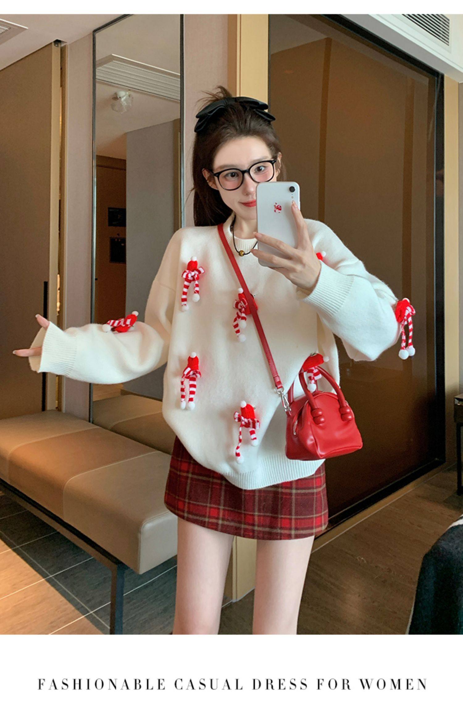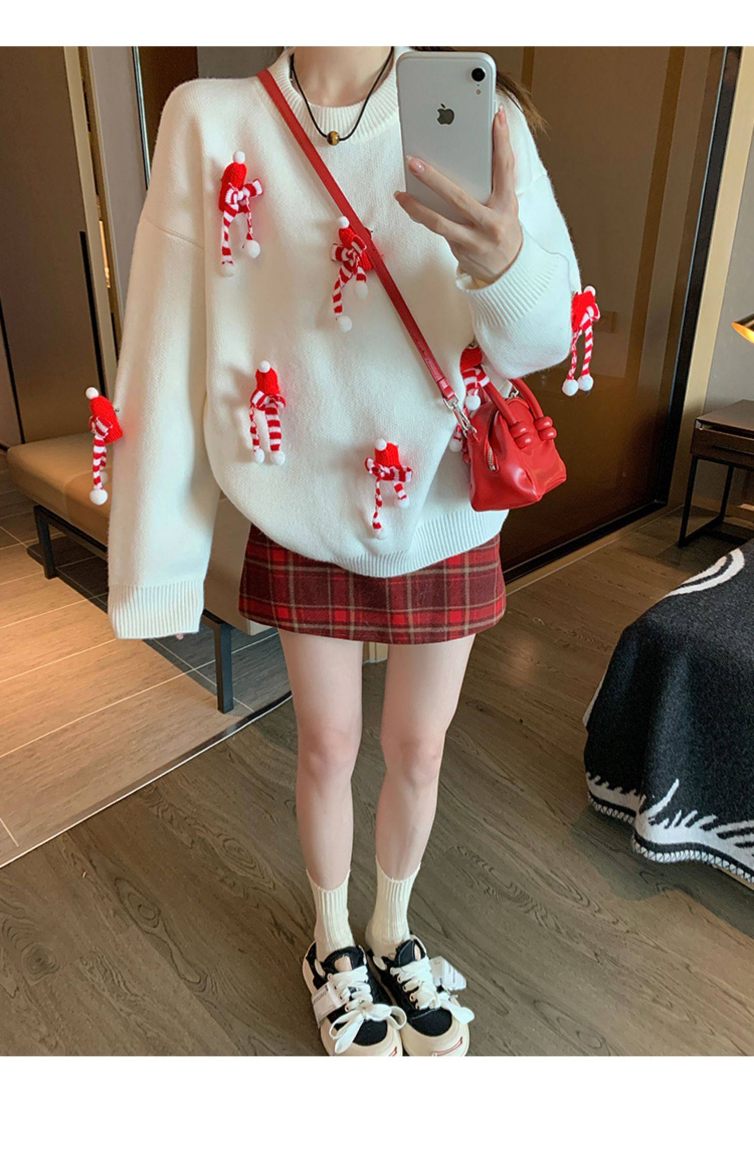 白色套頭毛衣女2025新款秋冬季慵嬾高級感加厚打底立體聖誕針織衫