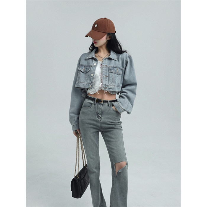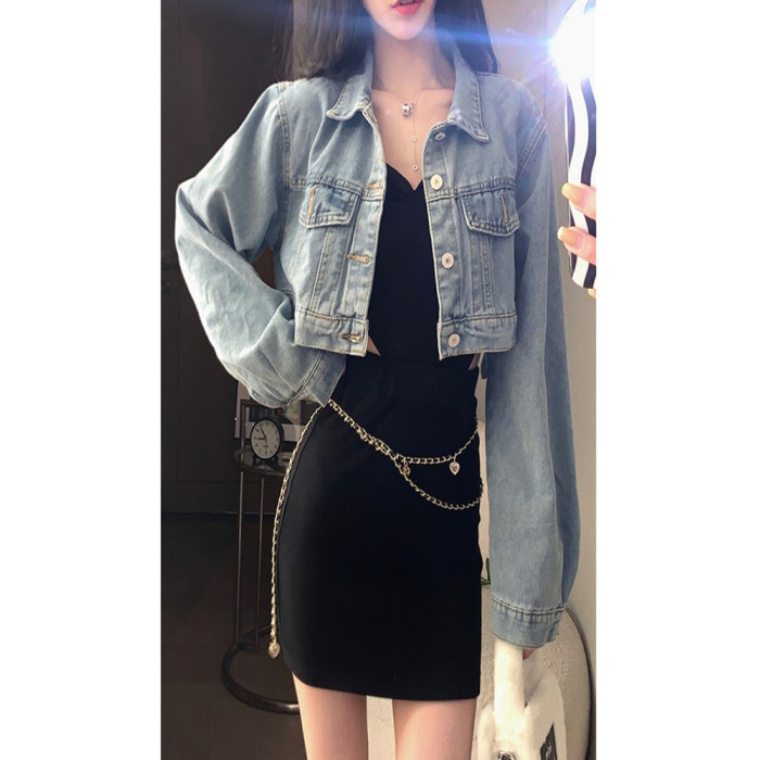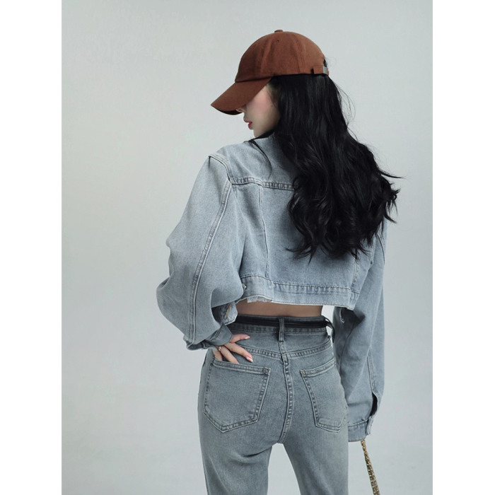 小個子辣妹短款牛仔外套女2025春秋設計感小衆寬松百搭藍色牛仔衣