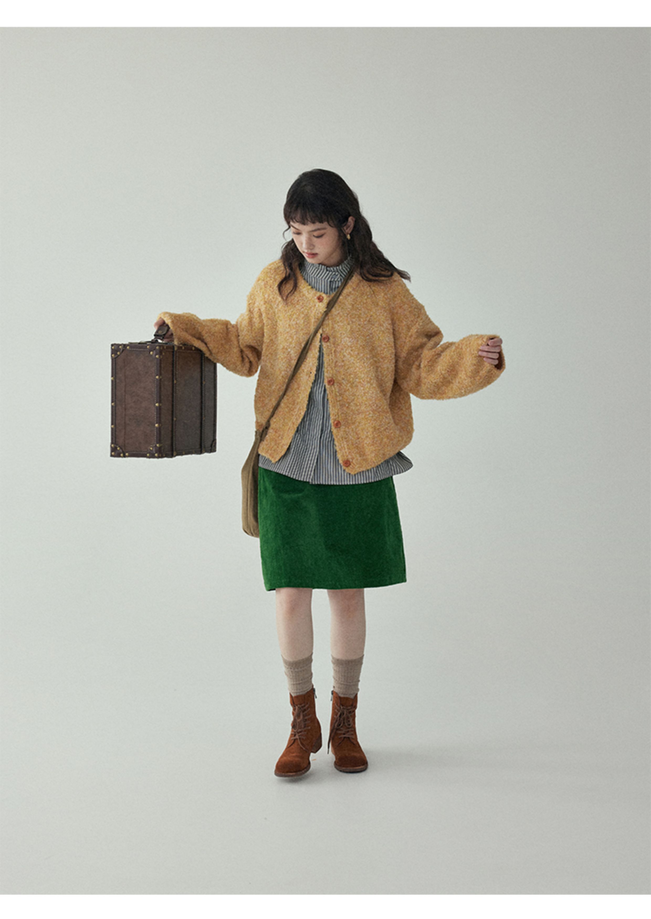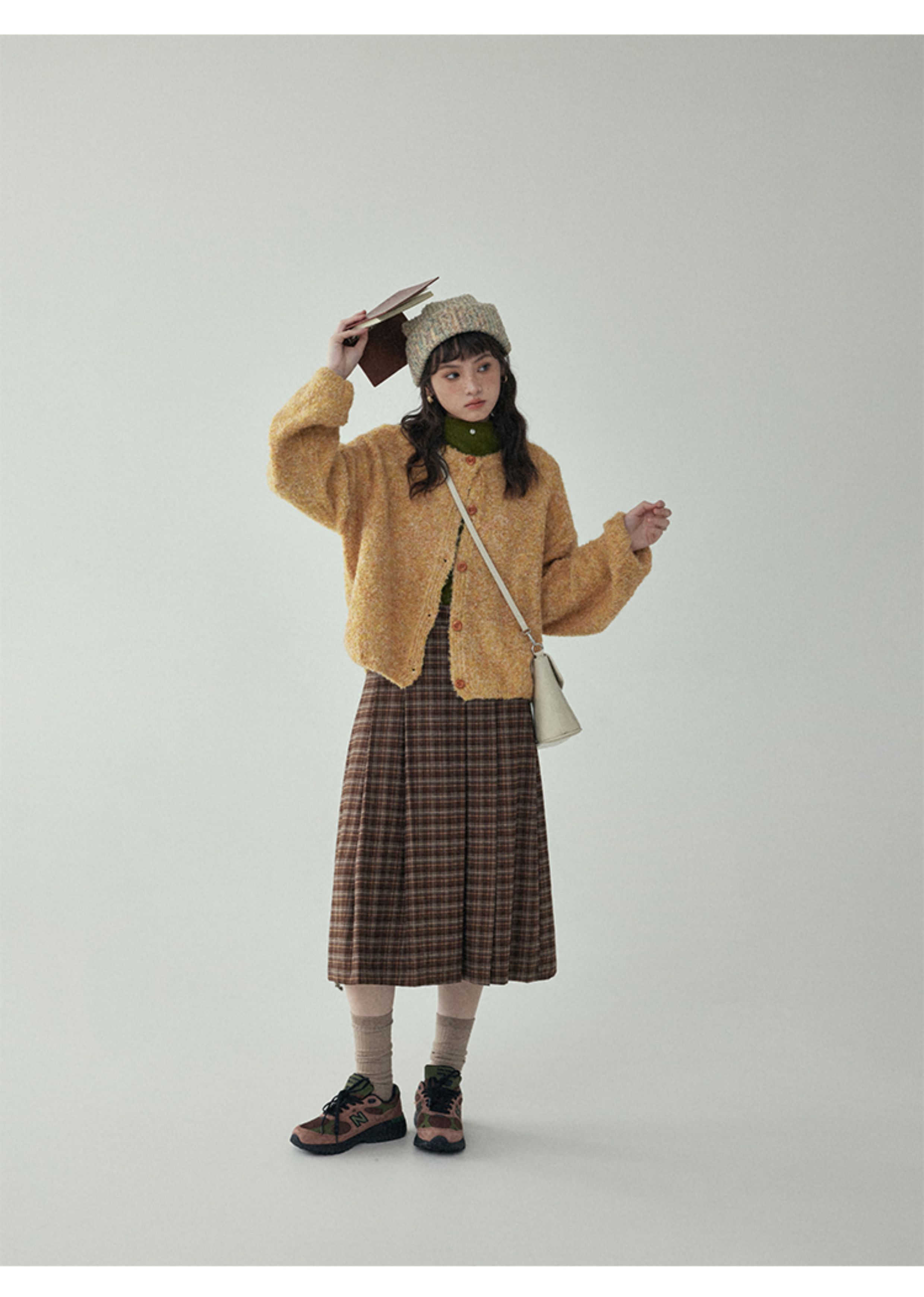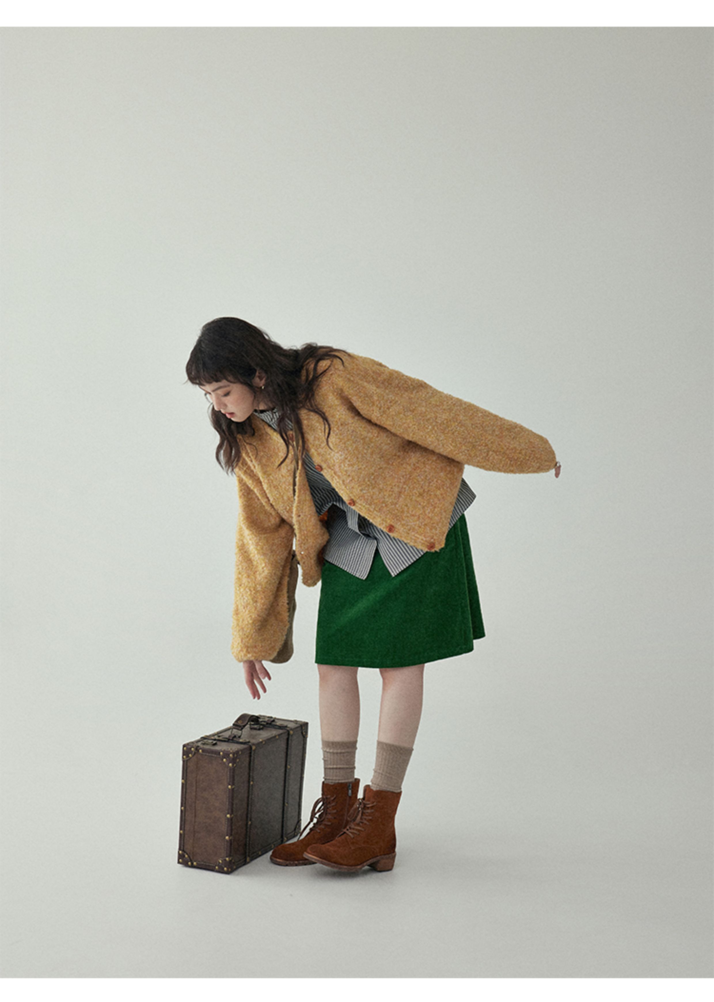 「北島AMUU」黃色短款花雜圈圈針織開衫女秋冬羊毛毛衣外套上衣