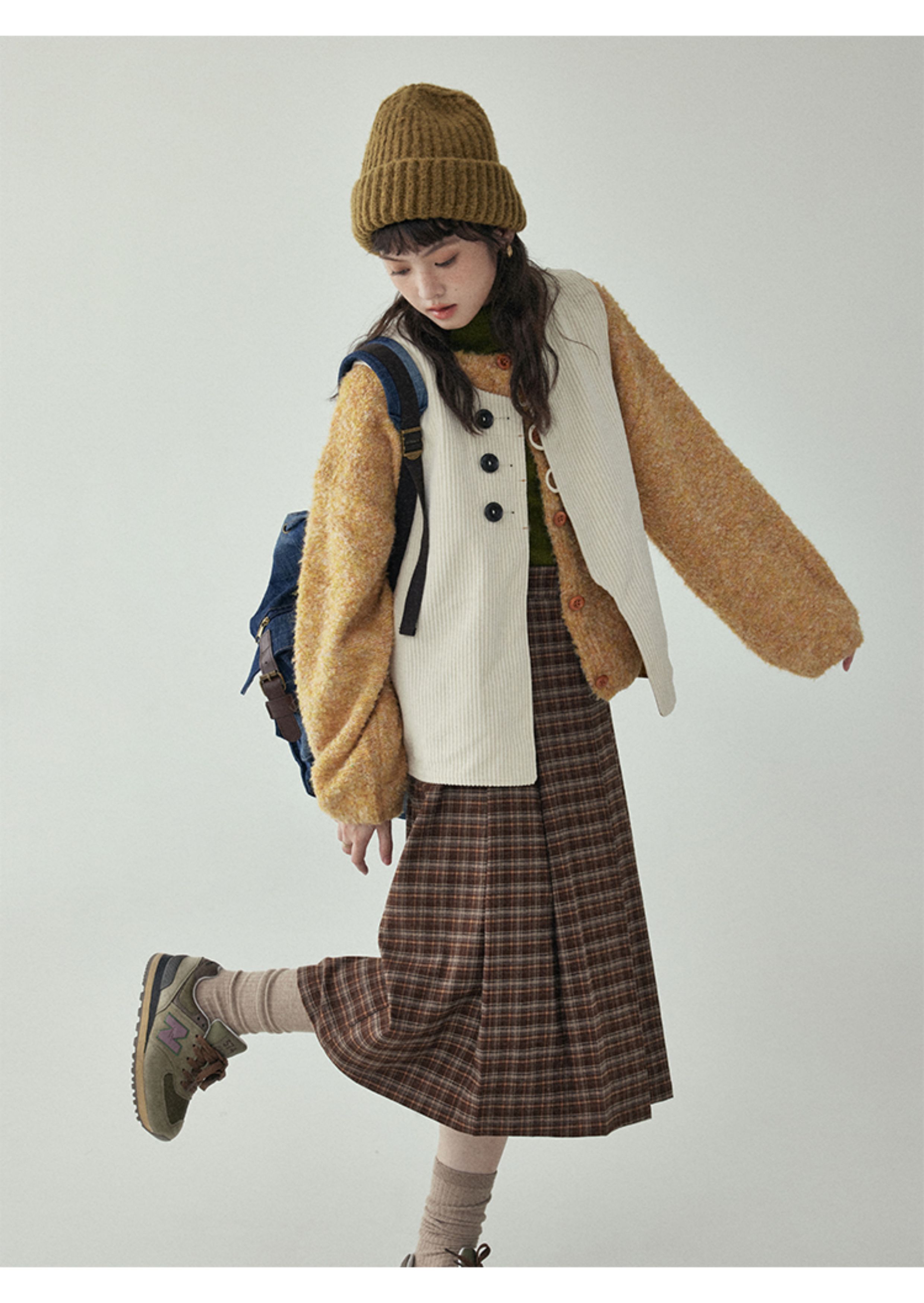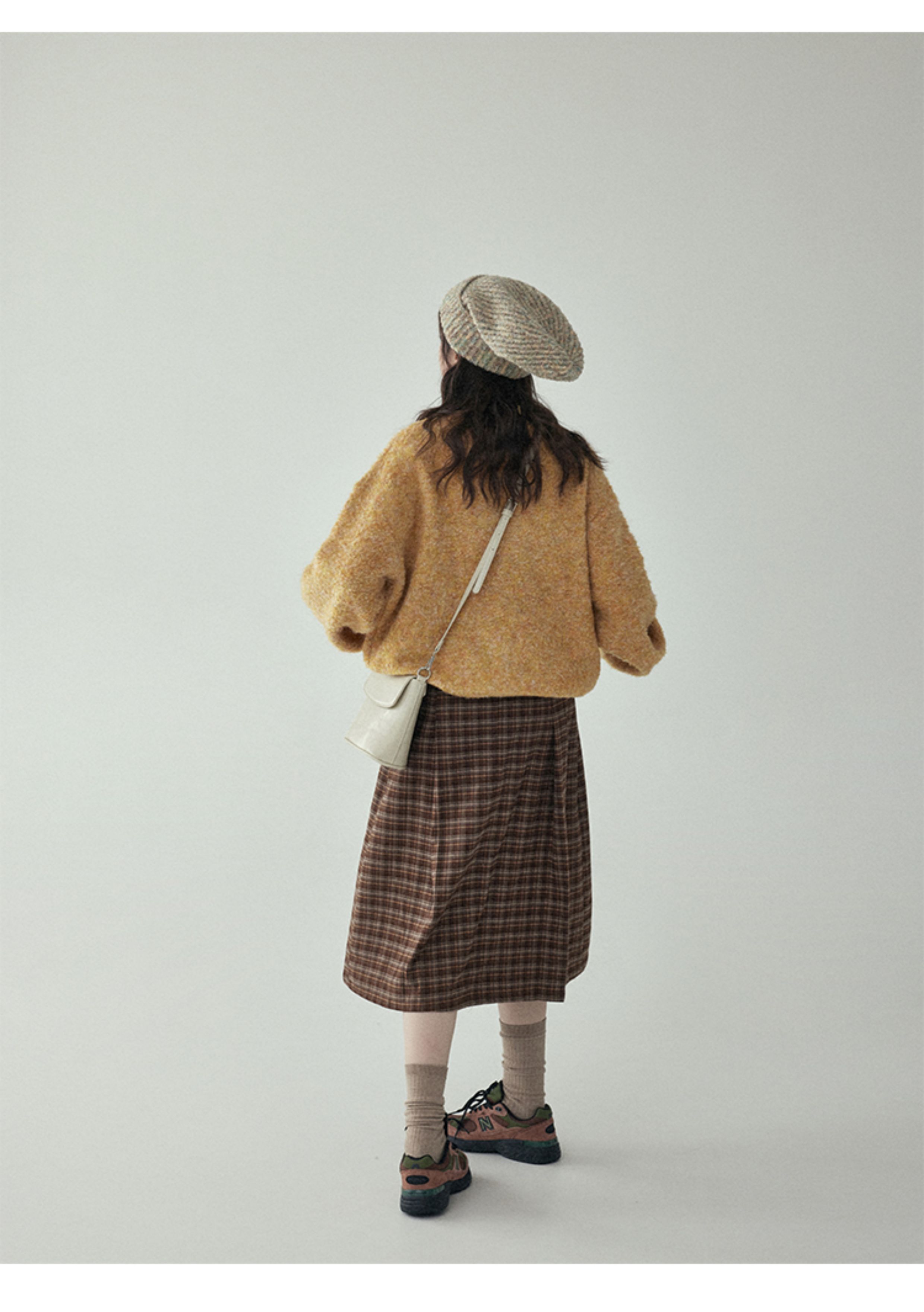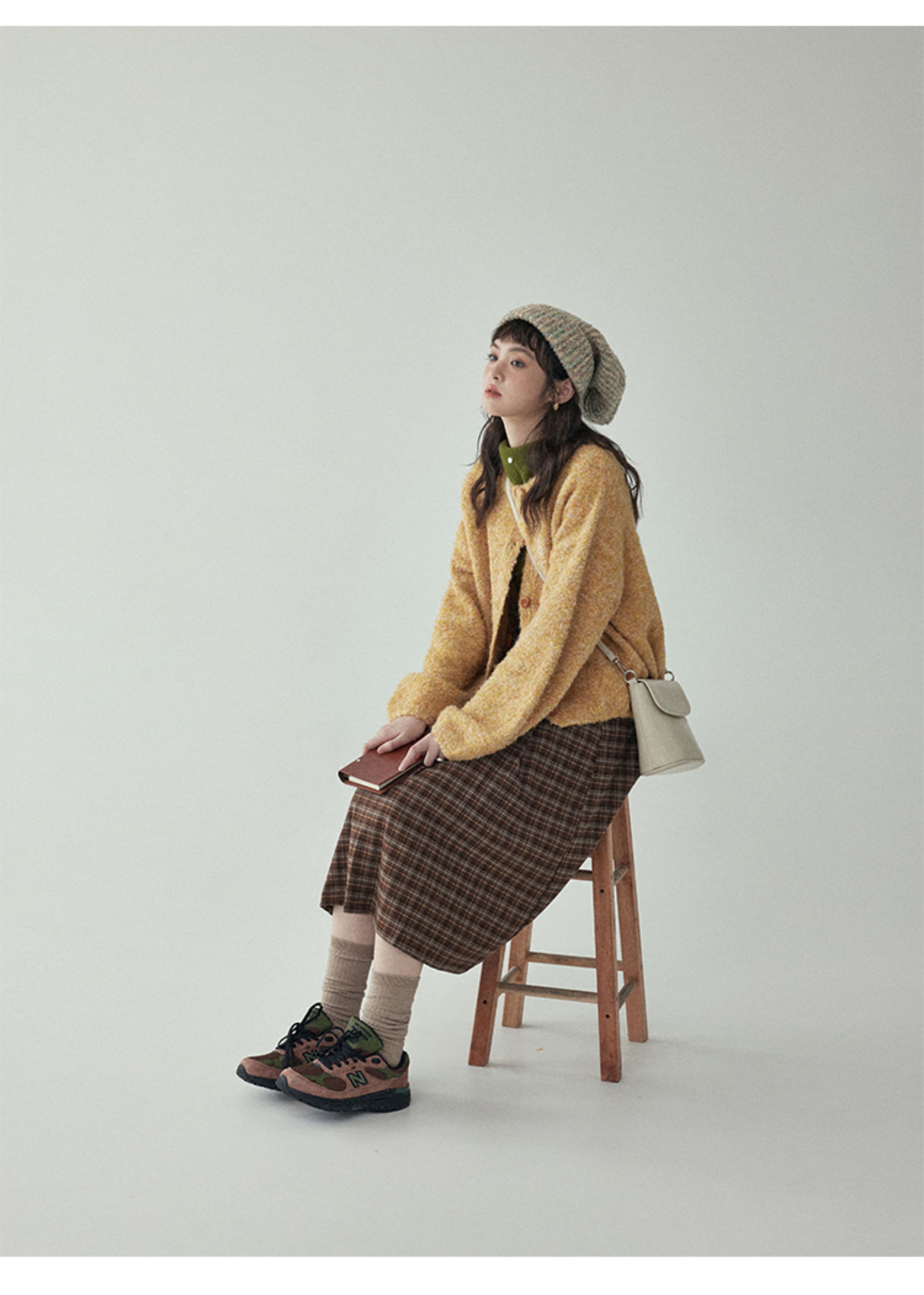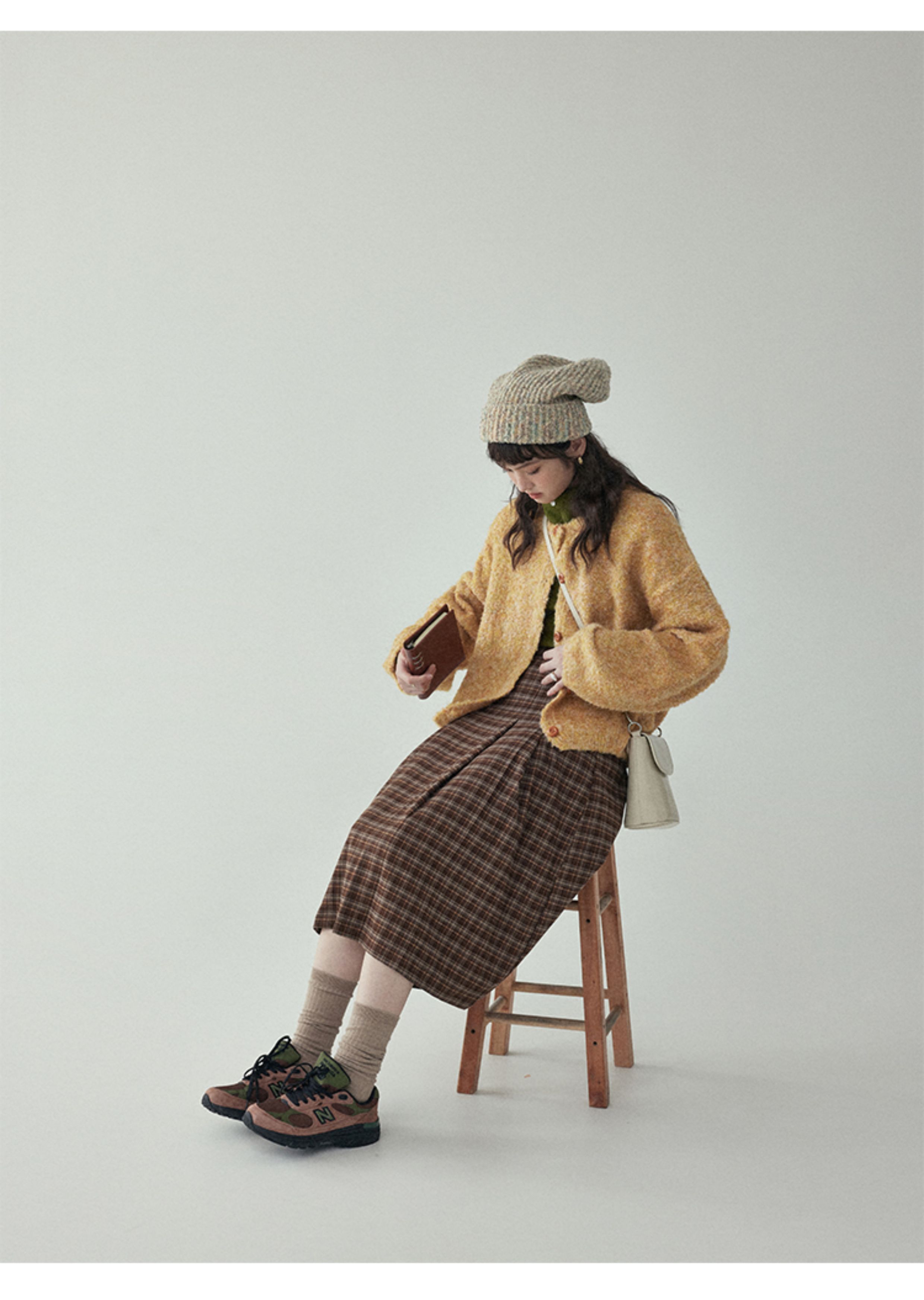 「北島AMUU」黃色短款花雜圈圈針織開衫女秋冬羊毛毛衣外套上衣