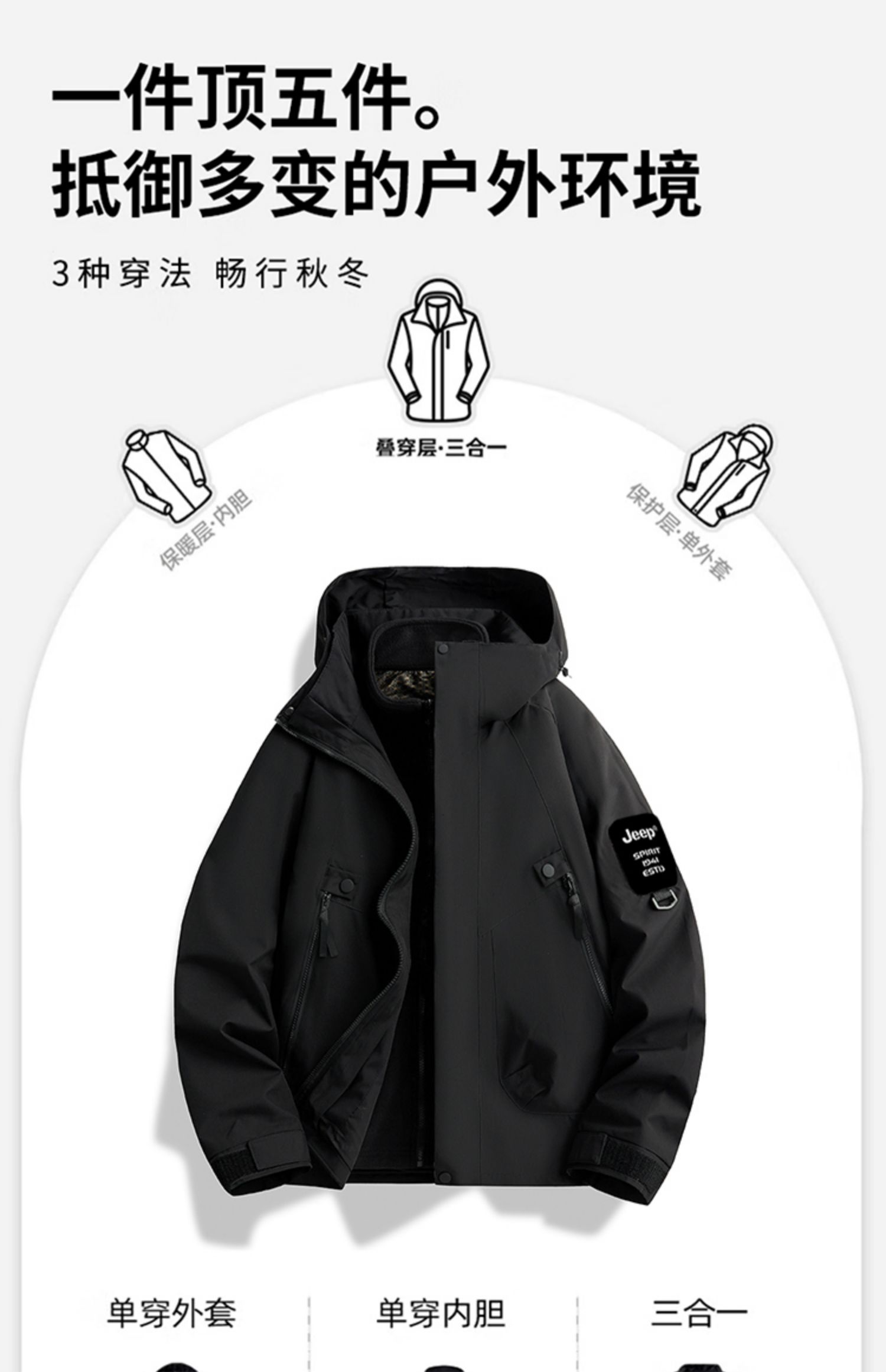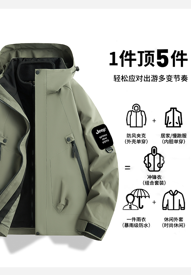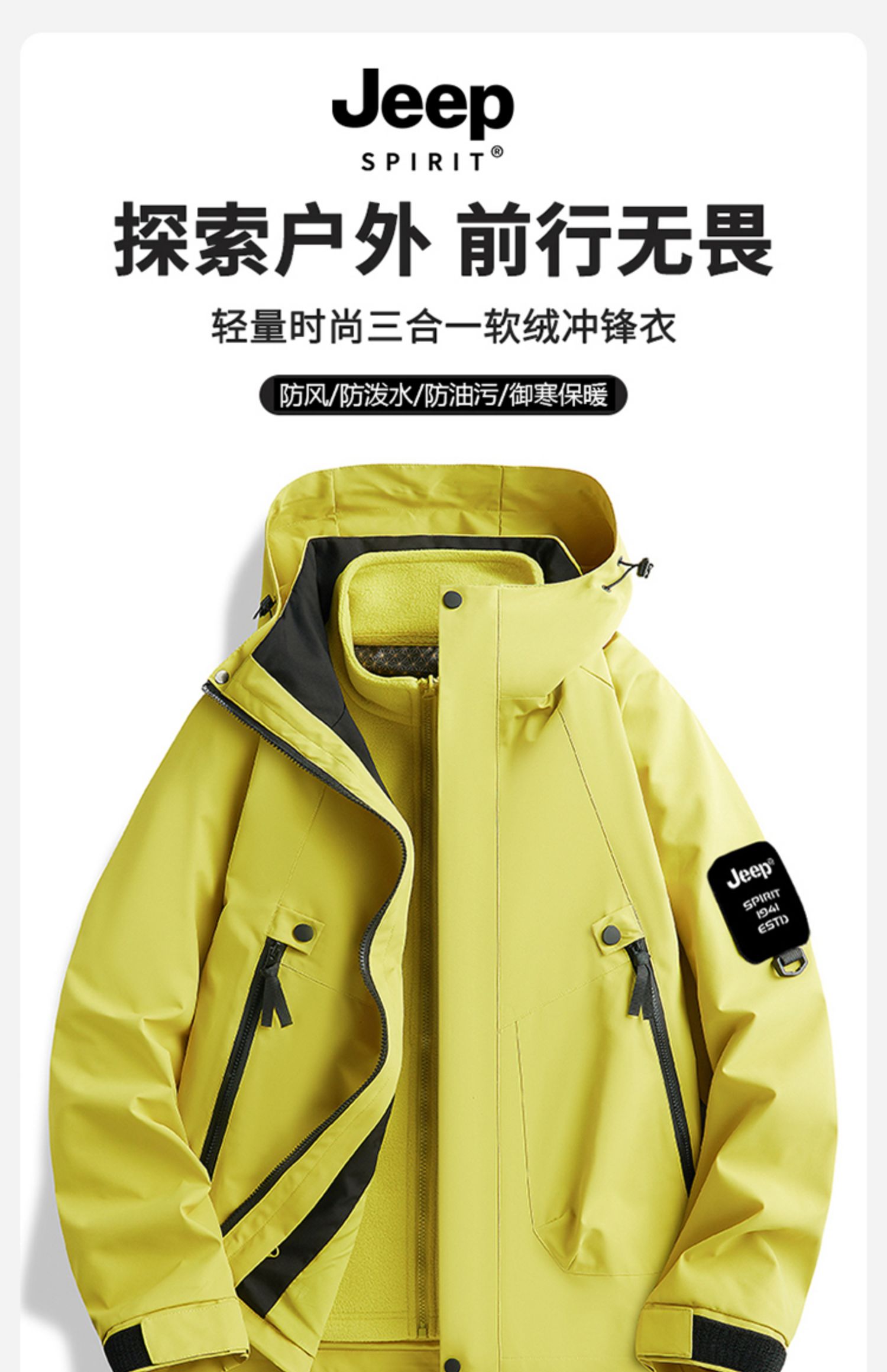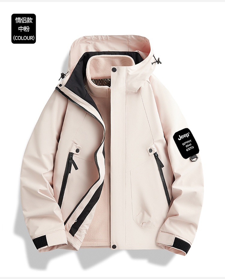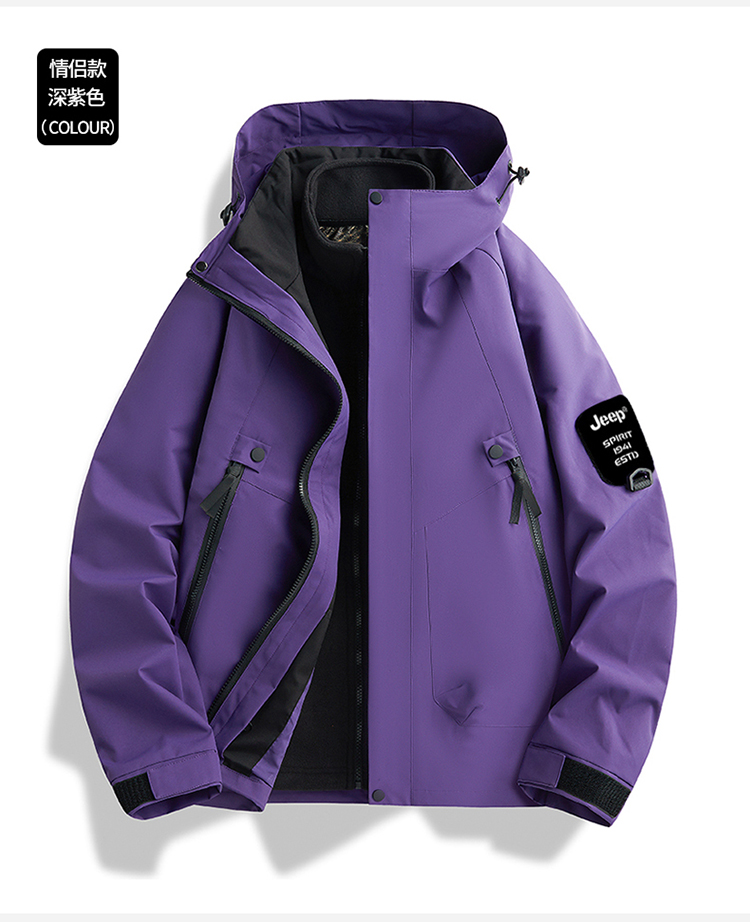 JEEP紫色沖鋒衣外套男女小個子2025新款秋冬三合一防風戶外登山服