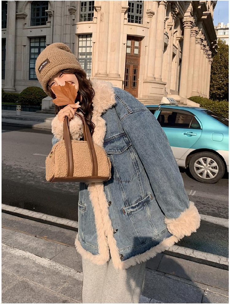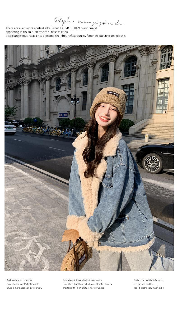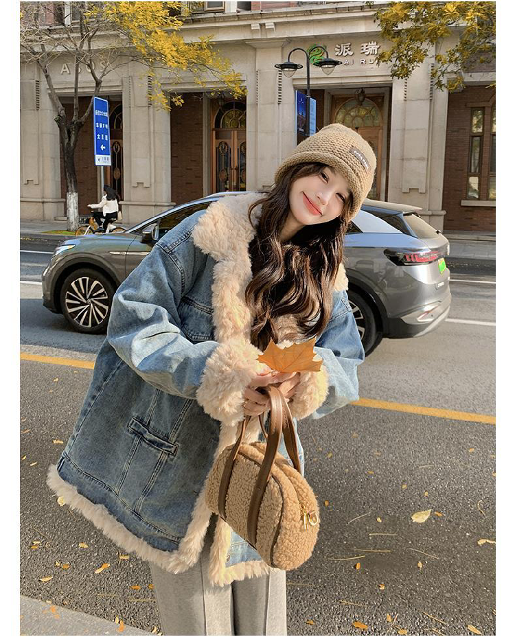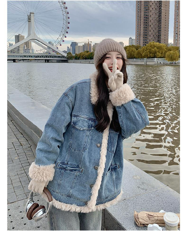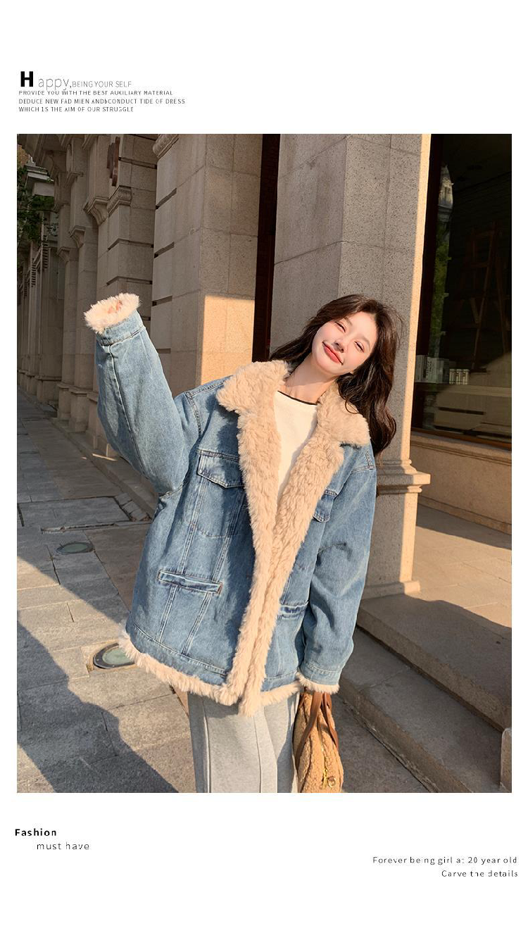 日系復古羊羔毛牛仔外套女冬季爆款寬松加絨棉衣服小個子加厚棉襖