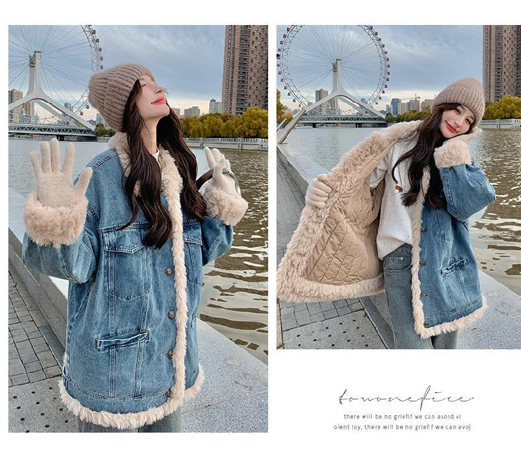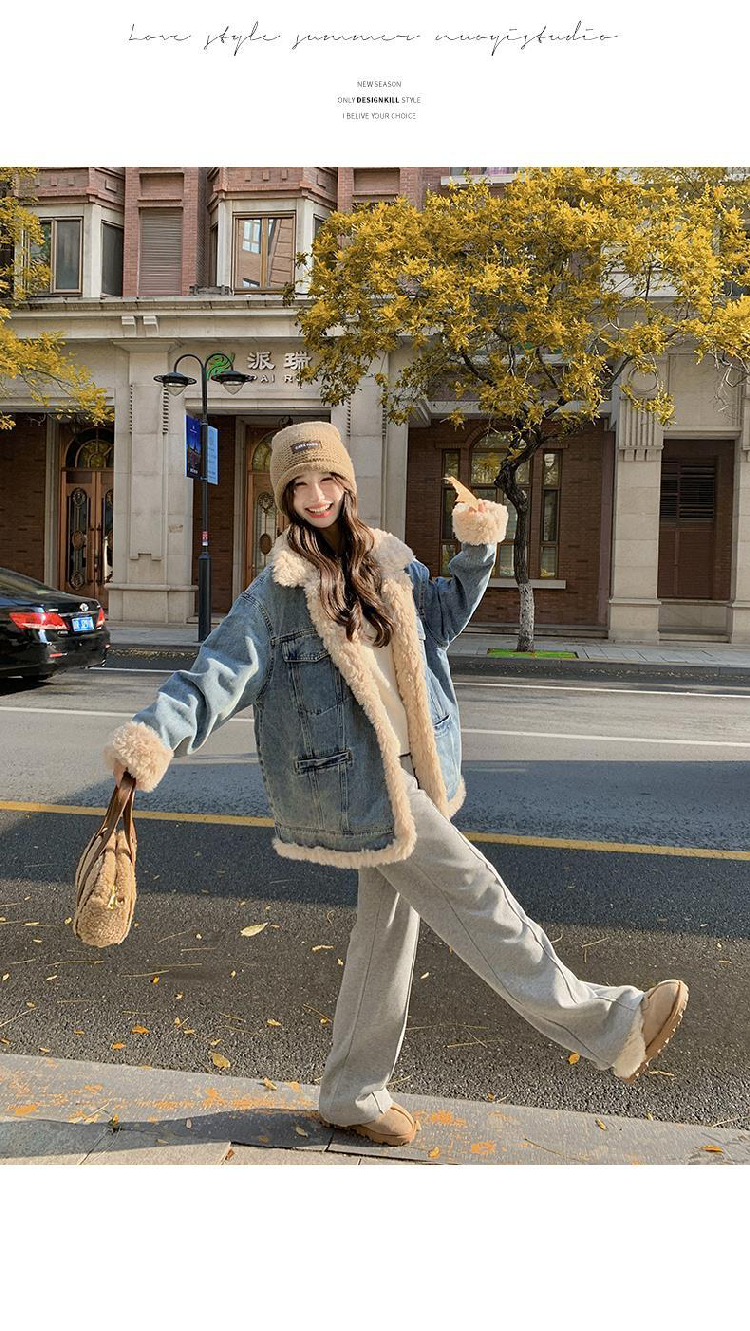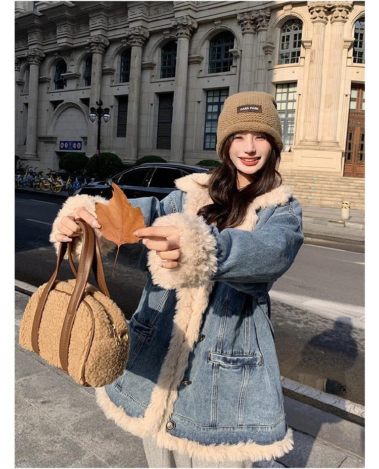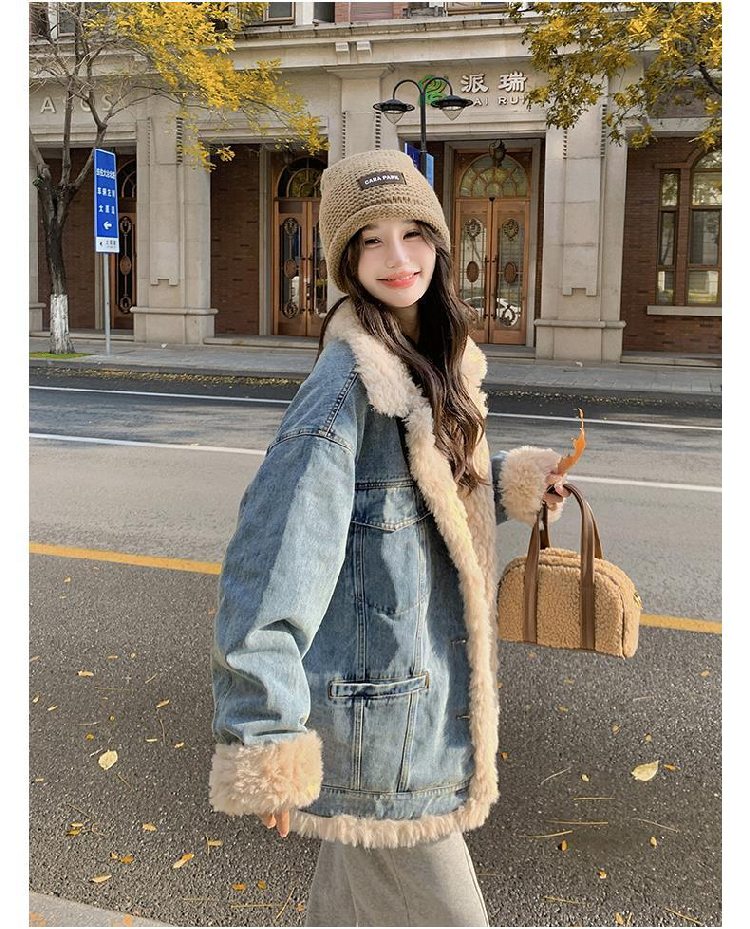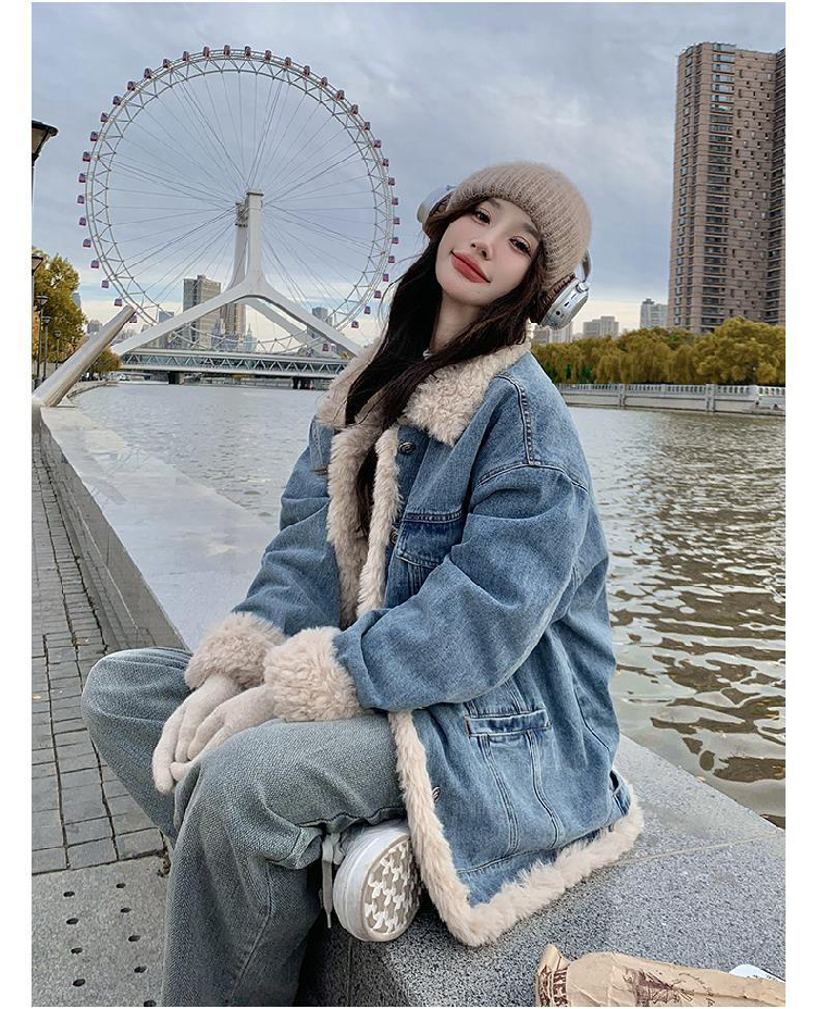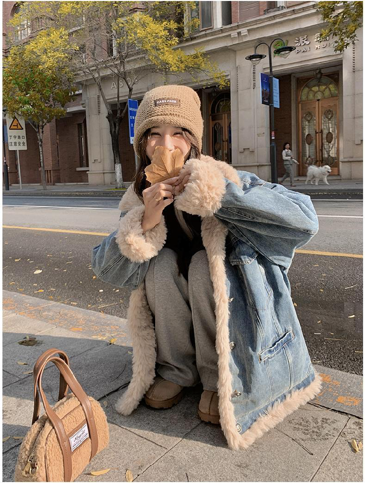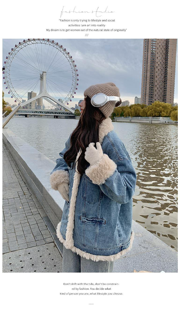 日系復古羊羔毛牛仔外套女冬季爆款寬松加絨棉衣服小個子加厚棉襖