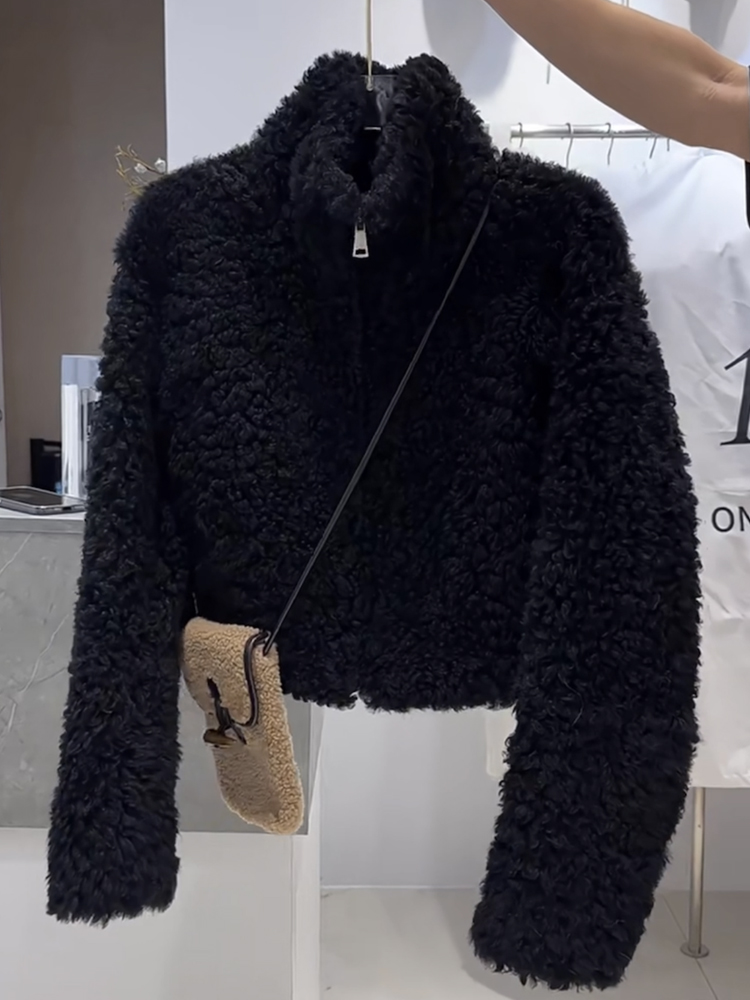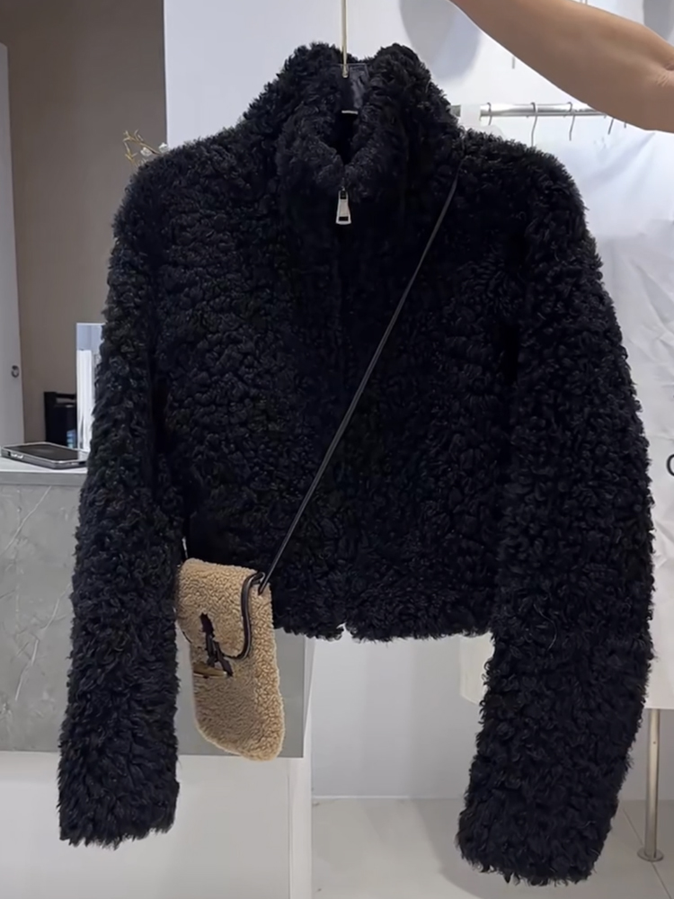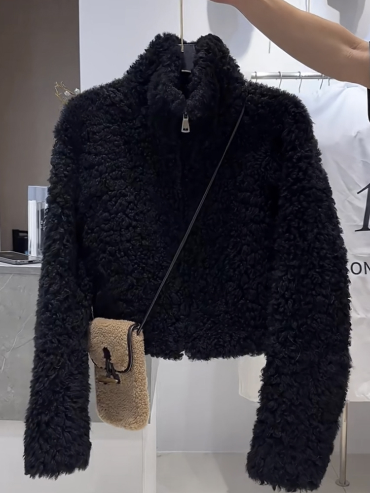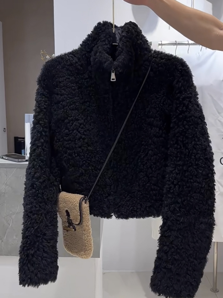 秋冬高級感時髦加厚羊羔毛外套女韓版時尚休閒寬松短款夾克開衫潮