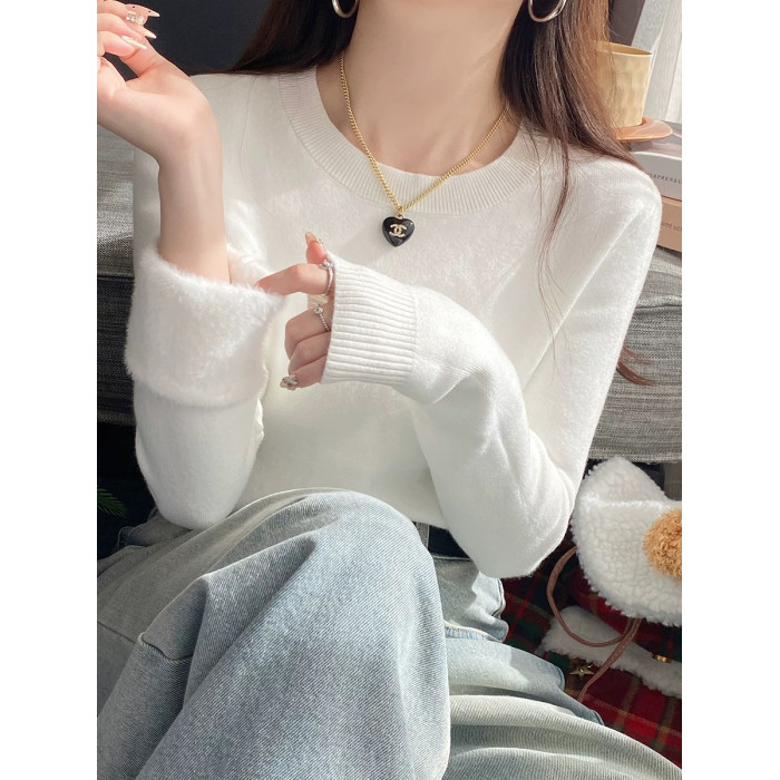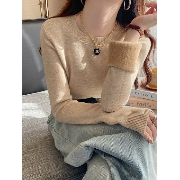 低領加絨毛衣女款2025新款冬季加厚內搭保暖打底衫秋冬針織上衣