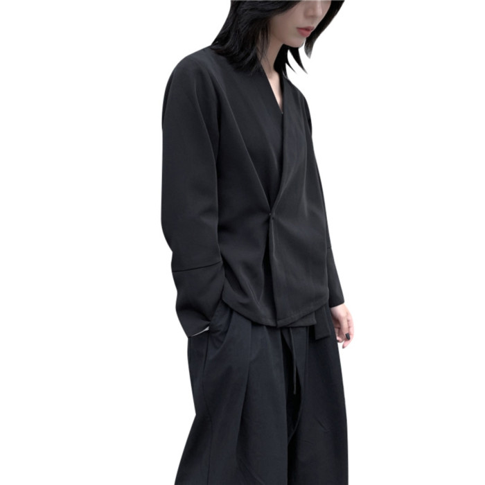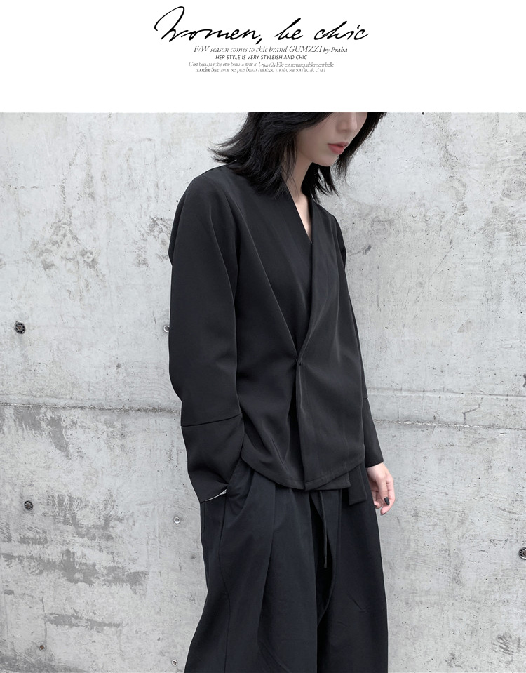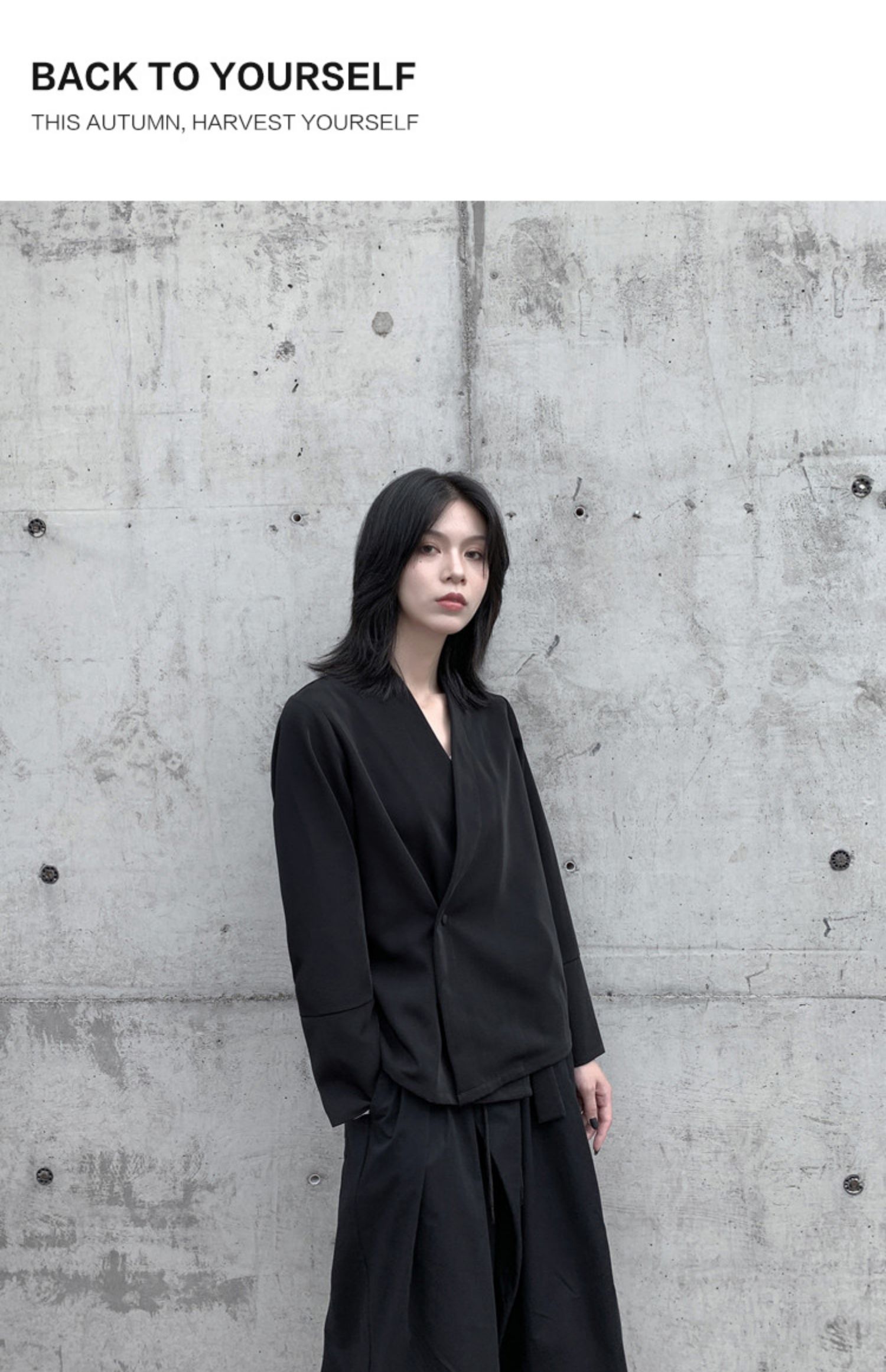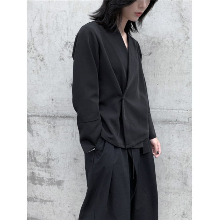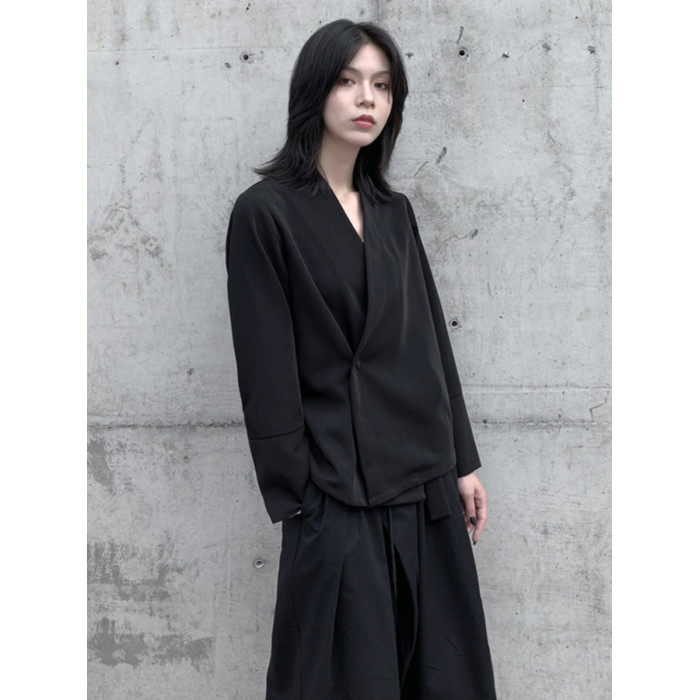 山本日系黑色新中式設計感造型寬松西裝上衣春秋休閒短外套和服女