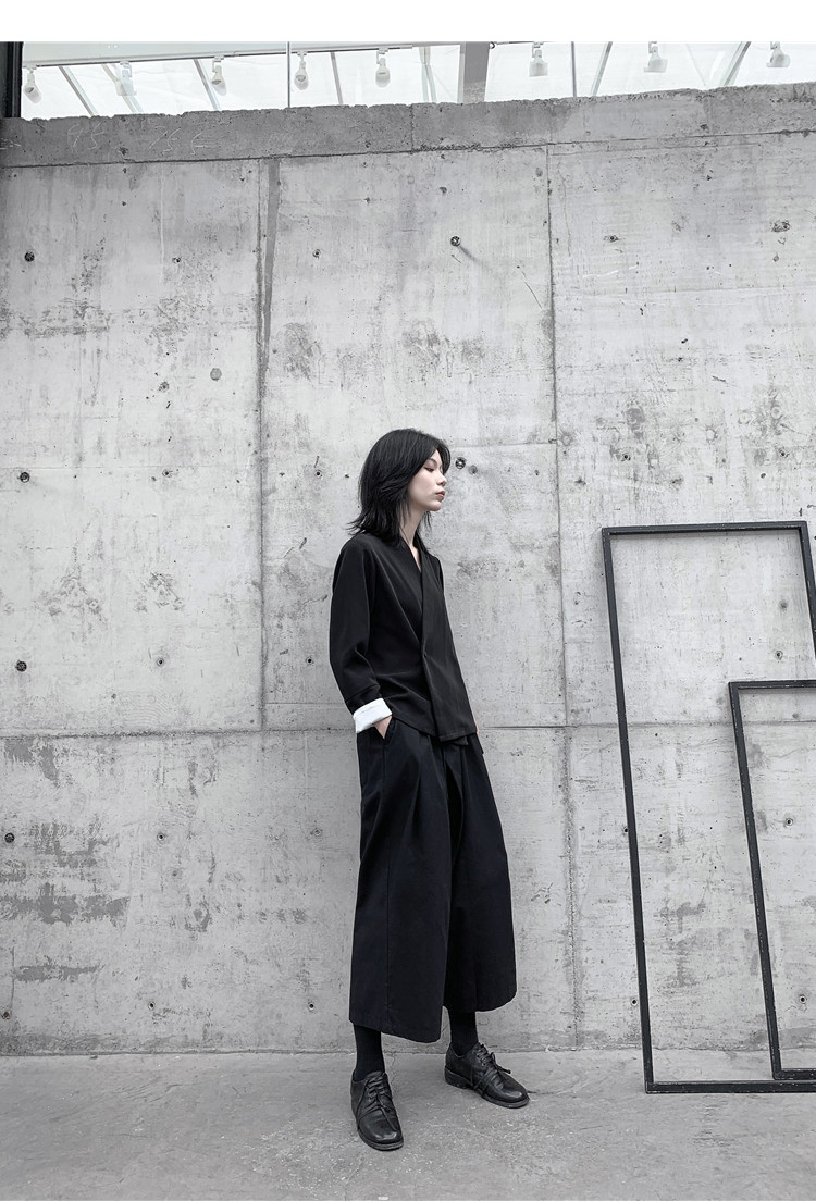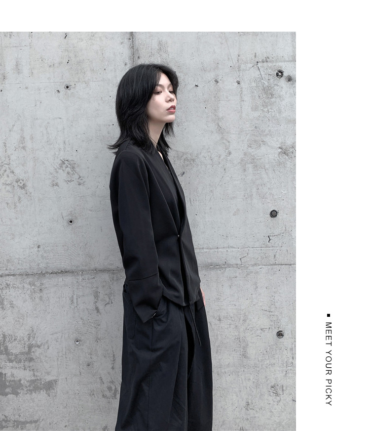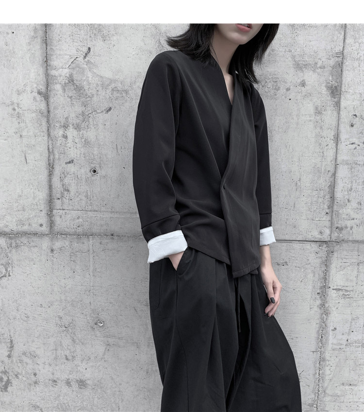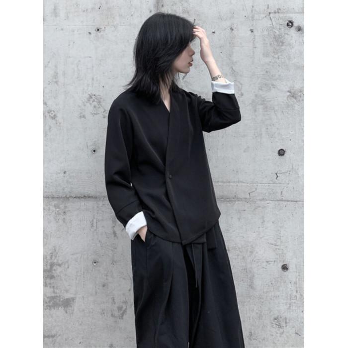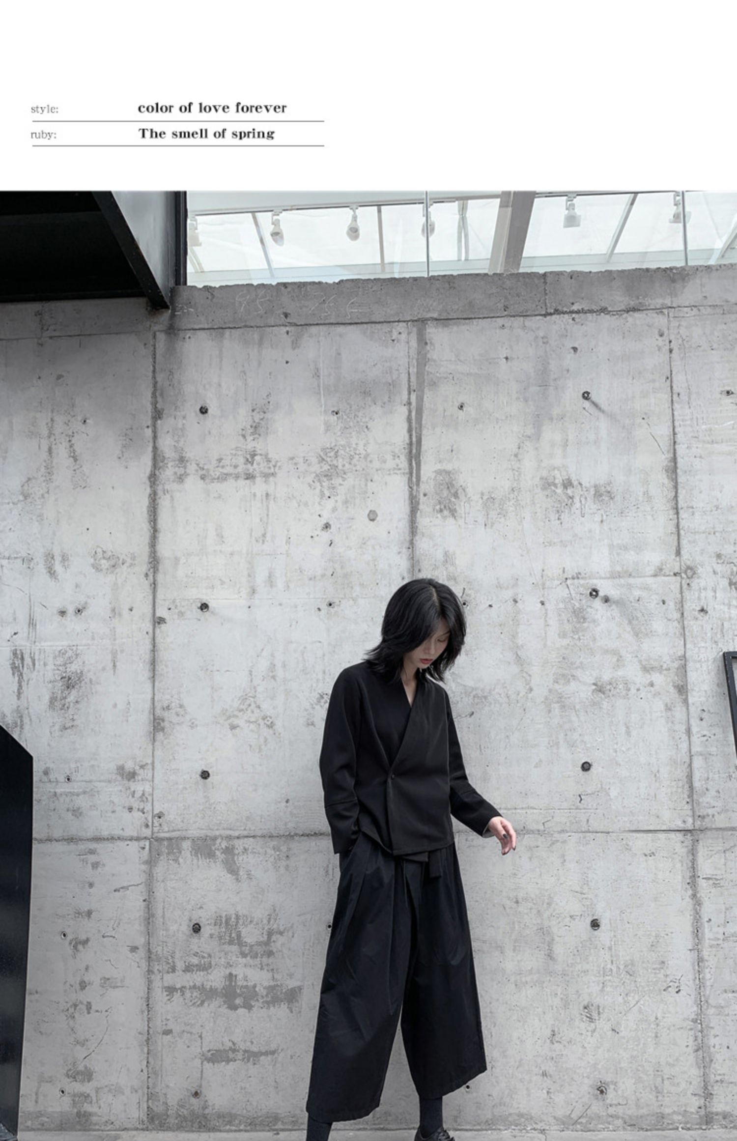 山本日系黑色新中式設計感造型寬松西裝上衣春秋休閒短外套和服女