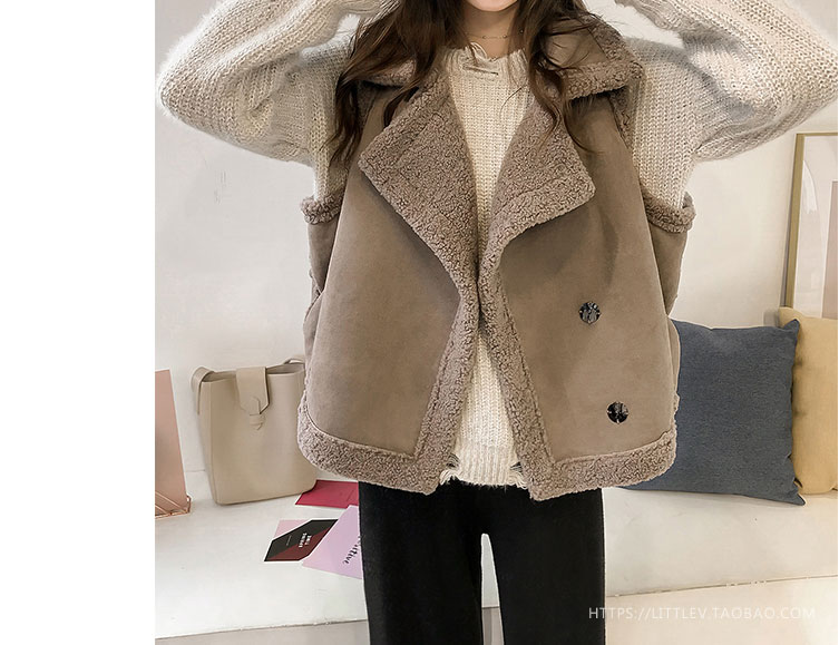 羊羔毛馬夾外套女春秋皮毛一體寬松毛絨韓版胖mm外搭無袖馬甲背心