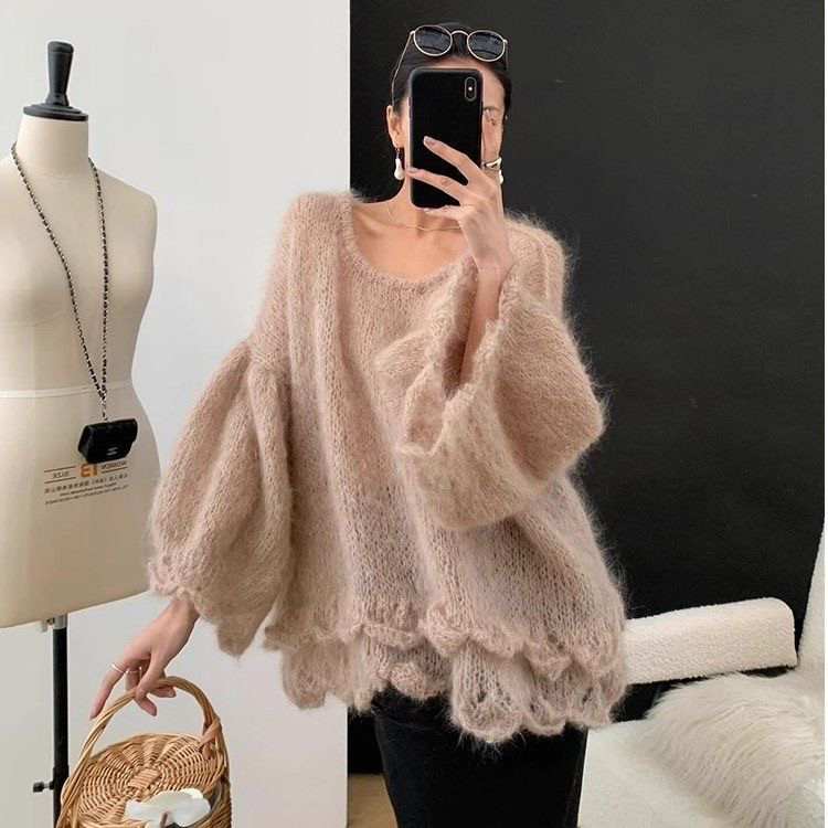 設計感寬鬆氣質名媛針織毛衣女春秋季內搭別致套頭打底衫小衆上衣
